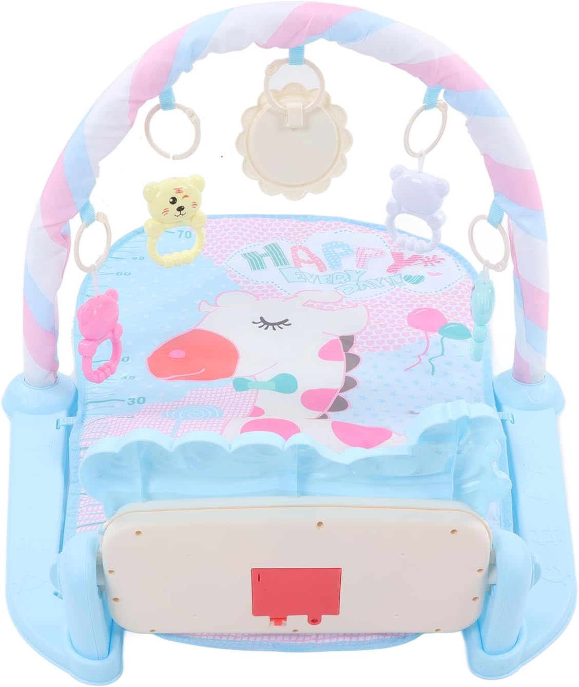 Divertiti a giocare: unici tasti musicali per pianoforte con luce attirano i tocchi del bambino e producono immediatamente un bel suono che stuzzica la curiosità del bambino. Puoi lasciare il bambino sdraiato, sedersi, sdraiarsi e calciare con le gambe per giocare. Design flessibile: tappetino da gioco multifunzionale per bambini con musica e pianoforte facile da suonare, 5 simpatici giocattoli rimovibili da appendere, design regolabile e il pianoforte può essere fissato in chiunque per adattarsi alla crescita del bambino. Allenamento di esercizi: il tappetino da ginnastica per bambini stimola i bambini a utilizzare e sviluppare i muscoli di braccia, gambe, addome, schiena e collo, stimolando così la coordinazione occhio-mano e le capacità motorie muscolari e grandi. Soft Touch: il materiale plastico affidabile è morbido e piacevole al tatto, spesso e liscio e quindi sicuro per la pelle del bambino. E il tappetino da gioco può essere lavato in lavatrice, è facile da pulire e garantisce l'igiene. Facile da trasportare: la superficie del tappetino da ginnastica è liscia e facile da pulire. All'aperto o in viaggio, si ripiega facilmente in modo da poter viaggiare.