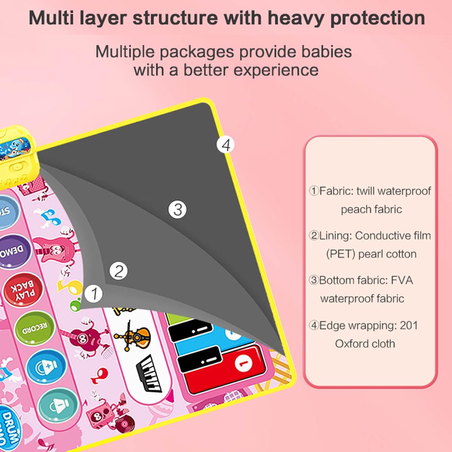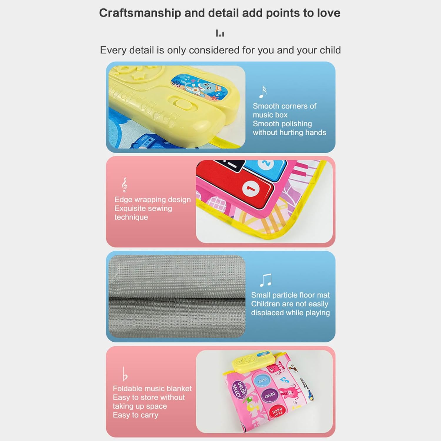 Scatena il talento musicale di tuo figlio con questo giocattolo portatile per tappetino per pianoforte. Perfetto per sviluppare abilità ritmiche e musicali a casa, a scuola o all'aperto, questo tappetino giocattolo è perfetto per il tempo libero, feste o spettacoli, aggiungendo valore interattivo e di intrattenimento. Adatto a bambini di 3 anni interessati alla musica o a genitori che vogliono coltivare le abilità musicali dei propri figli Realizzato in tessuto e plastica sicuri, questo tappetino giocattolo garantisce ore di gioco. La bacchetta portatile ergonomica e confortevole facilita il gioco. Un regalo perfetto per compleanni, feste e occasioni speciali che infondono felicità e creatività nei bambini