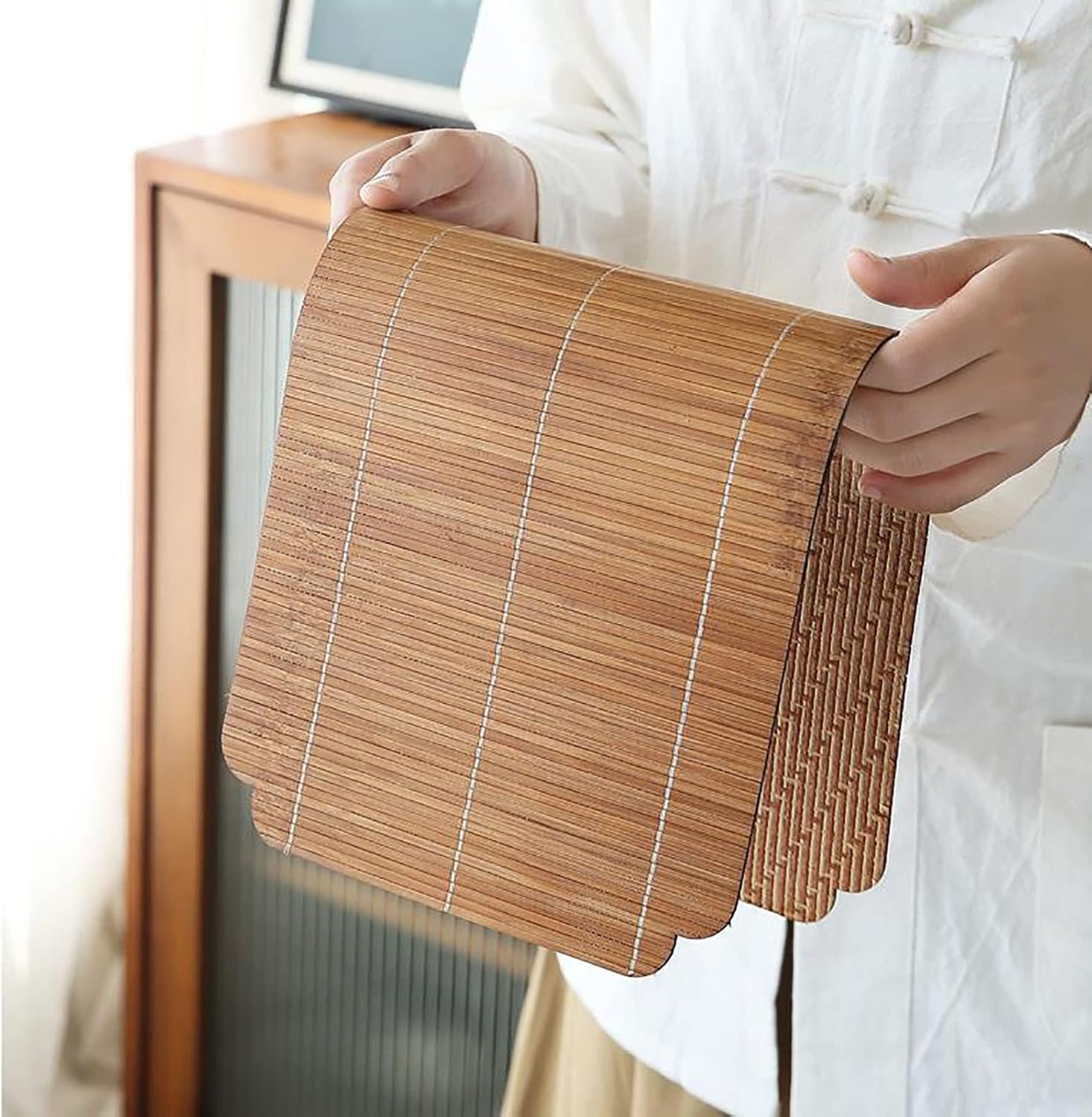 Protezione perfetta: questi runner da tavolo da pranzo hanno uno speciale effetto termoisolante che protegge qualsiasi tavolo da eventuali danni. I tappetini in bambù fungono da protezione tra i fornelli e il tavolo, evitando che schizzi, briciole o macchie distruggano i mobili. La funzione antiscivolo può proteggere efficacemente te e la tua famiglia anche quando mangi. Dimensioni adatte: la confezione include 1 pezzo di tappetini di bambù, 13,98 x 6,93 pollici e 19,57 x 8,58 pollici. Scegli la taglia e il set di cui hai bisogno. Facile da pulire: basta scuotere il runner da tavolo sulla pelle o sulla spazzatura per rimuovere tutto ciò che potrebbe trovarsi sul runner da tavolo e pulire con un panno umido per rimuovere tutto ciò che è bloccato. Le tovagliette resistenti al calore possono essere facilmente arrotolate e riposte quando non vengono utilizzate. Sono sottili e leggeri e hanno un design compatto che non occupa troppo spazio. ECOLOGICO E DUREVOLE: realizzato a mano con bastoncini di bambù rotondi naturali e durevoli al 100%, resistenti e non tossici. ecologico, lavabile, riutilizzabile. Scena applicabile: perfetta per l'uso quotidiano. Si abbina bene con tavoli in legno scuro, tavoli in vetro, tavoli da pranzo bianchi, tavoli da fattoria in legno e tavoli da pranzo marroni. Bellissima decorazione per il tuo soggiorno, barbecue, patio, ufficio, cena festiva, festa all'aperto e cucina.