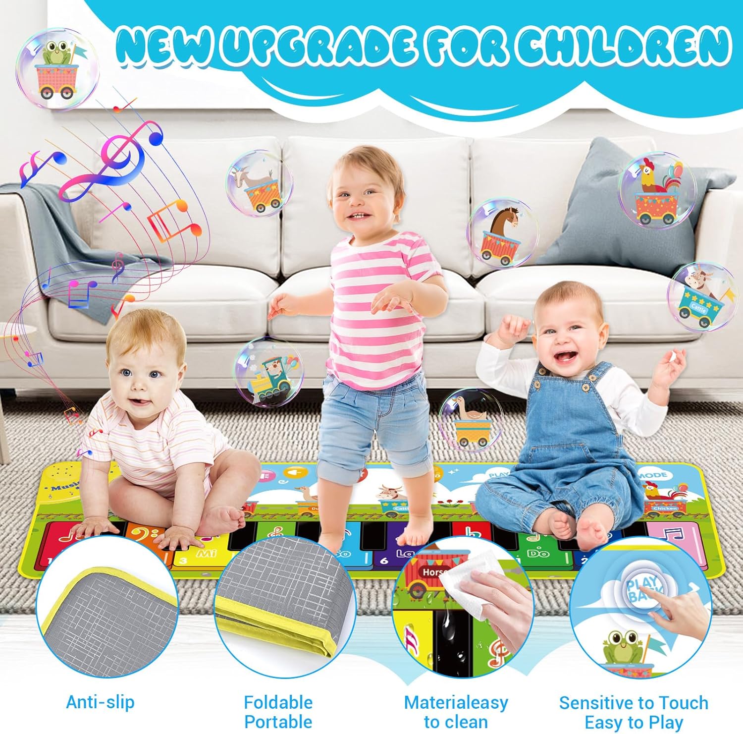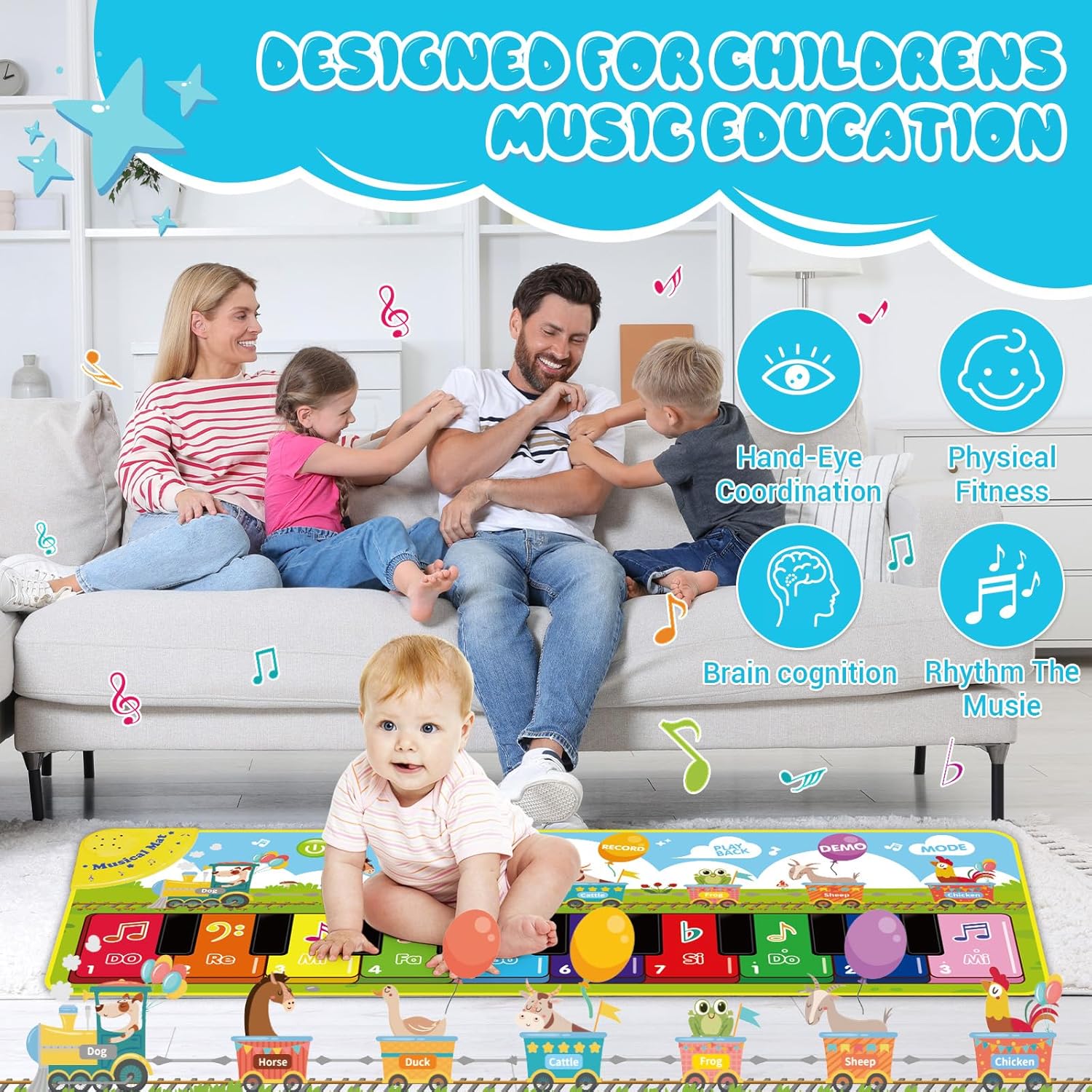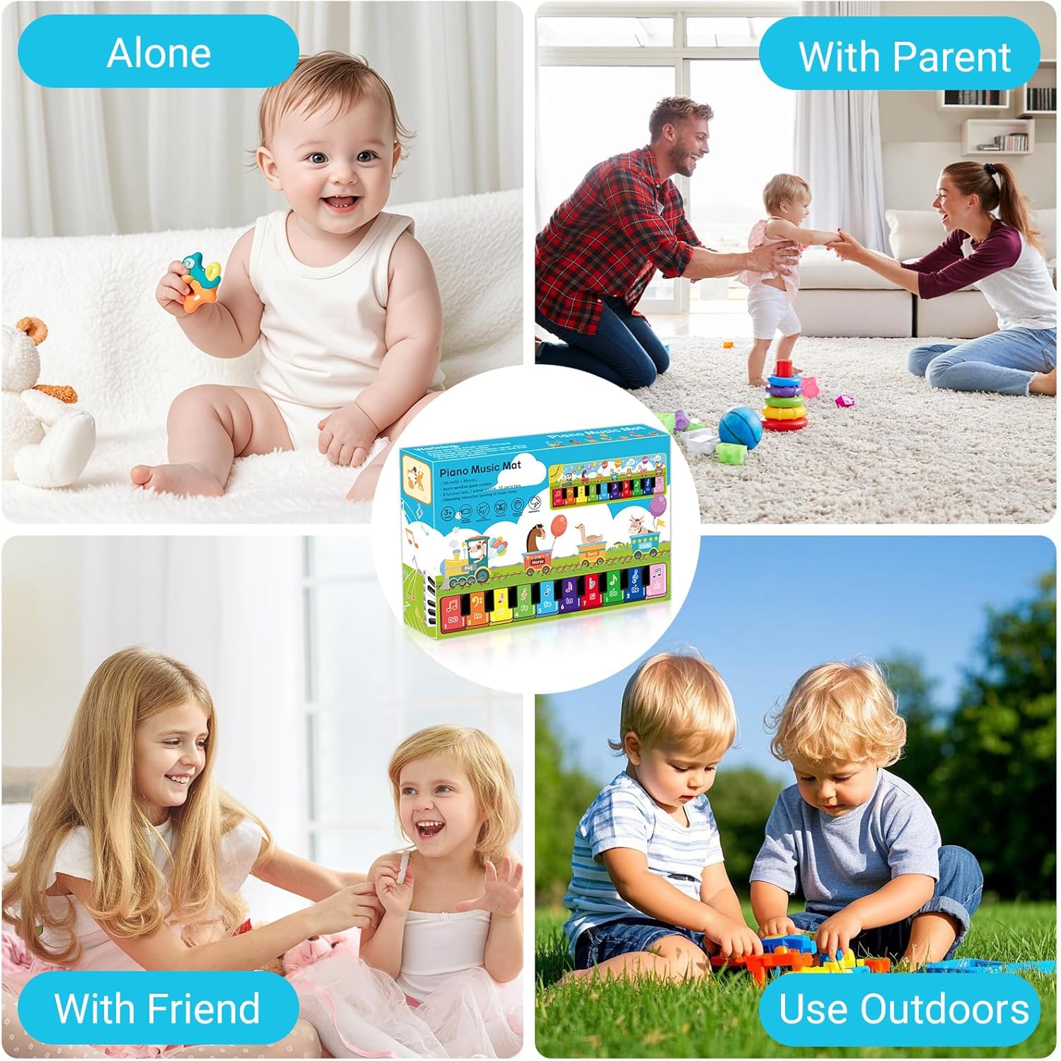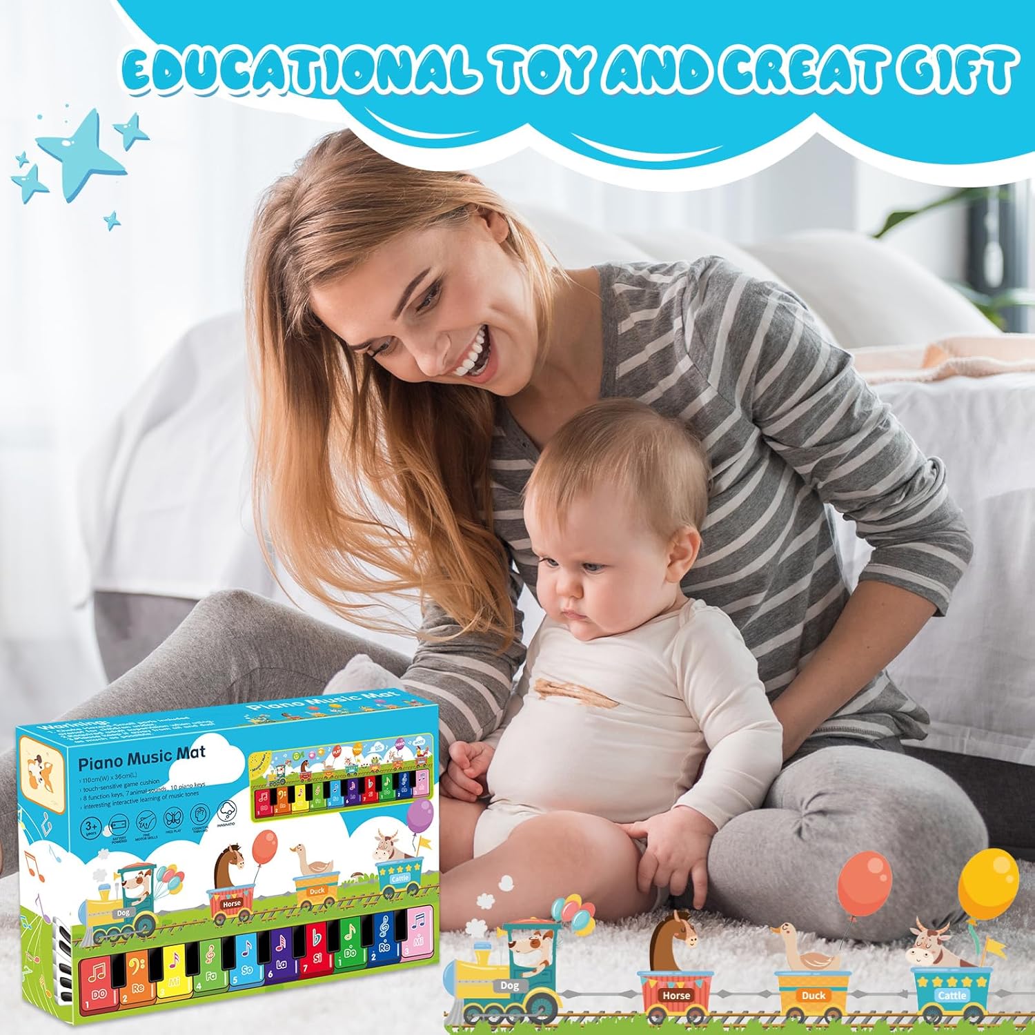 Giocattolo Musicale per Bambini: Questo giocattolo è adatto a bambini da 1 anno in su.Include 10 tasti di pianoforte,10 melodie,8 tasti funzione,7 suoni di animali,3 modalità di gioco e molto altro.L'esperienza di gioco varia mantiene I bambini concentrati e intrattenuti.è ideale per gattonare e per l'educazione musicale precoce per bambini dai 12 mesi in su. Progettato per i Bambini: Questo tappetino per pianoforte a tema animali è realizzato in tessuto morbido ed è altamente reattivo,permettendo al tuo bambino di godersi facilmente la musica.Grazie al design antiscivolo,I bambini possono ballare liberamente sul tappetino musicale e divertirsi senza fine. Giocattolo Educativo: Il tappetino per pianoforte combina musica e movimento per promuovere lo sviluppo olistico dei bambini.Promuove non solo la competenza musicale,ma anche lo sviluppo intellettuale,la percezione sensoriale,l'attenzione e l'immaginazione.PUò anche rafforzare il legame tra te e I tuoi figli e consentire più tempo genitore-figlio. Facile da Trasportare: Il giocattolo musicale per bambini misura 110 x 36 cm,il che lo rende adatto per l'uso interno ed esterno e facile da riporre e trasportare all'aperto.Quando non viene utilizzato,il morbido materiale si ripiega per risparmiare spazio. Regalo Perfetto per Bambini di 1 Anno: Questo tappetino musicale per bambini è disponibile in una scatola colorata e include due simpatici adesivi.è un regalo perfetto per compleanni,natale,capodanno e altre festività.