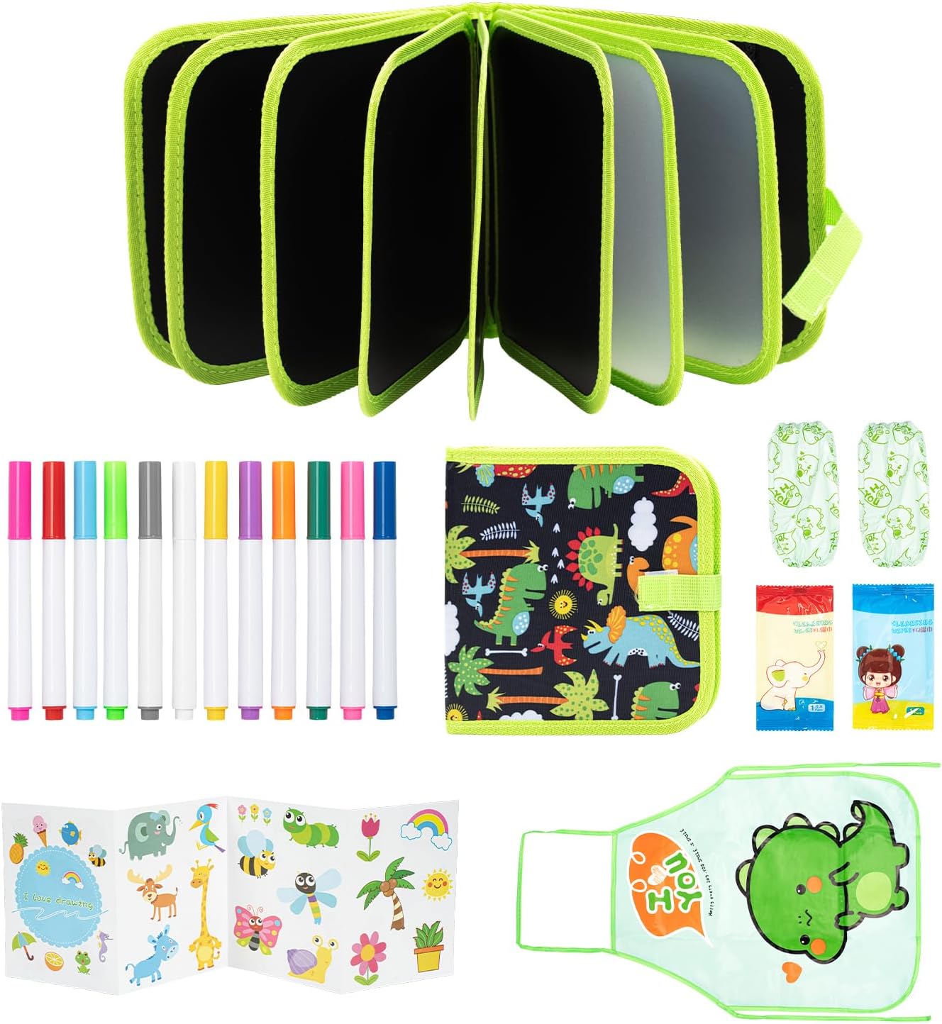 Materiale sicuro: realizzato con la massima cura, questo blocco da disegno per scarabocchi ad acqua vanta materiali selezionati che garantiscono durata, sicurezza ed ecocompatibilità. Basta pulirlo con un panno umido per riutilizzarlo e mantenerlo igienico. Facile da usare: disegna sul blocco per scarabocchi ad acqua con la penna charm riempita con acqua pulita e guarda la tua d'arte scomparire dopo 5-10 minuti, pronta per una nuova creazione. Non sono necessari inchiostro, vernice o pastelli, acqua. Goditi un divertimento senza inchiostro e senza problemi con i tuoi bambini. Sviluppa abilità: il nostro blocco da disegno per scarabocchi ad acqua aiuta a sviluppare la creatività e l'immaginazione del tuo bambino mentre disegna liberamente sulle superfici grandi e riutilizzabili. Inoltre, promuove il potenziamento di abilità come la coordinazione occhio-mano e la percezione dei colori, offrendo un'attività divertente ed educativa per il tuo bambino. Regalo favorevole: divertimento senza disordine. Questo blocco da disegno per scarabocchi ad acqua consente ai tuoi bambini di liberare la loro creatività senza inchiostro o vernice. Basta riempire le penne con acqua e guardare il ciondolo colorato apparire sul tappetino. Il tappetino è riutilizzabile e facile da pulire, il che lo rende un ottimo regalo per il Ringraziamento, Natale, vacanze speciali per bambini o compleanni. Comoda mobilità: il design pieghevole del nostro blocco da disegno con doodle ad acqua consente un facile trasporto zaino, per allenamenti di disegno spontanei e quando vuoi.