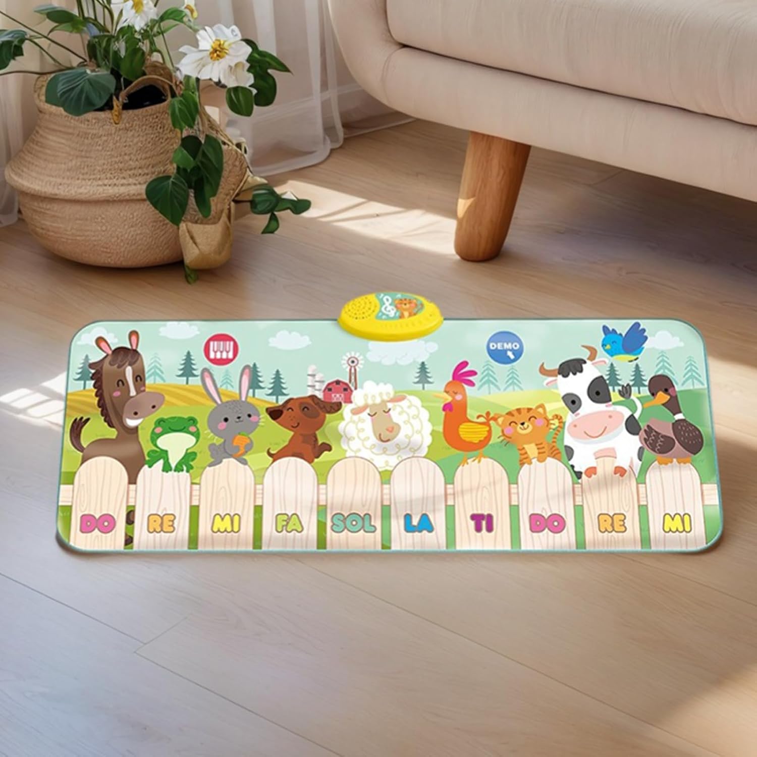 Comodità pulita: il tappetino per pianoforte offre superfici lavabili per una manutenzione senza sforzo e un design pieghevole che migliora la portabilità. È adatto per l'uso in diversi scenari come sale giochi o eventi all'aperto e aumenta il comfort dell'utente senza ulteriori sforzi. Materiali sicuri e durevoli: realizzato con materiali sicuri e durevoli, il tappetino Baby Piano, resiste all'uso ripetuto da parte dei bambini. Offre prestazioni durature e un ambiente tranquillo per i giochi quotidiani e le attività di sviluppo sensoriale senza compromettere la sicurezza. Un tempo di riproduzione dinamico: questo tappetino per pianoforte da pavimento migliora l'allenamento della scala musicale e supporta il riconoscimento degli animali, stimolando la curiosità dei bambini e garantendo il divertimento di apprendimento attraverso l'interazione su superfici piane. Incoraggia l'esplorazione di suoni e immagini senza alterare le funzioni di base ed è adatta per ambienti di gioco versatili. Un regalo attraente per i bambini: il tappetino per pianoforte entusiasma con colori vivaci e un design giocoso che affascina immediatamente i bambini e offre un modo dedicato per sviluppare abilità importanti giocando. È una gioiosa opzione regalo per compleanni e festività, che combina divertimento con benefici per lo sviluppo e stimola la creatività e le capacità motorie. Grazie al gioco interattivo, questo tappetino musicale supporta la curiosità e l'apprendimento infantile Suoni per pianoforte e suoni di animali: il tappetino per pianoforte con suoni integrati e effetti sonori animali supporta l'esplorazione musicale creativa e rafforza i legami familiari attraverso attività divertenti. Promuove il gioco musicale interattivo per bambini e genitori, crea quality time in ambienti allegri e migliora lo sviluppo musicale attraverso divertenti esperienze sonore a casa o durante le riunioni.