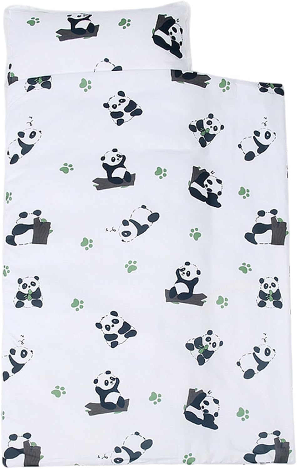 Comfort e convenienza: il morbido tessuto di cotone offre un comfort delicato per i bambini, mentre il cuscino rimovibile e la coperta consentono una facile personalizzazione e il lavaggio in lavatrice, garantendo una manutenzione senza problemi per i genitori impegnati Adatto ai bambini e sicuro: la simpatica stampa panda fa appello ai bambini, creando un ambiente amichevole durante l'utilizzo di materiali sicuri e traspiranti che danno priorità alla salute e al comfort del bambino durante il riposo Design e portabilità: il sacco a pelo anti-calcio per bambini presenta un robusto design arrotolabile con una comoda maniglia, che lo rende facile da trasportare e riporre in ambienti prescolari o asili senza perdere forma o comfort Dimensioni e versatilità: misura 124,5 x 50,8 cm, questo tappetino per pisolini per bambini si adatta perfettamente alla maggior parte delle culle e degli spazi del pavimento, adatto sia per l'asilo nido che per l'uso domestico, adattandosi alle crescenti esigenze del tuo bambino Facile manutenzione e durata: la coperta lavabile in lavatrice e il cuscino rimovibile, combinati con il cotone, garantiscono freschezza e durata di lunga durata dopo un uso ripetuto, soddisfacendo le esigenze di bambini e genitori attivi