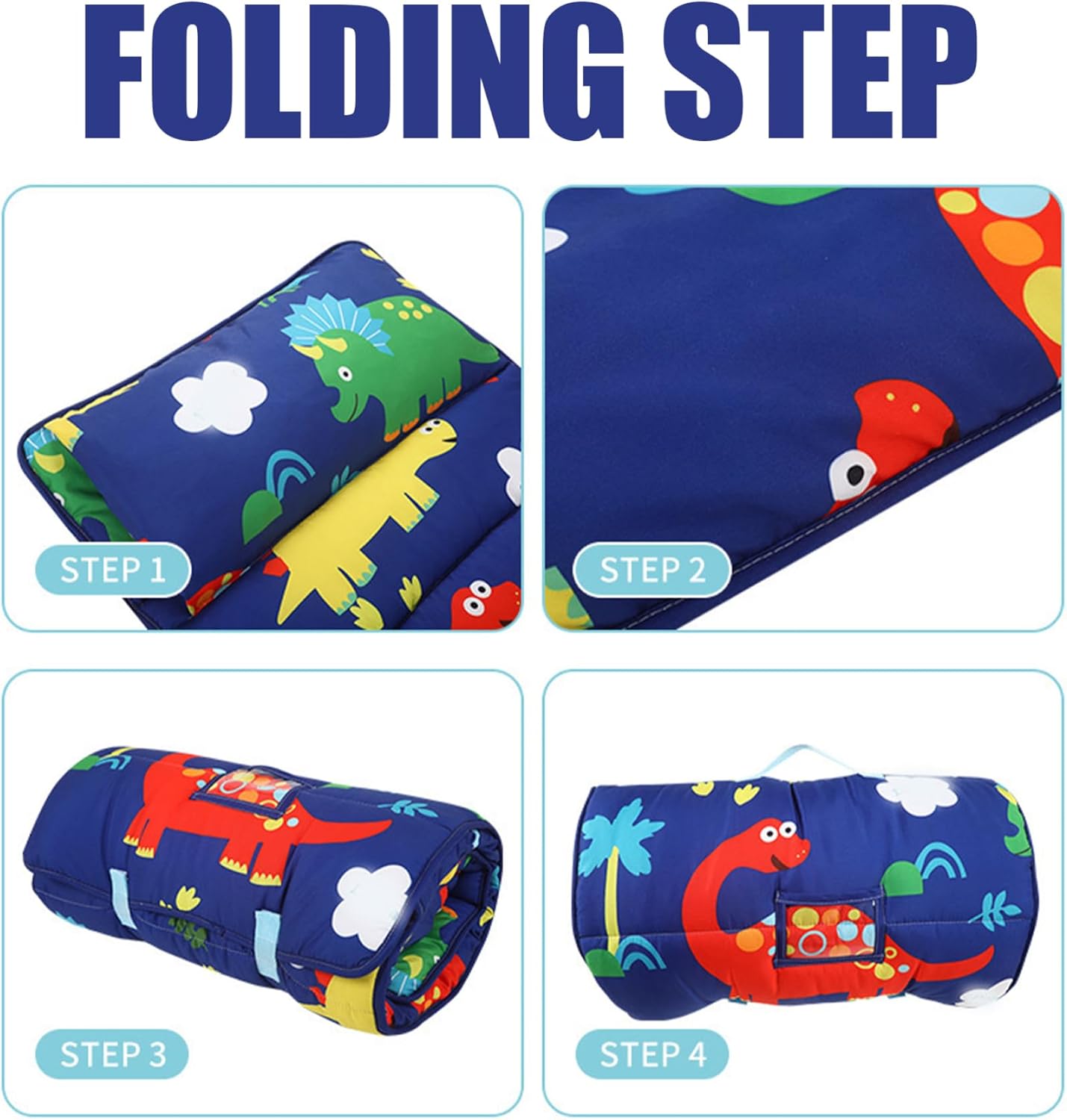 Utilizzo versatile: perfetto per una varietà di ambienti, questo tappetino per il pisolino è ideale per l'asilo nido, la scuola materna, i pigiama party e i viaggi in campeggio. Fornisce inoltre uno spazio di riposo caldo e confortevole in ambienti climatizzati, rendendolo una scelta versatile per ogni situazione. Disegni carini e giocosi: questo tappetino per il pisolino è decorato con disegni deliziosi e giocosi che i bambini adoreranno, aggiungendo un tocco di divertimento al loro pisolino. Il design luminoso e allegro lo rende ideale per l'asilo nido, la scuola materna e persino le avventure all'aria aperta come le gite in campeggio. Design anti-calcio e termico: con il suo design a coperta completamente avvolgente, questo materassino per dormire assicura che il tuo bambino rimanga comodo e accogliente. La coperta può essere posizionata saldamente sotto il tappetino, impedendo al tuo piccolo di lanciarla mentre dorme e aiutandolo a rimanere al caldo durante il pisolino. Materiale morbido e rilassante: realizzato in morbido pile e poliestere, questo tappetino per il pisolino per bambini presenta punti testurizzati in rilievo che forniscono un effetto calmante e confortante. Il tessuto accogliente non solo mantiene il tuo bambino al caldo, ma riduce anche al minimo i movimenti irrequieti durante il sonno, garantendo un pisolino tranquillo. Grandi dimensioni con design incassato: misurando circa 120 x 50 cm (47,24 x 19,69 pollici), questo tappetino per il pisolino può ospitare bambini di diverse dimensioni. Il comodo design avvolgibile, con cinghie di fissaggio a nastro e maniglia per il trasporto, facilita lo stoccaggio e il trasporto.