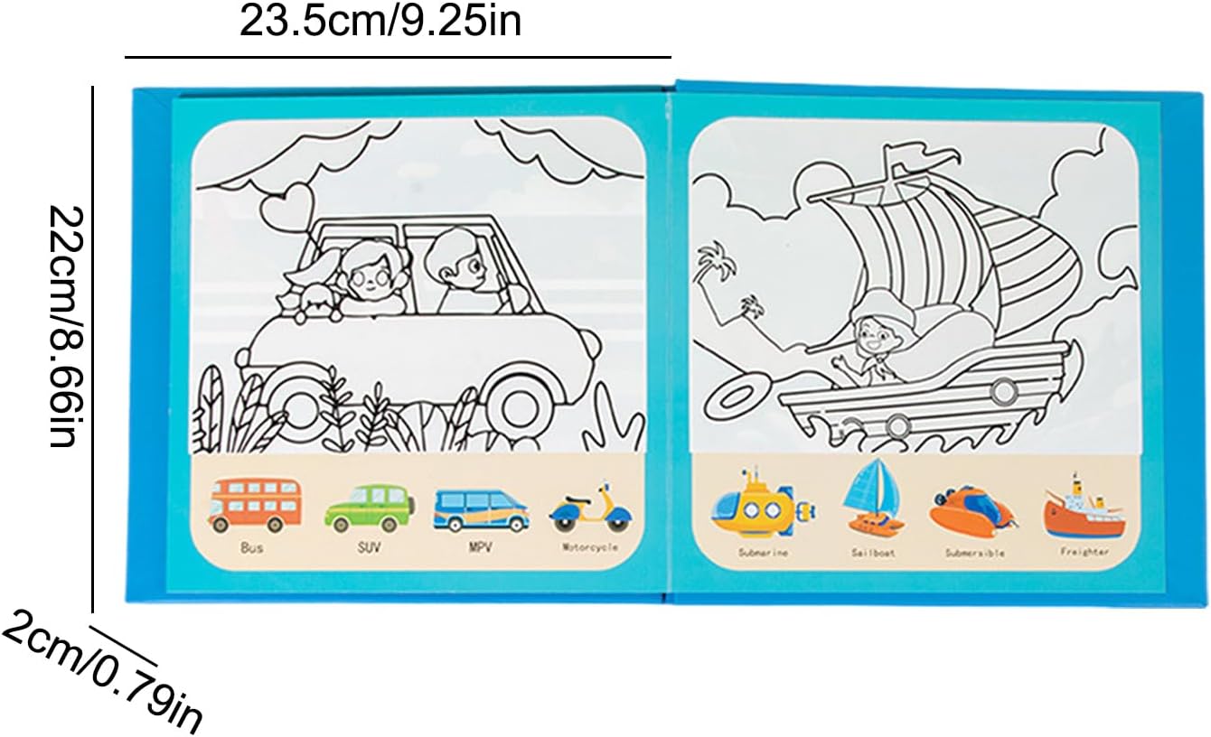 Tappetino didattico coinvolgente: con temi incentrati su animali e veicoli, il tappetino per dipingere ad acqua ispira l'immaginazione e supporta lo sviluppo sensoriale. Garantisce un'esperienza arricchente che promuove la crescita cognitiva precoce mentre si gioca in classe o a casa. I bambini possono migliorare le loro capacità cognitive attraverso il gioco interattivo rafforzando al contempo le loro capacità sensoriali. Questo tappetino per pittura ad acqua rende l'apprendimento coinvolgente e divertente. Design adatto ai bambini: questo tappetino per pittura ad acqua è dotato di una penna ad acqua a misura di bambino che è facile da tenere e utilizzare. I bambini possono riempire la punta, aggiungere acqua e sigillarla facilmente, offrendo ore di divertimento artistico senza schizzi o macchie in qualsiasi ambiente. Il design è su misura per le mani piccole e incoraggia lo sviluppo motorio garantendo allo stesso tempo un'esperienza di gioco pulita e sicura. Facile da usare motiva i bambini a sviluppare le loro fantasie. Esperienza di gioco coinvolgente ed educativa: il tappetino per pittura ad acqua supporta la coordinazione occhio-mano e migliora la percezione del colore incorporando lezioni giocose sugli animali e sui trasporti. Catturano l'attenzione dei bambini e creano un'atmosfera di apprendimento rilassante durante l'uso nel tempo libero, contribuendo a un'esperienza piacevole ed educativa. Gioco creativo riutilizzabile: progettato con superfici resistenti all'acqua, il tappetino per libri da colorare ad acqua supporta ore di divertimento pulito mentre i bambini si divertono con attività come l'applicazione di adesivi rimovibili o la pittura ad acqua. La pulizia è semplice per i genitori durante il gioco in casa e il tappetino incoraggia l'esplorazione creativa senza creare disordine, perfetto per giochi indoor ripetuti. Utilizzo confortevole: con morbido velluto a pelo corto e sicure chiusure in velcro, questo tappetino da pittura offre divertimento con la pittura a base d'acqua dove i motivi appaiono e scompaiono magicamente mentre si asciugano. Supporta la creatività a casa o in viaggio ed è facile da pulire per un divertimento che dura a lungo.
