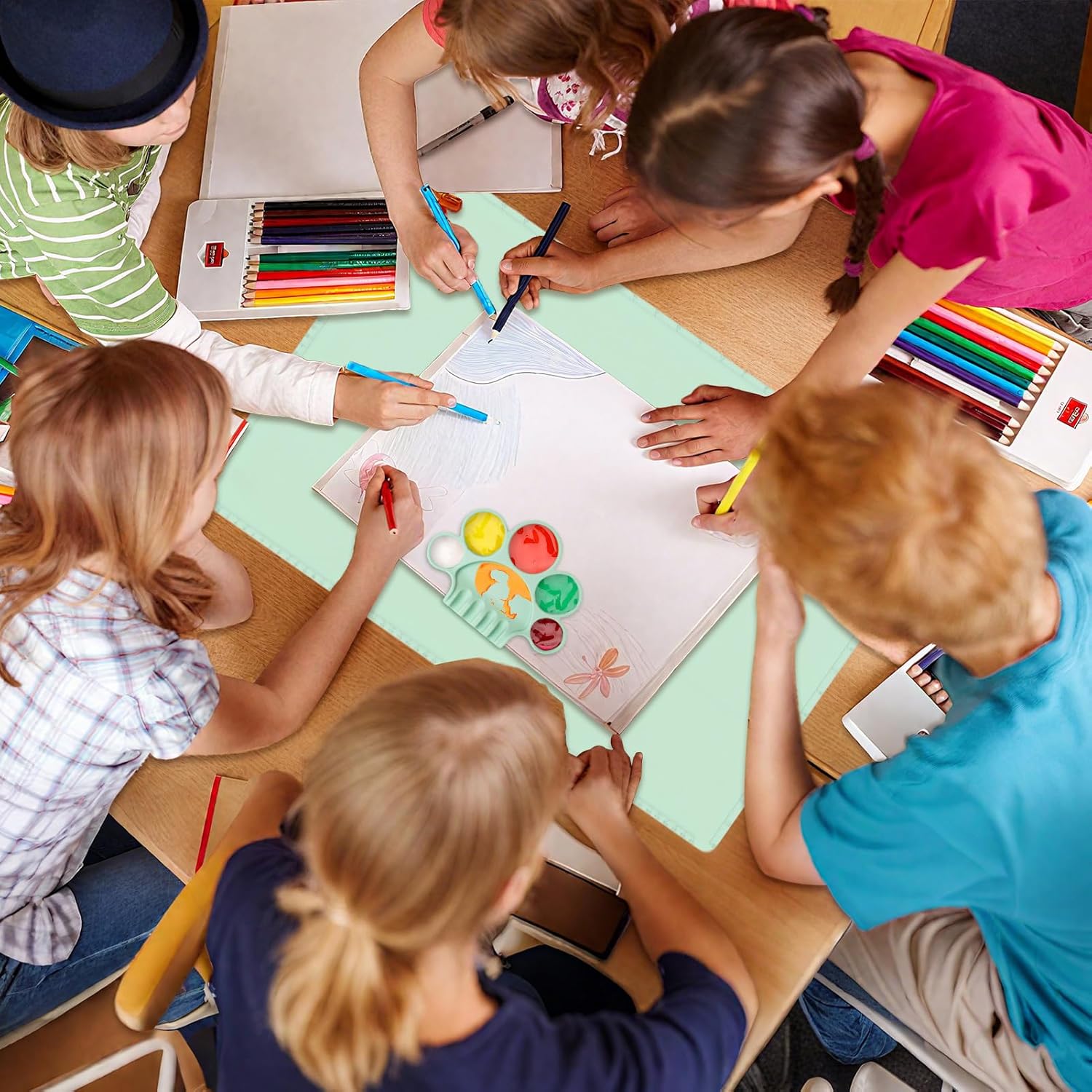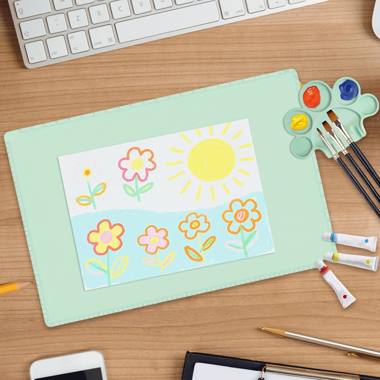 Esperienza di verniciatura precisa: questo tappetino per verniciatura in silicone offre un bordo rialzato per stabilizzare i contenitori e una funzione di inclinazione regolabile per controllare il flusso di vernice. Ciò facilita metodi di fusione senza soluzione di continuità ed è adatto sia ai principianti che ai progetti creativi esperti. Il controllo preciso supporta un lavoro efficiente e risultati costanti con il tappetino per verniciatura in silicone. MATERIALE FORTE E DUREVOLE: il tappetino per verniciatura in silicone è progettato per bloccare la penetrazione dei pigmenti e fornire una superficie stabile, resistente ai graffi e facile da pulire. Ciò aumenta l'efficienza per coloro che lavorano su progetti delicati e dettagliati creando una base affidabile per un lavoro preciso. Base stabile: dotato di una base in silicone elastico antiscivolo e di un fondo strutturato, il tappetino da pittura in silicone per bambini rimane saldamente in posizione durante le attività artistiche pratiche. Ciò garantisce una concentrazione ininterrotta per i creatori che affrontano progetti complessi e promuove un'esperienza di creazione fluida e piacevole dentro e fuori. Il tappetino fornisce un supporto affidabile per far fluire la creatività senza interruzioni. Comodo supporto per i creativi: il tappetino in silicone con morbida imbottitura supporta le attività creative a lungo termine e riduce efficacemente lo sforzo sui polsi. Aumenta il comfort del fai da te, in particolare di tecniche come lo scrapbooking o la creazione di cartoline, e garantisce a tutti gli artigiani e gli hobbisti un'esperienza piacevole e senza fatica nei loro progetti quotidiani. FACILE DA PIEGARE E CONSERVARE: il tappetino da pittura in silicone per bambini si piega facilmente fino alle dimensioni del palmo della mano, rendendolo estremamente portatile e versatile per lo studio, l'aula o i viaggi. Questa comoda funzione di piegatura garantisce praticità senza perdita di funzionalità e la superficie antiaderente consente un rapido arrotolamento e una conservazione salvaspazio. Ciò ottimizza l'esperienza dell'utente per attività creative come la pittura e la progettazione semplificando la gestione e
