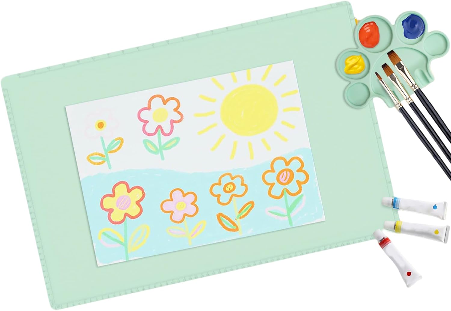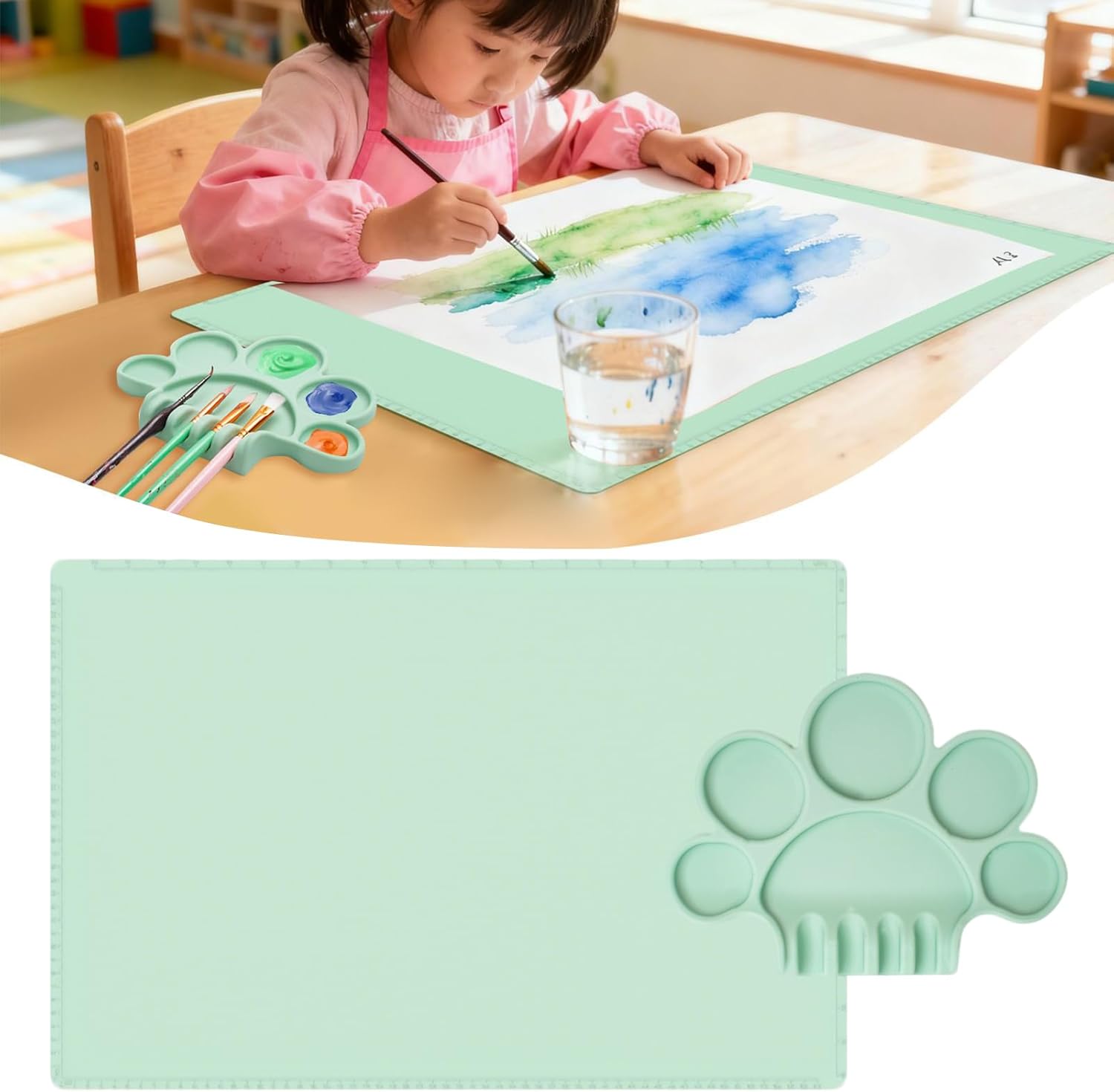 Facile da pulire e durevole: questo tappetino per vernice in silicone fornisce un aspetto uniforme e resistente alle macchie bloccando la penetrazione dei pigmenti. Grazie alla sua superficie facile da pulire, mantiene il suo perfetto stato anche dopo un uso prolungato in diversi contesti creativi. Forte e affidabile, supporta frequenti progetti IC senza perdere la sua qualità originale. Supporto per presa migliorata: il tappetino da pittura in silicone per bambini presenta una base in silicone elastico combinata con una base antiscivolo che impedisce lo scivolamento durante le attività. Questa funzionalità fornisce un supporto stabile e affidabile per attività creative come la scultura e consente ai bambini di esplorare in modo sicuro e confortevole l'espressione grafica in vari ambienti interni ed esterni. Layout colore intelligente: progettato con un bordo rialzato per un fissaggio sicuro del contenitore e un'inclinazione regolabile per una gestione ottimale dell'output, questo tappetino per verniciatura in silicone semplifica le operazioni di miscelazione avanzate. Il loro design ergonomico ti consente di creare opere d'arte di qualità professionale senza difficoltà o confusione. Maggiore comfort: i tappetini per attività creative in silicone forniscono un supporto efficace con imbottitura morbida al tatto che allevia la tensione sui polsi e consente di partecipare ad attività più lunghe come la progettazione di gioielli o l'assemblaggio di modelli senza avvertire disagio o tensione muscolare. Design compatto e portatile: progettati per i più piccoli, questi tappetini da pittura per bambini presentano un design portatile e versatile che si ripiega fino alle dimensioni di un palmo per un facile trasporto in officine, aule o destinazioni di viaggio. La superficie antiaderente consente un facile arrotolamento e manipolazione, aggiungendo praticità ai progetti artistici di tutti i giorni.