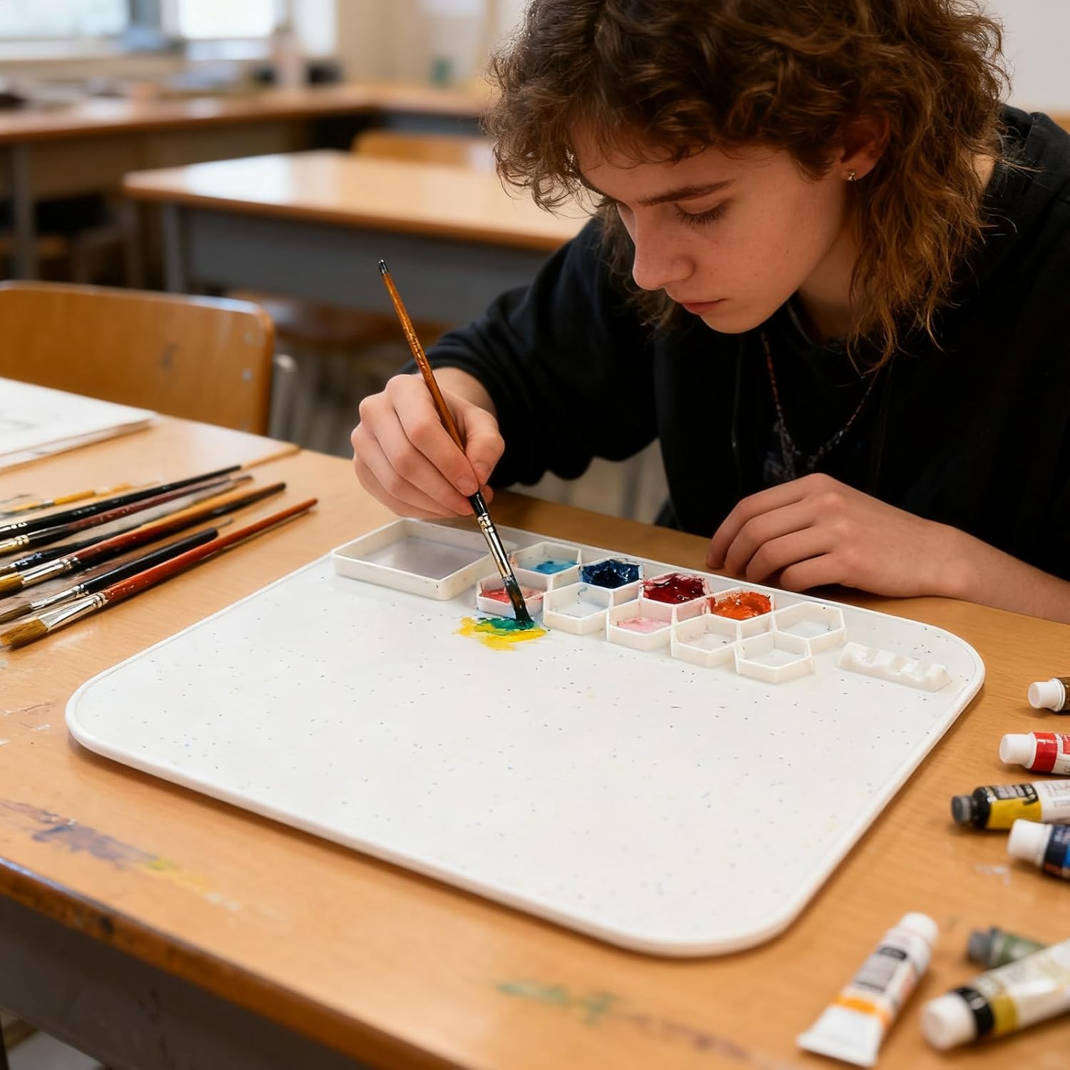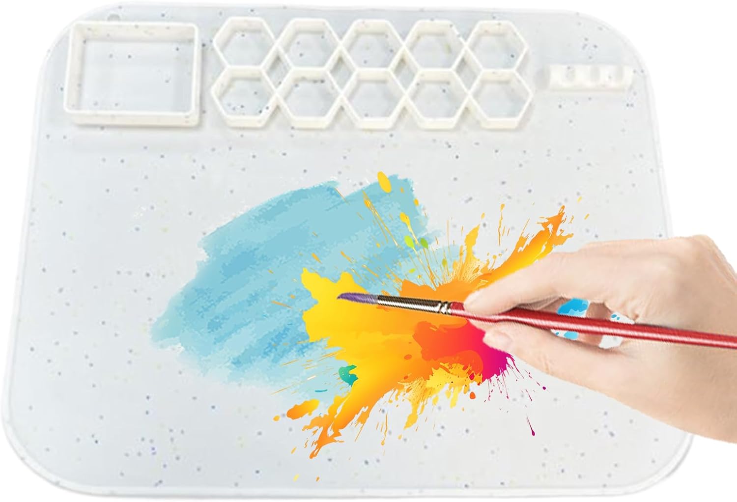 Poco ingombrante e pratico: il tappetino pieghevole per pittura in silicone ottimizza lo stoccaggio in modo efficiente, è ideale per i viaggi artistici e, grazie alla sua struttura leggera, si adatta comodamente agli zaini degli studenti per esercizi creativi in movimento. Accessorio per tavolo da pittura creativo: questo tappetino da pittura per bambini combina una superficie di lavoro multifunzionale in silicone che funge da tela e tavolozza di colori. Con superficie lavabile e riutilizzabile e zone di miscelazione dei colori integrate. Ideale per i più piccoli che frequentano lezioni d'arte o lavorano a casa per sperimentare liberamente senza sprechi. Design di pittura efficiente: con il tappetino per pittura in silicone per bambini, la disposizione intelligente delle zone di colore e il portaspazzole a forma di U confermano che gli utensili sono sempre a portata di mano, promuovendo un'esperienza di pittura senza soluzione di continuità e supportando l'esplorazione visiva in qualsiasi ambiente. Superficie priva di residui: la superficie in silicone di alta qualità del tappetino per verniciatura resiste allo stiramento e alle rughe e offre una durata costante con una consistenza fine che risulta confortevole sotto la mano. Previene deformazioni e sgualciture, garantendo una concentrazione ininterrotta su qualsiasi attività, dallo schizzo al progetto completo. Ordine quando si dipinge: la base antiscivolo offre una presa salda sul tavolo, impedisce lo scivolamento e protegge dagli schizzi di vernice, perfetta per attività di pittura e progetti di disegno con bambini o da soli