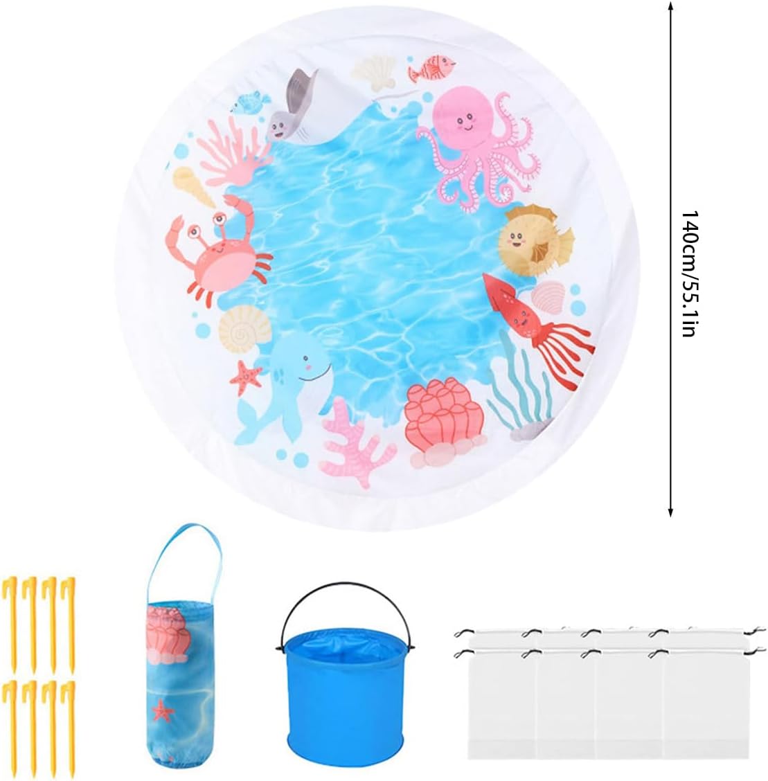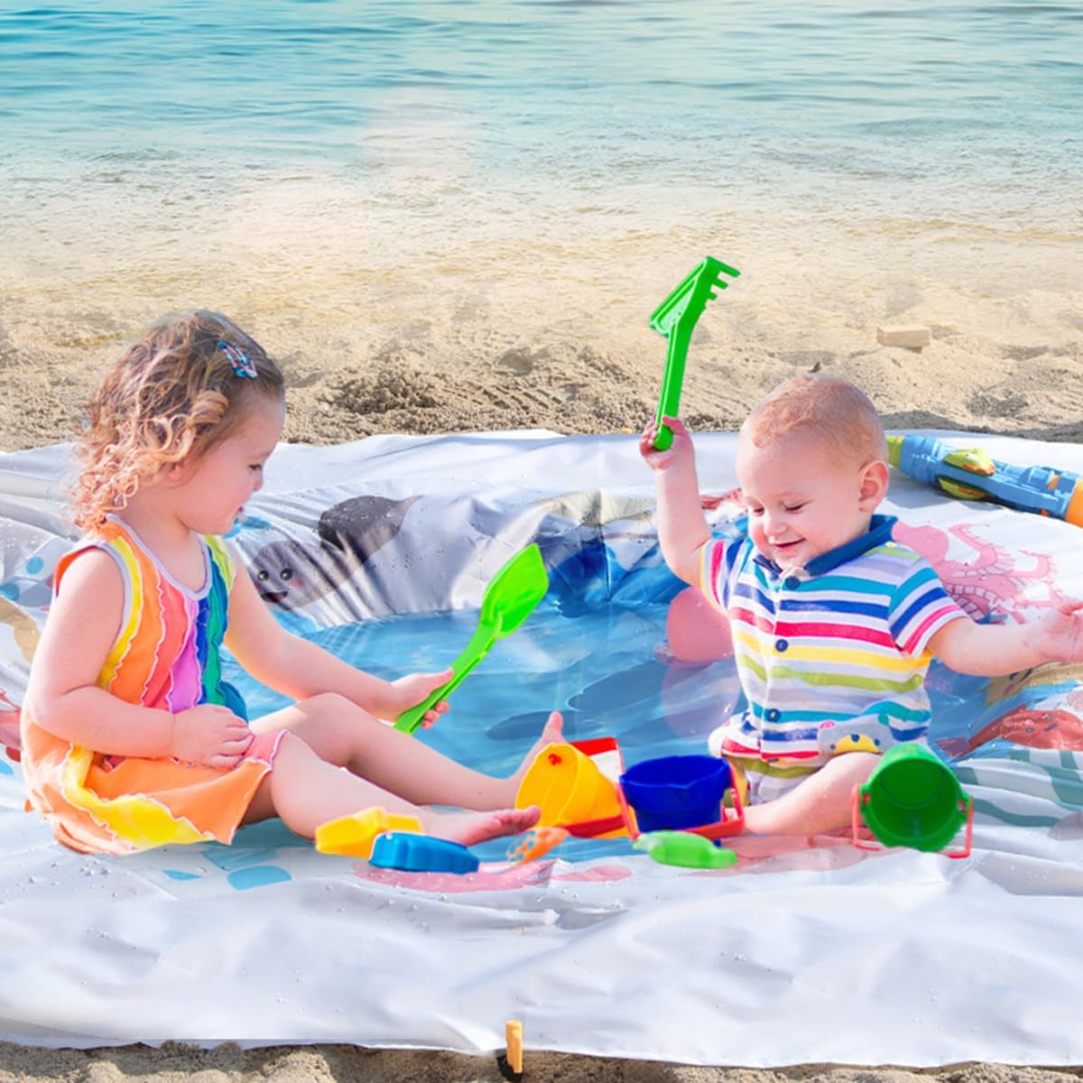 Gioco sicuro in acqua: materiale paraspruzzi extra spesso con angoli arrotondati e un sistema di barriera integrato per la sabbia che consente di spruzzare e scavare senza preoccupazioni. Tenuta sicura al suolo: le cinghie resistenti all'abrasione e gli ancoraggi rinforzati garantiscono stabilità su superfici irregolari, mentre la struttura antivento garantisce una sicurezza ottimale all'aperto. Applicazione versatile: offre un'area giochi espandibile con volume d'acqua regolabile per un uso esterno flessibile – ideale per attività in famiglia, divertimento multi-età e uso versatile in giardino, a casa o in piscina grazie alle opzioni di design variabili. Materiale robusto: il materiale spesso di alta qualità garantisce lunga durata e resistenza agli strappi. La protezione UV integrata protegge dalla luce solare pur essendo resistente alle varie condizioni atmosferiche per l'uso all'aperto tutto l'anno. Mobilità senza sforzo: la piscina pieghevole salvaspazio consente un facile utilizzo e trasporto. Il suo design leggero garantisce un trasporto senza stress per le gite in famiglia.