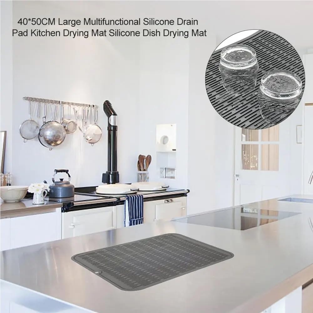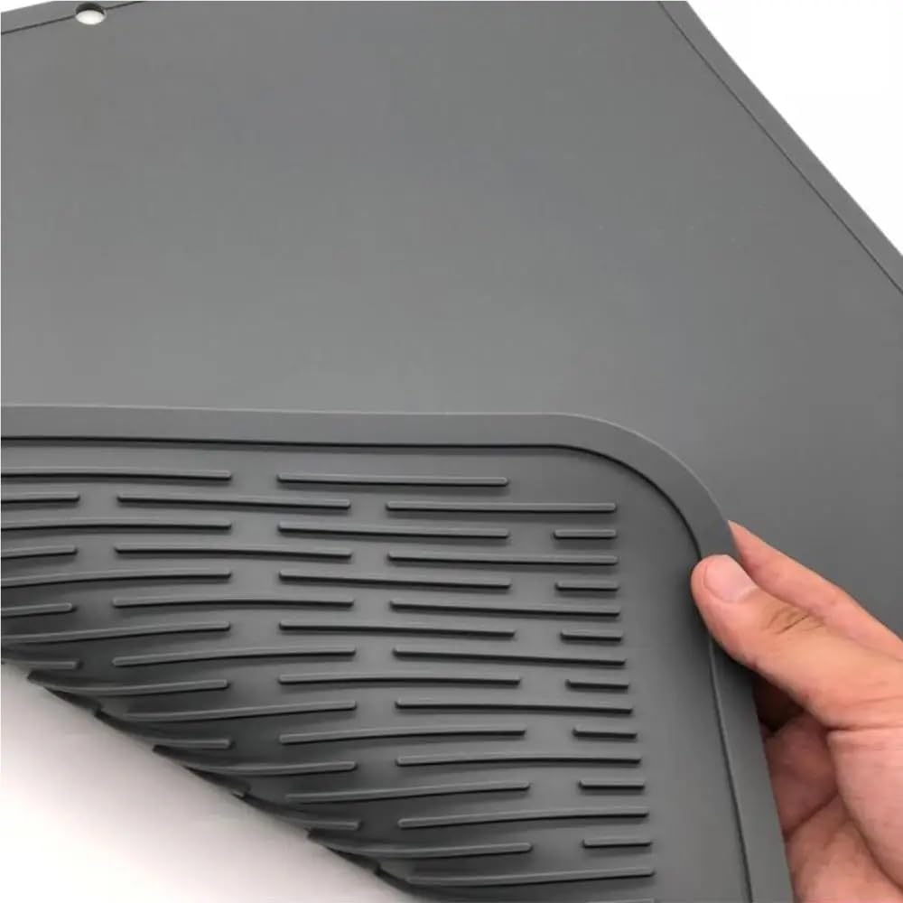 Zona di asciugatura con controllo delle fuoriuscite: le scanalature profonde convogliano l'acqua direttamente nei lavandini mentre i bordi rialzati prevengono le fuoriuscite sui ripiani. La superficie resistente al calore gestisce pentole calde, teglie da forno o contenitori for la preparazione dei pasti fritti ad aria senza deformarsi. Multifunzione salvaspazio: sostituisci gli ingombranti scolapiatti con questo sottile tappetino che funge anche da protezione for il bancone durante la stesura dell'impasto o l'affilatura dei coltelli. Si piega in modo compatto for piccole cucine, camper o for riporre sotto il lavello. Design igienico ad asciugatura rapida: la texture microventilata accelera il flusso d'aria for asciugare i piatti il 30% più velocemente rispetto ai cestelli tradizionali. La superficie non porosa resiste alla ritenzione di umidità in ambienti umidi e si pulisce con una sola passata. Comfort anti-fatica: lo spessore ammortizzato riduce lo sforzo del polso durante le sessioni di lavaggio prolungate. Il supporto antiscivolo rimane saldamente in posizione anche quando si caricano pesanti padelle in ghisa o teglie in vetro. Aggiornamento elegante della cucina: i toni neutri si fondono con l'arredamento moderno in stile rustico o minimalista. Utilizzabile come sottopentola decorativo for taglieri o come tappetino for ciotole for animali domestici tra un pasto e l'altro. Lavabile in lavatrice for una manutenzione senza sforzo.