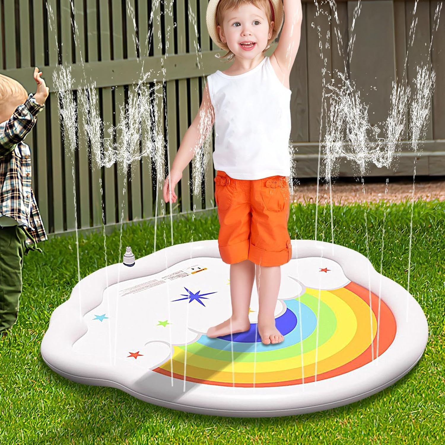Protezione Ottimizzata: Costruzione stabile con presa potenziata previene spostamenti improvvisi, accoppiata a getti d'acqua costanti e calibrati che eliminano disagi da pressione eccessiva, creando ambiente protetto per giochi prolungati sotto il sole Struttura rinforzata: Design a doppia protezione antiperdite con bordi arrotondati sicuri. Tecnologia di cucitura di precisione e materiali spessi aumentano la resistenza, impedendo deformazioni durante e movimenti dinamici Accessorio Portatile: Dotato di pratica borsa da trasporto con chiusura a cordino, garantisce svuotamento completo in 30 secondi e si ripiega in dimensioni tascabili. Ideale per giochi d'acqua estivi in qualsiasi ambiente, mantiene l'ordine durante il trasporto Gioco Acquatico Interattivo: Piattaforma con 12 ugelli regolabili che generano effetti misti di pioggia e . La geometria ergonomica favorisce il movimento coordinato, mentre i colori vivaci migliorano la percezione spaziale. Include controllo del flusso a pressione variabile per adattarsi a diverse età. Sviluppo Motorio Attivo: La disposizione simmetrica degli ugelli forma tende d'acqua circolari che incoraggiano il movimento fisico, migliorando le capacità motorie mentre massimizzano il piacere del gioco durante le sessioni di attività sul tappeto sprinkler