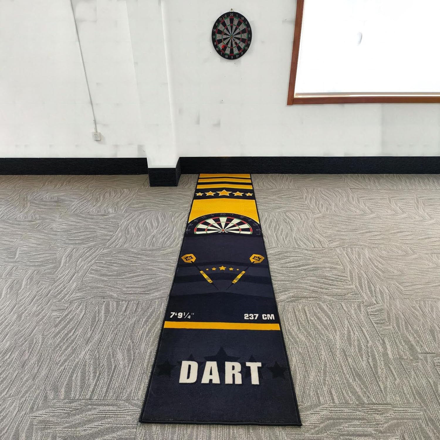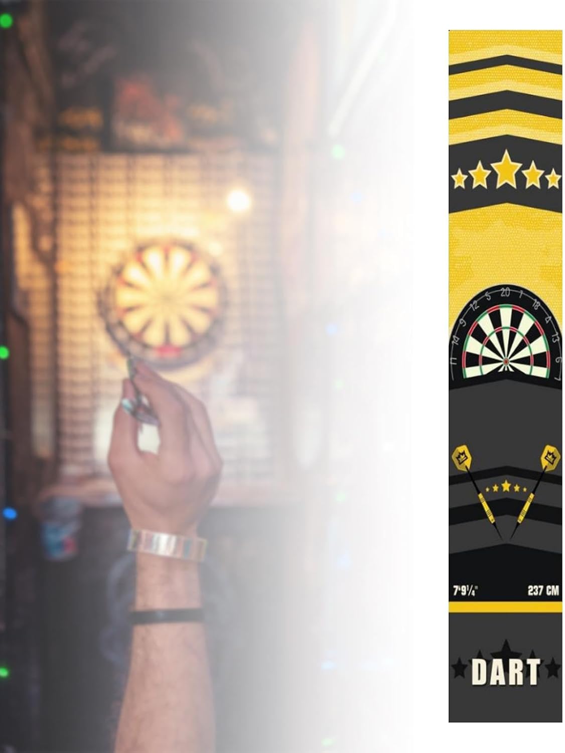 La confezione include: ogni confezione contiene 1 pezzo di tappeto per freccette, è un tappetino appositamente progettato per appassionati di freccette. 【Design unico】: il design del tappetino per freccette è allo stesso tempo alla moda e accattivante, attirerà sicuramente l'attenzione. 【Interno ed esterno】: adatto a casa, ufficio o spazio commerciale. Questo tappeto per freccette ti consente di divertirti giocando a freccette sia all'interno che all'esterno. 【Materiale】: questo tappeto per freccette è realizzato in TPE, robusto e antiscivolo. Può proteggere efficacemente il pavimento e il dardo dai danni. Facile da riporre e trasportare: con le sue dimensioni moderate di 66 cm x 300 cm/25,98 pollici x 118,11 pollici, questo accessorio per freccette consente di risparmiare spazio rendendolo facile da riporre e trasportare.