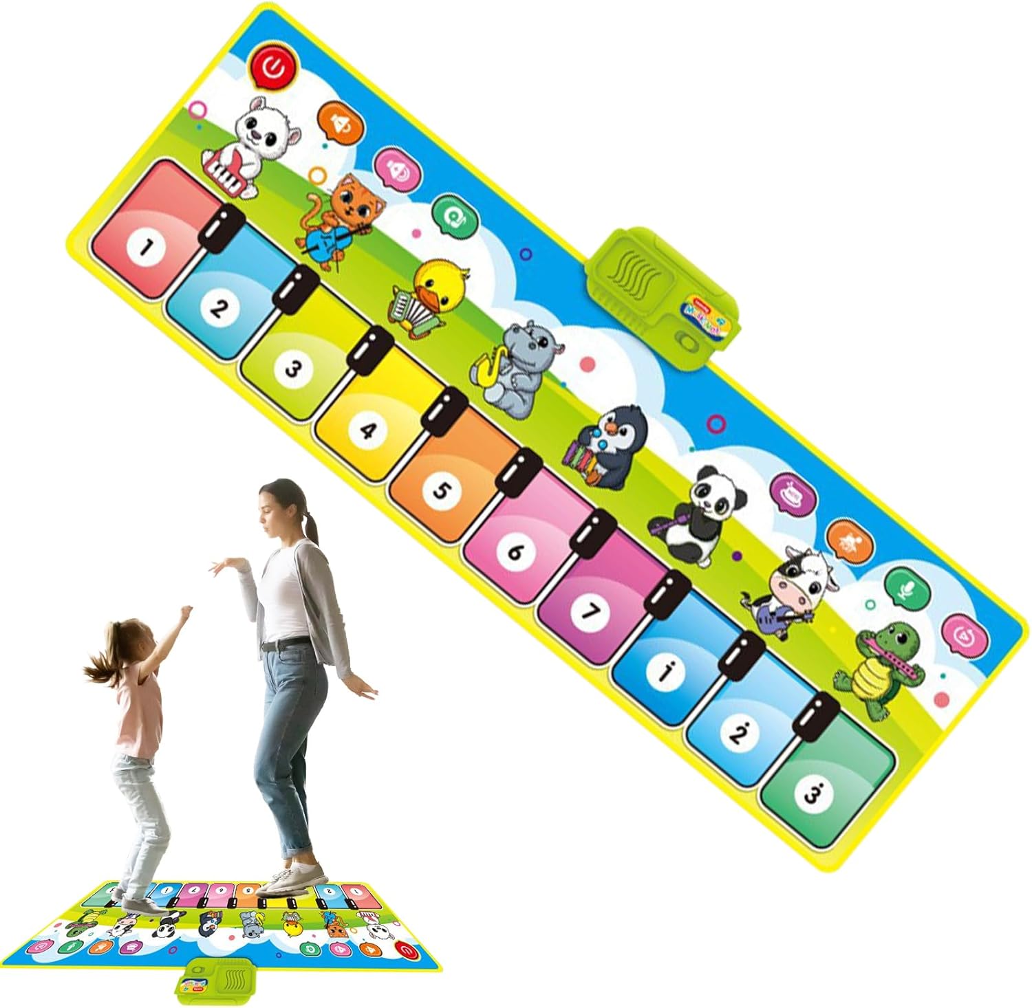 Estetica Dinamica: I colori brillanti e vivaci accrescono la consapevolezza visiva e ispirano la creatività catturando l'attenzione con un effetto visivo coinvolgente Apprendimento Sonoro Interattivo: Incentiva allenamento uditivo e percezione musicale con suoni strumenti realistici, creando ambiente immersivo che supporta prima esposizione musicale e progressione didattica. Esperienza Multistrumento: Stimola l'interesse musicale con modalità multiple di strumenti che offrono approcci adattabili per esplorare e incoraggiare la creatività ad ogni fase di utilizzo Capacità di Coordinazione: Sviluppa la coordinazione occhio-mano-piede per migliorare l'armonia corporea complessiva e affinare i riflessi rapidi durante l'allenamento dinamico interattivo sul tappeto Stimola lo Sviluppo Cerebrale:Aiuta a costruire ragionamento logico e capacità di giudizio con metodi scientifici, contribuendo all'educazione infantile creando un ambiente stimolante per il naturale delle abilità cognitive durante il gioco musicale interattivo per bambini
