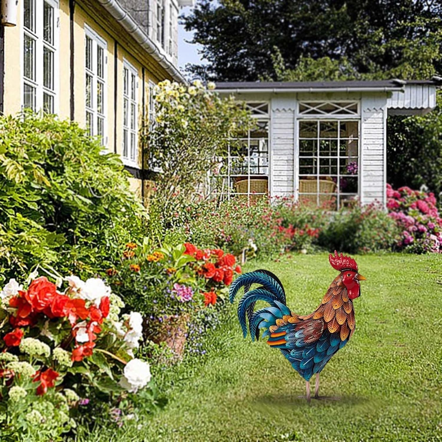 Materiali: questa arte della fattoria di polli è realizzata in legno. È adatto per uso interno ed esterno Design originale: ha una postura realistica e piume squisite, che lo rendono un nucleo sorprendente nei giardini all'aperto. Facile da montare: non sono necessari attrezzi. La nostra statua di gallo viene fornita con istruzioni di montaggio. Segui passo dopo passo e lo avrai installato in no, migliorando il tuo giardino senza sforzo. Applicazione versatile: alta 43,2 cm, questa statua di gallo è versatile e adatta per giardini, cortili, prati, balconi, case coloniche, sentieri, aree, vialetti, aiuole, patii e persino cucine. È il protettore di qualsiasi spazio. Regalo ideale: per la maggior parte delle persone, il patio esterno è l'ultimo posto in cui pensano di decorare, quindi ricevere questa scultura di gallo sarà l'inizio di un'avventura di raccolta e decorazione. O come regalo di inaugurazione della casa per un amico o un vicino
