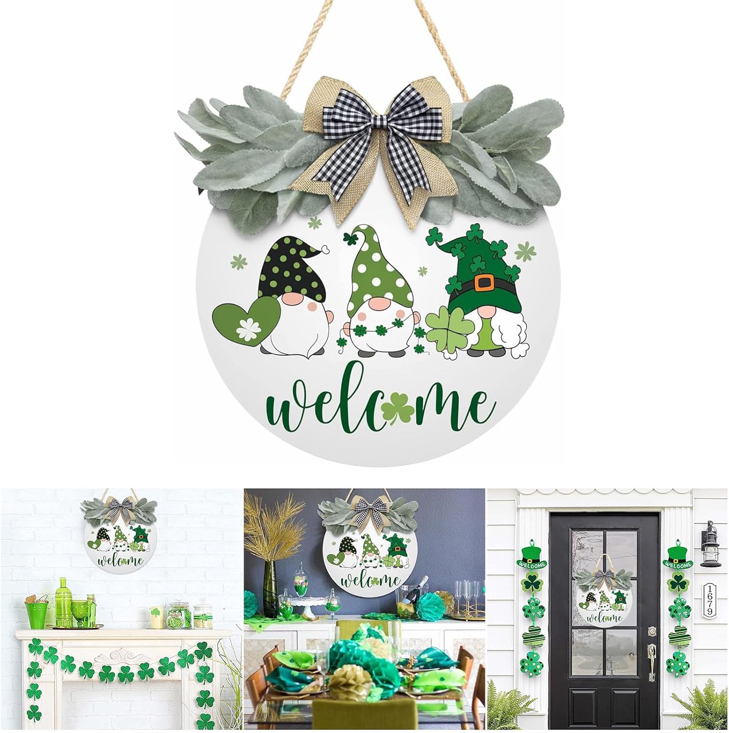 Festeggia la giornata irlandese con il nostro cartello di benvenuto in legno, presenta gnomi festivi e un fiocco che aggiunge un tocco di allegria irlandese a qualsiasi ambiente. Realizzata in legno, questa decorazione impermeabile è progettata per essere appesa e rimossa facilmente, garantendo che rimanga elegante per tutta la vacanza. per proprietari di case, proprietari di negozi e organizzatori di eventi che cercano di infondere il loro spazio con un'atmosfera festosa. Adatto per porte d'ingresso, portici, finestre, aule e luoghi di celebrazione della comunità, questo ornamento migliora sia la decorazione interna che esterna. Abbraccia l'aria del festival irlandese con questo cartello in legno, un'aggiunta essenziale alla tua collezione di decorazioni irlandesi, portando colore a casa o in ufficio.