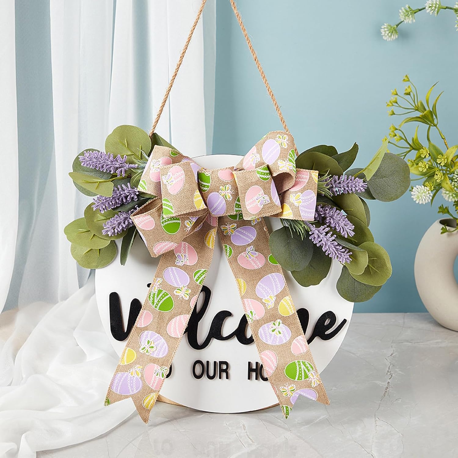 Migliora i tuoi decori pasquali con la nostra delicata targa in legno da appendere alla porta di Pasqua, presenta un design di conigli che aggiunge un tocco accogliente a qualsiasi ingresso o stanza Questo cartello con ghirlanda pasquale con fiocco verde non solo mostra il tuo entusiasmo per le vacanze, ma si integra anche perfettamente in fattorie o stili di arredamento moderno, creando un'atmosfera felice Adatto per gli appassionati di decorazioni per la casa e i celebratori di festival cercano tocchi personalizzati, questo cartello è per coloro che apprezzano decorazioni uniche e di buon gusto per le vacanze Multifunzionale nell'applicazione, questo cartello pasquale può essere appeso alla porta d'ingresso, alla parete del soggiorno, alla vetrina o anche ai caminetti, migliorando le atmosfere del festival in vari ambienti Realizzato in legno, questo cartello robusto e facile da usare vanta colori vivaci e dettagli intricati, rendendolo un'aggiunta accattivante alle tue decorazioni stagionali