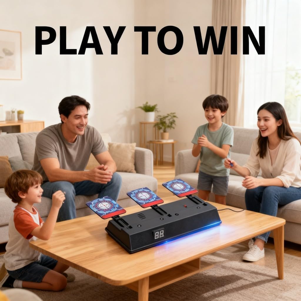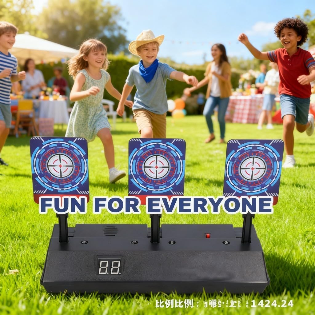 【Reset automatico】: I tre pannelli bersaglio si sollevano automaticamente dopo essere stati colpiti tutti, garantendo un gioco senza interruzioni. Questa funzione intuitiva permette ai bambini dai 4 ai 9 anni di divertirsi senza pause, ideale per giochi veloci e dinamici che mantengono alta l’attenzione. 【Contatore punteggio LED】: I led colorati e i suoni segnalano ogni colpo preciso, mentre il contatore digitale somma i punti dopo aver centrato tre bersagli. Questo rende il gioco adatto a bambini 6-8 anni, stimolando la competitività e rendendo ogni partita emozionante e coinvolgente. 【Gioco di precisione】: per migliorare mira e coordinazione occhio-mano nei bambini 5-7 anni attraverso momenti di gioco attivo. Ideale per allenamenti in famiglia o con amici, offre un’esercitazione divertente che sviluppa abilità motorie fondamentali con un prodotto resistente e sicuro. 【 divertente e educativo】: Un’ottima scelta per bambini 4-6 anni, combinando divertimento e apprendimento. Stimola la concentrazione e la perseveranza durante il gioco, risultando un presente apprezzato in compleanni o festività, che favorisce il gioco sano e la socializzazione. 【Attrattiva per bambini e adulti】: Design coinvolgente e facile da usare che appassiona sia i più piccoli che gli adulti. per serate gioco in famiglia o feste con amici, favorisce la condivisione e rafforza i rapporti attraverso competizioni amichevoli, rendendolo un must-have per ogni occasione ludica.