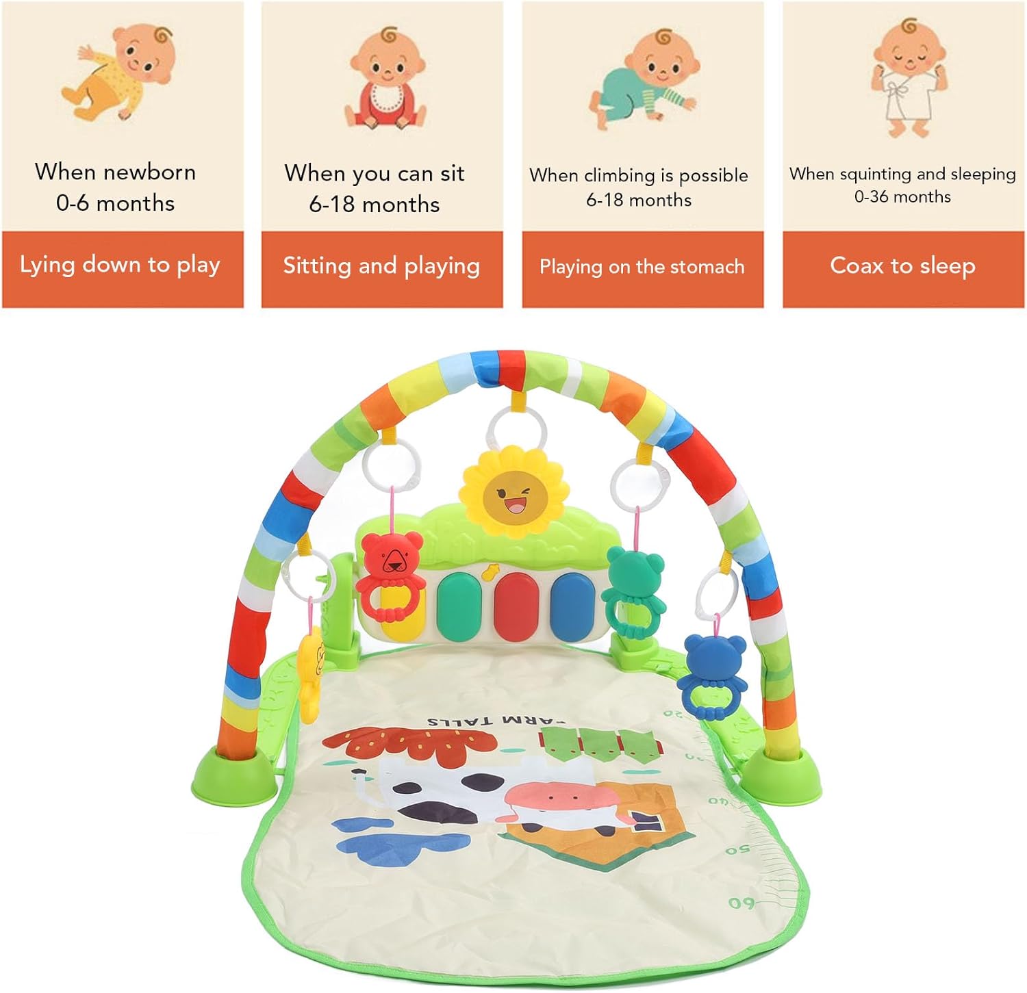 【Sviluppo precoce】 Con 5 campane colorate staccabili e musica per interattiva, questo tappetino per l'attività del bambino stimola lo sviluppo e il coordinamento sensoriali, permettendo ai bambini di impegnarsi mentre calciano le chiavi e raggiungendo i giocattoli. 【Comfort traspirante】 Progettato con spessore ottimale, il tappetino per il pavimento promuove la traspirabilità per gli esercizi di tempo di pancia, rendendolo una scelta eccellente per l'apprendimento precoce e una riflessiva per ogni occasione. 【Design portatile】 Il centro di attività del bambino è facile da piegare e archiviare, rendendo comodo per i genitori portare il loro bambino in viaggio. Ideale per l'uso a casa o durante le uscite, supporta fino a 36 mesi. 【Gioco versatile】 Con 5 modalità di gioco tra cui mentire, seduta, tempo di pancia e gioco da asporto, il tappetino da gioco per bambini fa bene ai bambini dai neonati a 3 anni, sostenendo varie attività di sviluppo man mano che crescono. 【Materiali sicuri】 I tappetini per bambini per il pavimento sono realizzati con tessuti morbidi e sicuri per bambini che garantiscono un'esperienza di gioco confortevole e divertente. Questo tocco delicato rende bene la pelle delicata del tuo bambino.