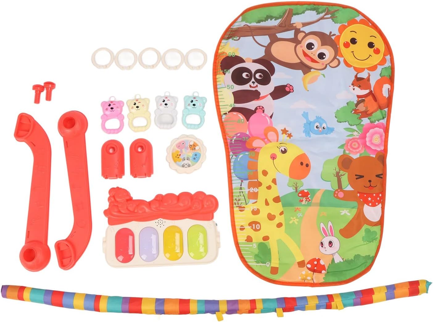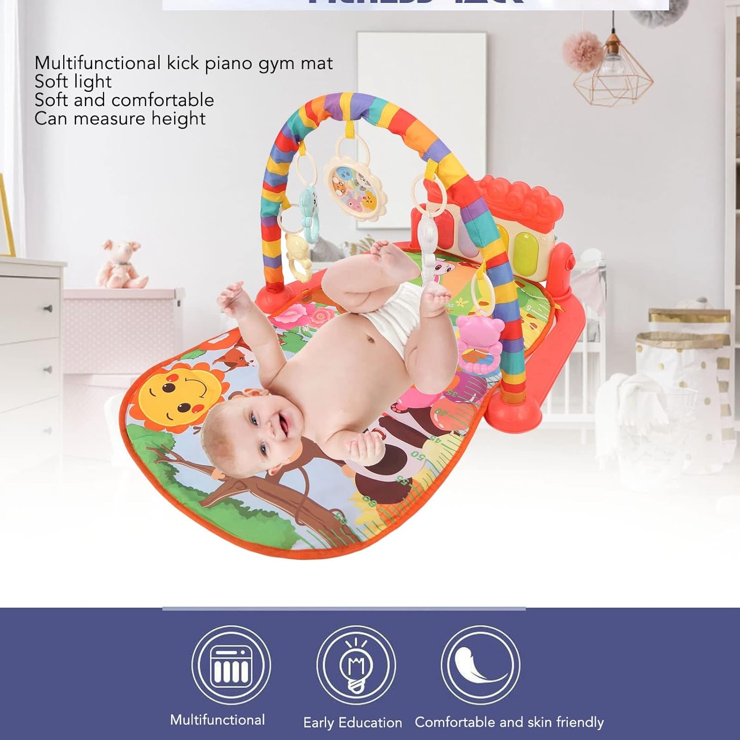 【Vibranti motivi animali】- Il tappetino da gioco imbottito per il bambino sul nostro tappetino da palestra è progettato per attirare l'attenzione del tuo bambino. Con colori vivaci e resistenti alla dissolvenza, il nostro tappetino serve una combinazione di estetica e funzionalità che manterrà il tuo bambino interessato al loro tempo di gioco. 【Migliora la coordinazione occhio-mano】- Passa in un mondo di interattività e apprendimento con il nostro tappetino per il tempo della pancia. Dotato di una tastiera per che promuove lo sviluppo visivo e la coordinazione occhio-mano, questo tappetino è il compagno di giochi ideale del tuo bambino. Progettato per incoraggiare le capacità di scansione del bambino. 【Tessuto comodo e adatto alla pelle】- Garantire che il comfort del tuo bambino sia la nostra massima priorità. La nostra palestra per bambini è progettata con tessuto morbido, sicuro e adatto alla pelle. Il suo spessore moderato offre traspirabilità e comfort per il tuo bambino durante il gioco. Inoltre, è facile da pulire. 【Lullazioni rilassanti e illuminazione morbida】- Per fare meglio il tappetino da gioco, il nostro tappetino da ginnastica è dotato di ninne nanne delicate e illuminazione morbida. Queste caratteristiche non inducono il tuo bambino in un sonno dolce, ma promuovono anche la cognizione cerebrale, incoraggiano l'identificazione del tocco e l'immaginazione. 【Raccolto di schiuma altamente resiliente】 - Progettato per la durata, il nostro tappetino da gioco per bambini per è dotato di un elevato rack in schiuma elastico che mantiene la sua forma nonostante l'uso frequente. Il tappetino viene inoltre dotato di un set di accessori di assemblaggio facile installazione e smontaggio. Il suo design compatto lo rende convenientemente memorizzabile.