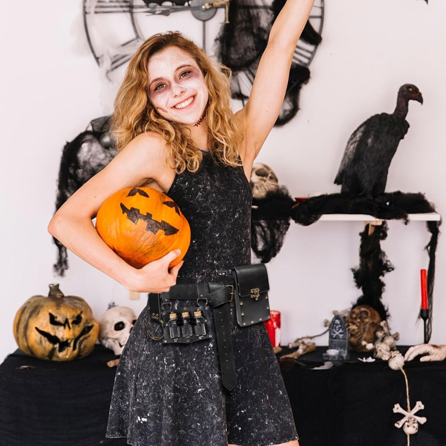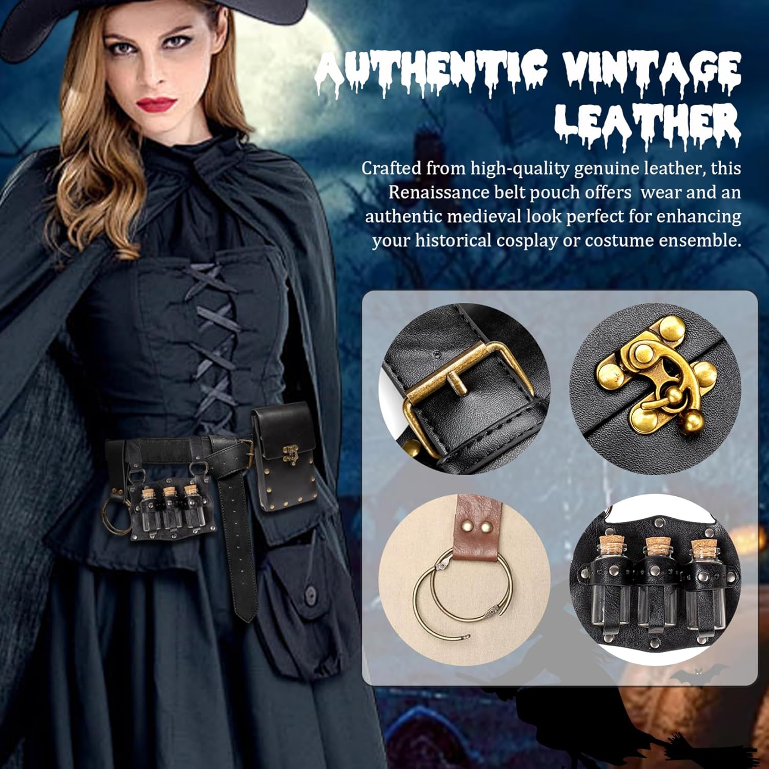 Autentico stile vintage: realizzato in pelle premium con una finitura angosciata, questo sacchetto della cintura rinascimentale canalizza il fascino autentico medievale perfetto per rievocazioni storiche, cosplay o fiere rinascimentali, migliorando l'autenticità del tuo costume. Pratica conservazione delle pozioni: progettato con porta bottiglie di pozione dedicati, questa custodia mantiene le tue pozioni, accessori o bigiotteria in miniatura organizzati e facilmente accessibili, ideali per incontri a tema fantasy o Halloween. Fit di comfort regolabile: la cintura in pelle regolabile garantisce una vestibilità sicura e confortevole per varie dimensioni della vita, permettendoti di indossarlo tutto il giorno durante gli eventi senza disagio o scivolamento. Robusto e leggero: realizzato in pelle robusta ma leggera, questa tasca bilancia la durata con praticità, assicurando che resisti all'uso esterno pur rimanendo comodo per l'usura prolungata. Accessorio versatile per i costumi: perfetto per i costumi rinascimenta, medievale, pirati o fantasy, questa sacca a cintura completa una gamma di abiti, rendendolo un accessorio indispensabile per parti di Halloween, cosplay, LARP o a tema.