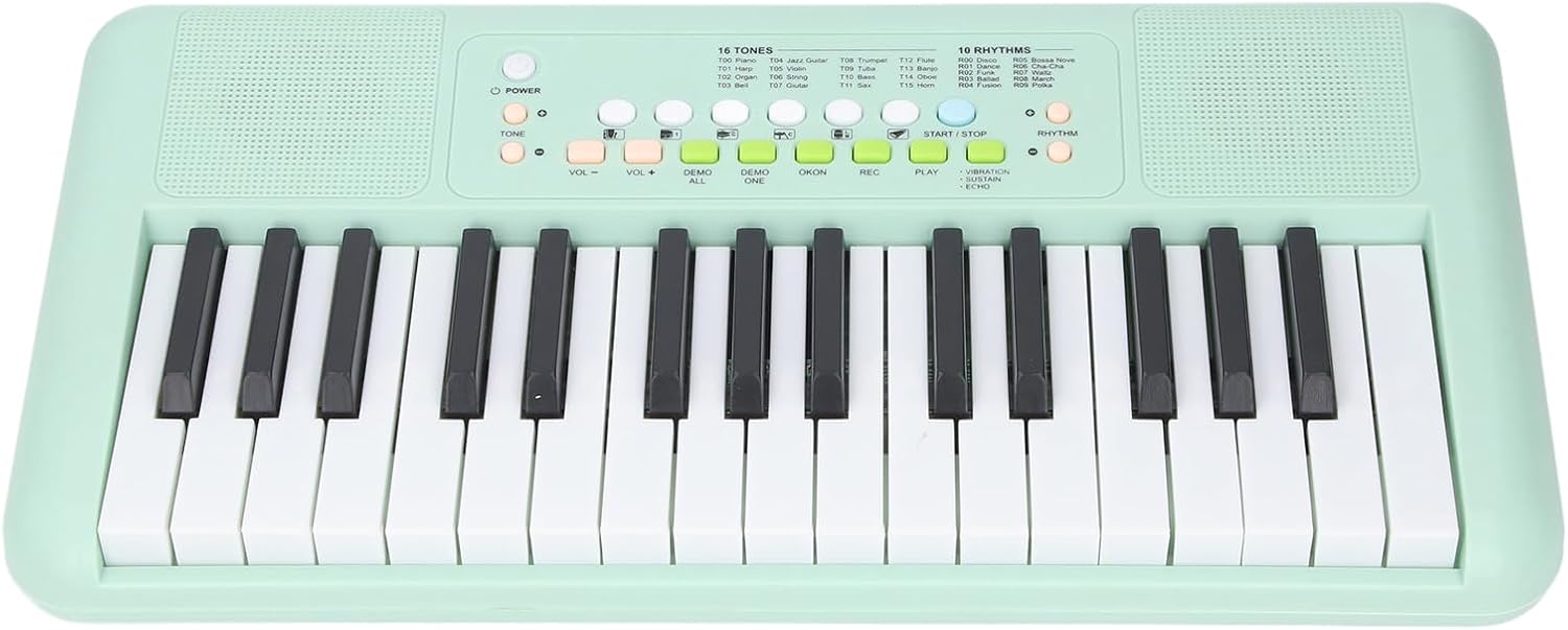 [Performance versatile] La tastiera elettronica a 32 chiave presenta 16 toni, 10 ritmi e 10 canzoni dimostrative, consentendo una vasta gamma di opzioni musicali. [Connettività avanzata] con microfono, porte di input/output del suono e un'interfaccia USB di tipo C, questo piano digitale offre più opzioni di connettività. [Registrazione di alta qualità] dotato di un microfono e doppio altoparlanti, questa tastiera consente di registrare e riprodurre le tue esibizioni senza sforzo. [Facile da praticare] Regola il volume, seleziona toni e ritmi ed esplora effetti sonori come il vibrato e Sustain per migliorare le sessioni di pratica. [Design compatto] La dimensione compatta di questa tastiera a 32 tasti rende perfetta per i principianti da esercitarsi ovunque, in qualsiasi momento.