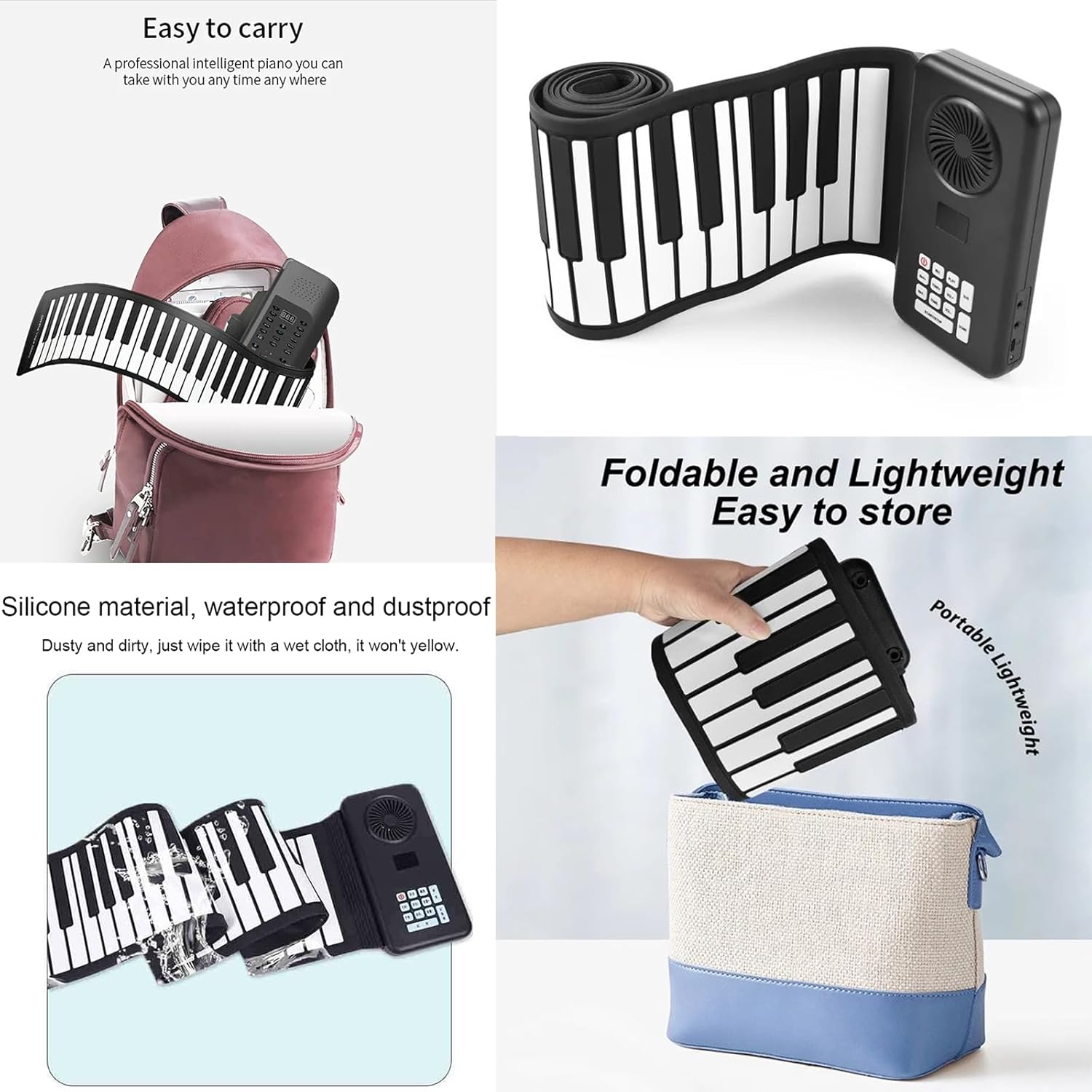 【ISPIRARE IL TALENTO MUSICALE】Il nostro tastiera musicale portatile è disponibile nel classico bianco e nero a 88 tasti standard per pianoforte con una superficie funzionale facile da leggere e da usare per esercitarsi con la diteggiatura in movimento. Regalo ideale per i principianti del pianoforte per sviluppare il loro talento musicale. 【MULTIPLA GIOCABILITÀ】Il tastiera musicale portatile ha 88 tasti, 128 toni e ritmi, 6 canzoni demo, e il pianoforte pieghevole include anche canzoni dimostrative, registrazione, riproduzione, sustain, tempo, volume, tono e altre funzioni. Insegna e suona, soddisfa le esigenze di esercizio dei principianti. 【GARANZIA DI ALIMENTAZIONE DOPPIA】Il tastiera musicale portatile in silicone è dotato di una batteria incorporata posizionabile che supporta le operazioni di ricarica USB, ricarica mobile e sostituzione della batteria. Non c'è bisogno di preoccuparsi delle prestazioni insufficienti durante l'allenamento. 【ALTA QUALITÀ】Il nostro tastiera musicale portatile ha un design professionale della struttura sonora, potenti altoparlanti magnetici doppi, alti chiari e bassi profondi. Il pannello di controllo a sfioramento e i pulsanti elettronici del volume sono facili da usare e duraturi. 【SERVIZIO CLIENTI】La qualità del prodotto è il nostro unico vantaggio. Vi offriamo 180 giorni di garanzia sul prodotto. I clienti sono la nostra massima priorità. Se trovate qualsiasi problema del prodotto dopo aver ricevuto il tastiera musicale portatile, come danni, quantità di articoli errati, si prega di contattare immediatamente il venditore. Risponderemo entro 24 ore