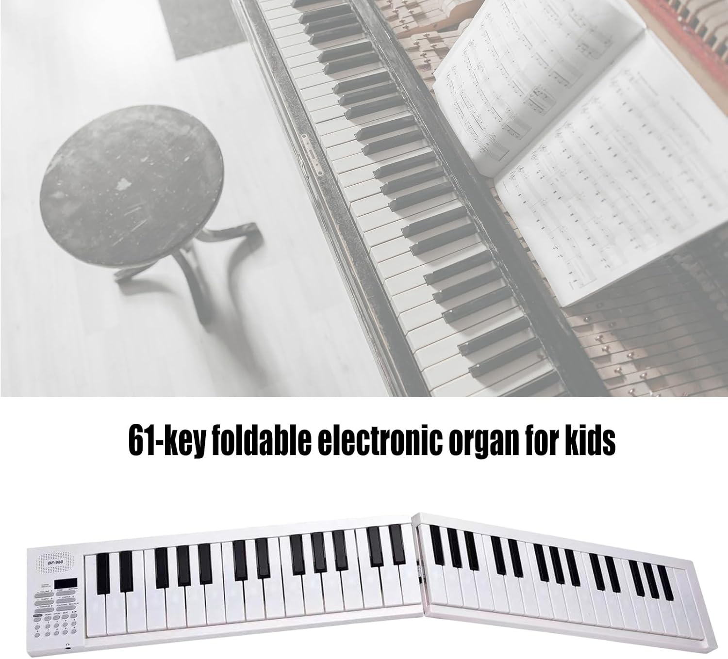 Pieghevole, dimensioni compatte e peso leggero, facile da trasportare in Dotato per cuffie per lo studio privato e un cavo alimentazione USB comoda ricarica. Puoi suonare musica senza disturbare altri Presenta anche un display a LED, luce ricarica, regolazione dei volumi, regolazione della velocità e trasposizione piano elettronico viene fornito con 16 toni, 100 ritmi e 25 canzoni dimostrative piano ha funzione insegnamento che include gioco casuale, seguire gioco, la tastiera, metronomo, la registrazione e la riproduzione. Questo lo rende uno strumento apprendimento eccellente per i principianti