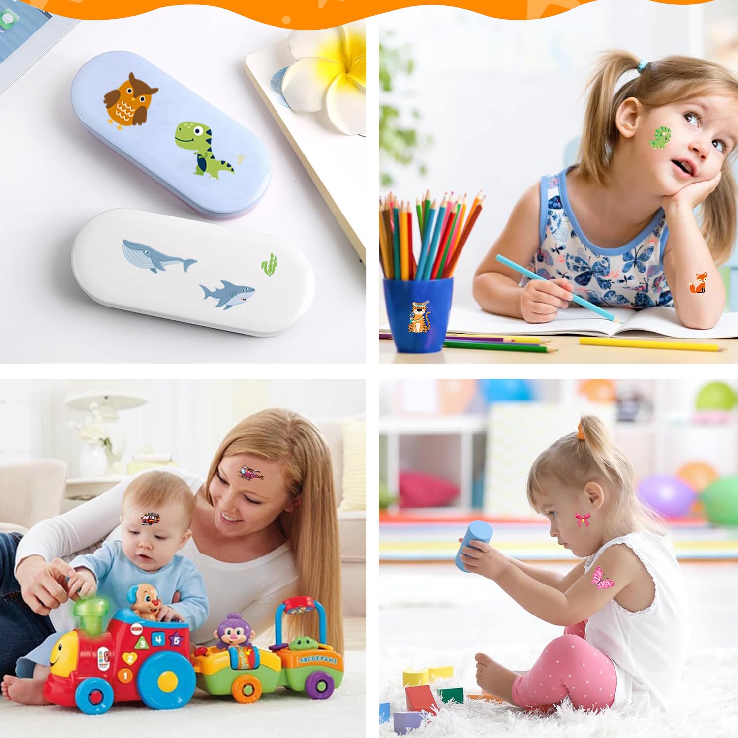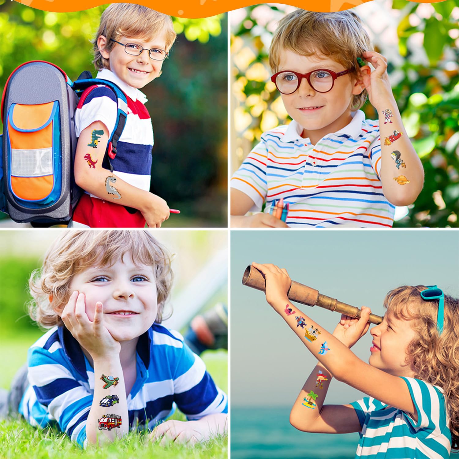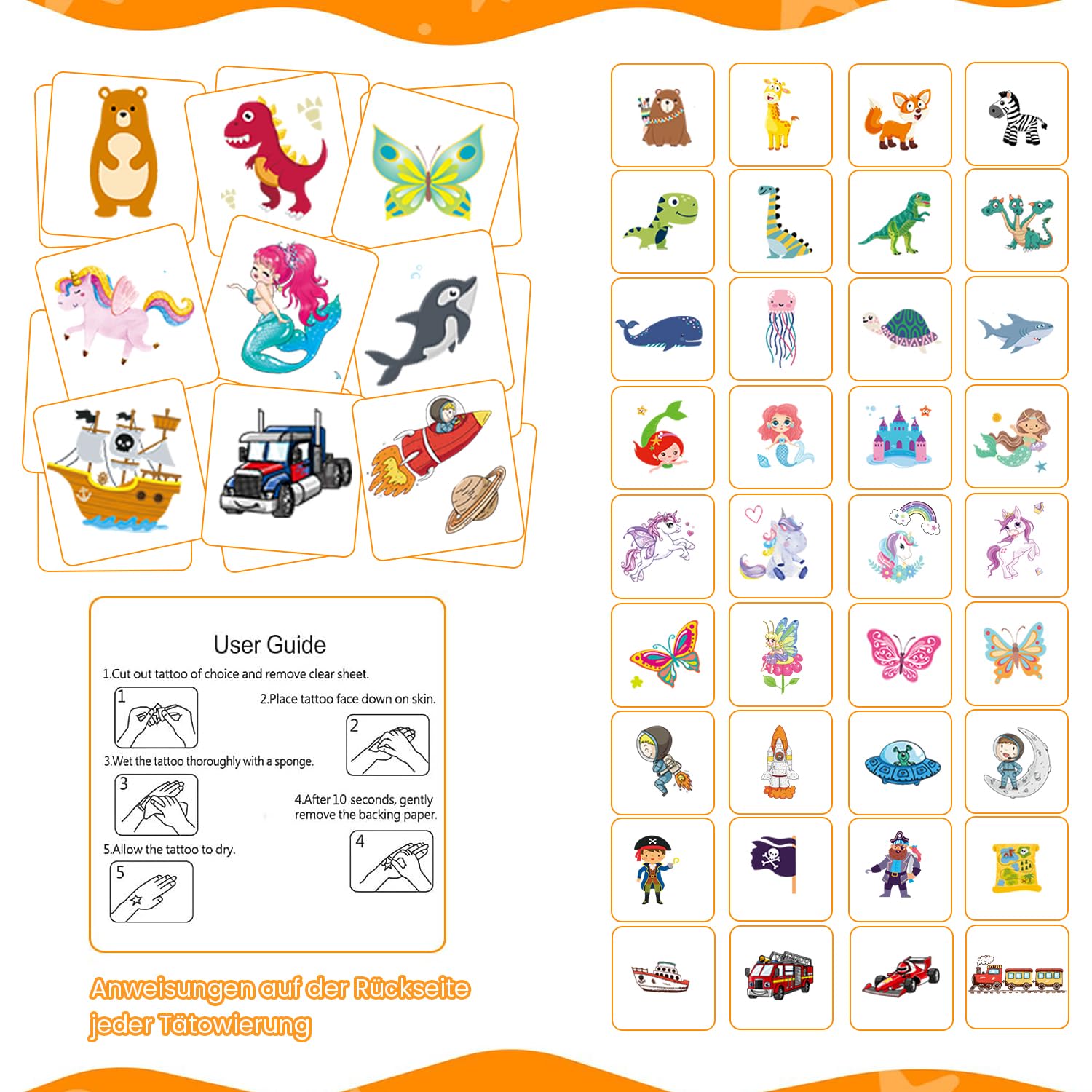 🦋 【Varietà di tatuaggi per bambini】 Oltre 350 set di tatuaggi per bambini. I tatuaggi per bambini comprendono 30 fogli con 10 temi diversi. Come animali, dinosauri, pirati, spazio, farfalle, fate, sirene, oceano, automobili e altro ancora. Questi diversi design possono soddisfare gli interessi e le preferenze di bambini diversi. Influenzano sottilmente l'immaginazione e la creatività dei bambini e mostrano personalità e stili diversi. 🍀【I tatuaggi per bambini sono delicati sulla pelle】 Li abbiamo ricoperti con uno strato di materiale trasparente per garantire che i tatuaggi adesivi siano durevoli, impermeabili e resistenti al sudore. I bambini potranno indossarli e giocare in spiaggia, sotto la doccia o in piscina. 🐘【Facile applicazione e rimozione dei tatuaggi】 Ritaglia il motivo desiderato, rimuovi la pellicola protettiva trasparente, incollala nella posizione desiderata, inumidisci completamente il tatuaggio temporaneo con acqua, premilo delicatamente e attendi 10 secondi: il gioco è fatto! Tuo figlio può farlo da solo. Questi tatuaggi temporanei sono anche facili da rimuovere, basta lavarli con acqua e sapone. 🌼【Ricompensa per l'apprendimento dei bambini】I motivi colorati e vivaci dei tatuaggi adesivi per bambini in diversi temi possono stimolare la creatività e l'immaginazione dei bambini. Insegnanti, genitori e nonni possono premiare i bambini per i loro sforzi e il buon comportamento con tatuaggi infantili, rafforzando il rapporto tra i bambini e i loro cari. 🎁【Regalo ideale per ragazzi e ragazze】 I tatuaggi per bambini sono perfetti per feste di compleanno per bambini, riempimento di zaini per ragazzi e ragazze, regali di ritorno a scuola, Halloween, calendari delle avventure, Natale, Pasqua e altre celebrazioni. I bambini possono applicare questi tatuaggi temporanei su qualsiasi superficie liscia, come giocattoli, vetro, piastrelle, articoli di cancelleria, oggetti in plastica, custodie per telefoni, automobili e così via.