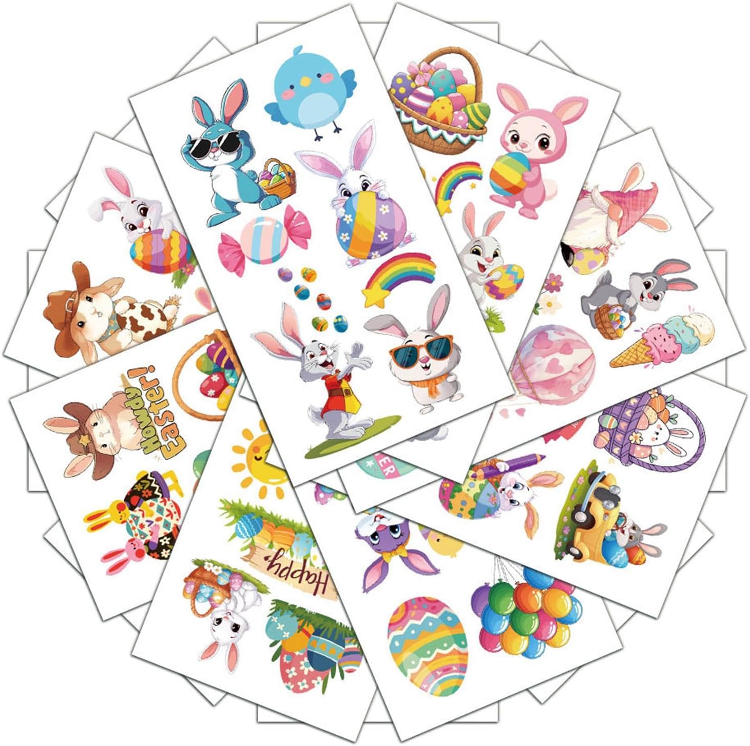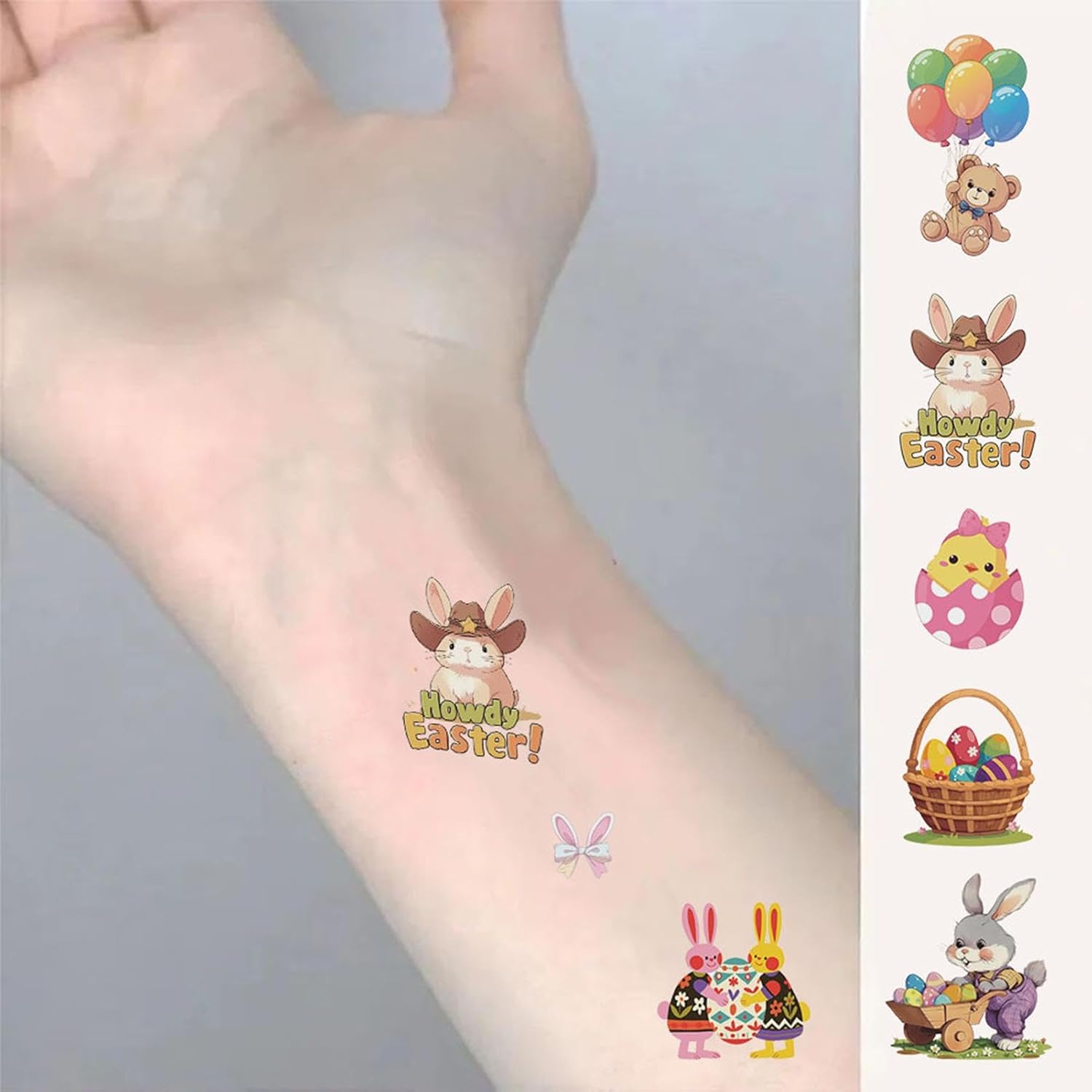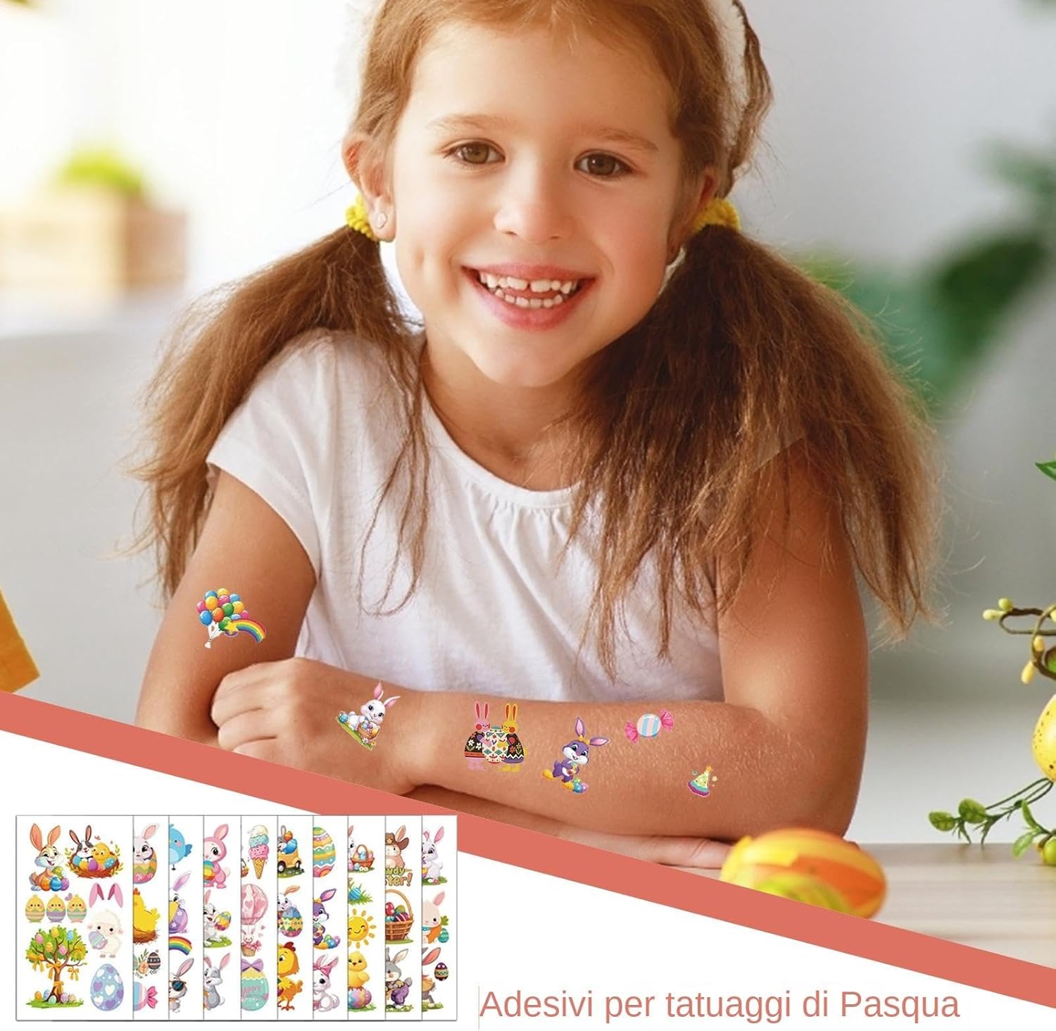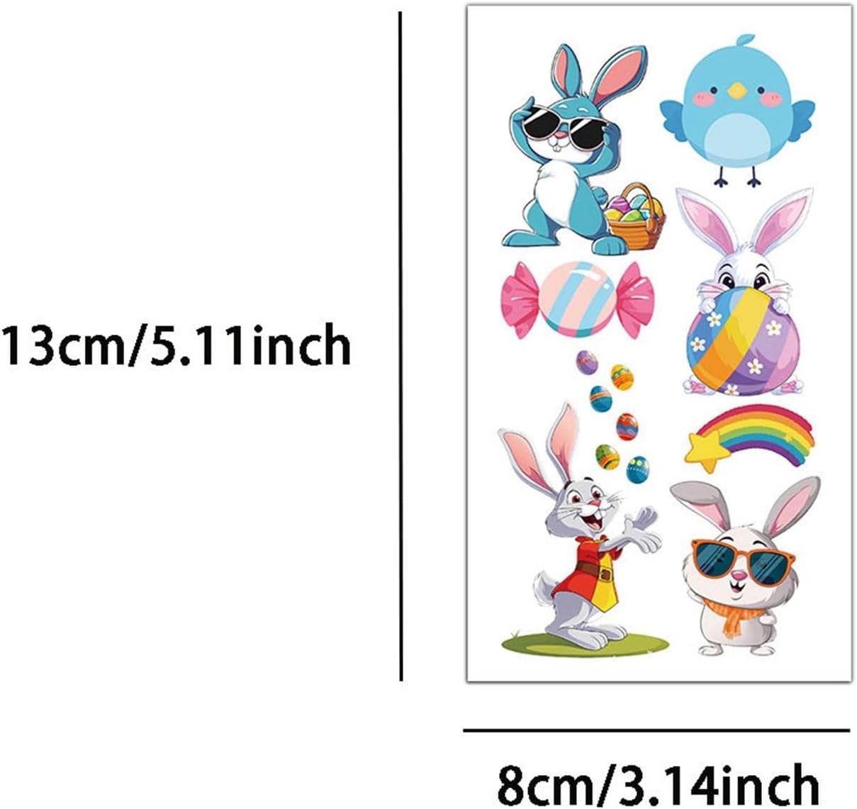 Divertimento pasquale: sfoggiando una varietà di disegni con elementi unici, questi adesivi per tatuaggi pasquali ispirano la creatività e si abbinano a qualsiasi trucco festivo, soddisfacendo diverse preferenze Accenti festivi pasquali: con carote color pastello, ghirlande pasquali e orecchie da coniglio, i nostri adesivi per tatuaggi pasquali sono il modo perfetto per aggiungere un tocco di colore e personalità al tuo outfit natalizio. Realizzati con elementi pasquali unici e pieni di atmosfera festosa, questi adesivi ti aiuteranno a creare un trucco pasquale davvero unico nel suo genere Semplice da usare: applicare i nostri adesivi Tatoo pasquali è un gioco da ragazzi: basta attaccarli, pulirli con una salvietta bagnata e attendere che si asciughino. Il processo è così semplice che anche i bambini possono utilizzarlo facilmente, rendendolo estremamente conveniente Ampiamente usato: amati dai bambini di tutte le età, gli adesivi Tatoo pasquali sono l'aggiunta perfetta ad ogni celebrazione. Ampiamente applicabili a qualsiasi festival e scena, sono ideali per allestire feste, giochi di caccia alle uova, premi, riempitivi per sacchetti regalo e decorazioni per cestini. Regalo ideale: regalo decorativo ideale per feste, regali commemorativi unici e perfetti come regali di compleanno o di vacanza per bambini, assicurando che ogni evento con questi adesivi tatoo pasquali diventi una festa memorabile