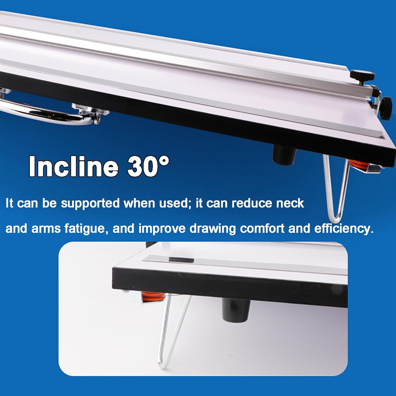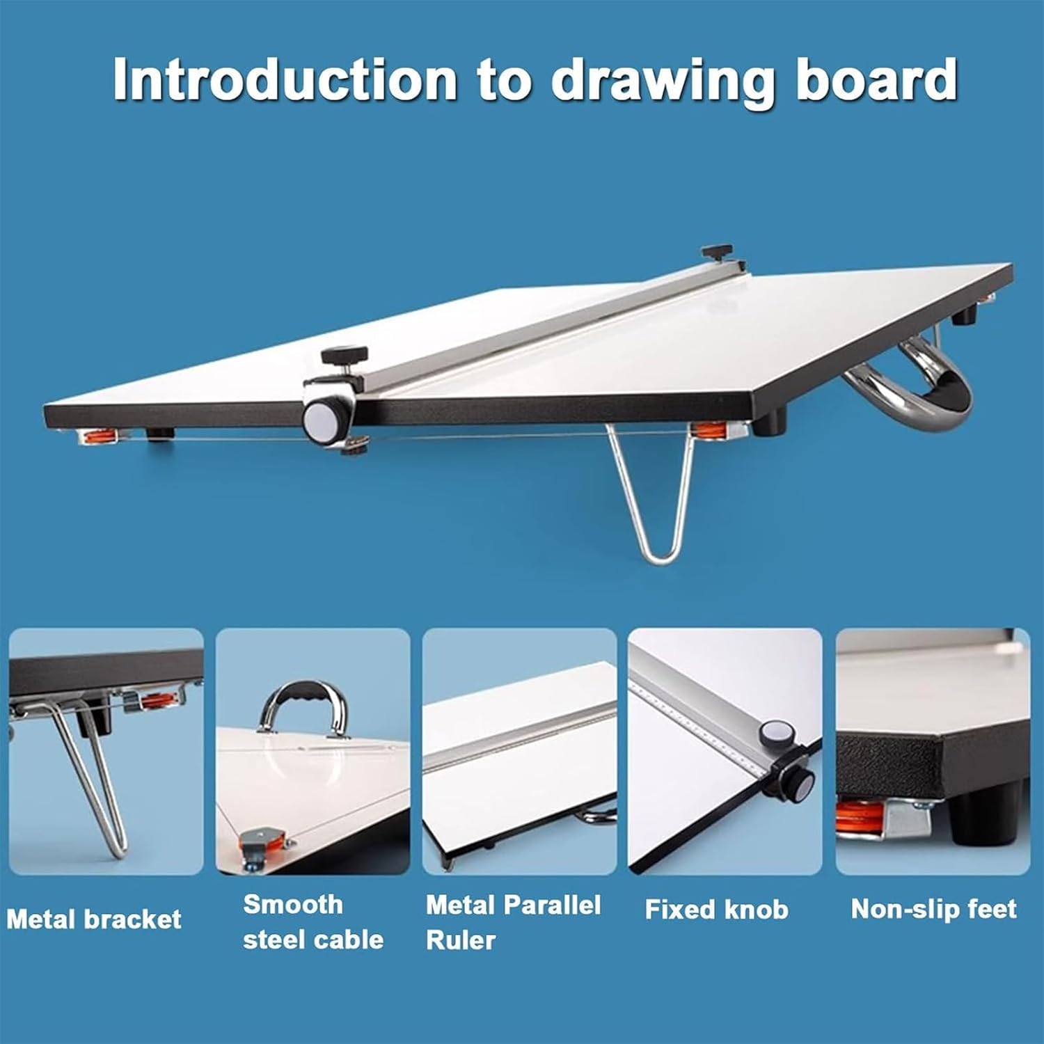 Bordo dritto scorrevole liscio: il tavolo da disegno da 60 x 45 cm presenta un bordo dritto che scivola senza sforzo su e giù, con una linea orizzontale e un sistema di pulegge sotto per mantenere l'allineamento parallelo in qualsiasi posizione per un disegno preciso. Design regolabile stabile: dotata di manopole di regolazione e piedini pieghevoli in metallo, questa tavola impedisce l'inclinazione e le interruzioni durante l'uso. Le estremità gommate proteggono le superfici dai graffi, garantendo stabilità su varie scrivanie. Porta carta magnetica: una lavagna magnetica e una striscia di pressione in acciaio inossidabile posizionano saldamente la carta da disegno di qualsiasi dimensione senza puntine o nastro, mantenendola piatta per schizzi precisi e facili regolazioni. Inclinazione a 30 gradi per il massimo comfort: il supporto regolabile consente alla tavola di inclinarsi fino a 30 gradi, riducendo l'affaticamento del collo e delle braccia durante l'uso prolungato, migliorando il comfort e l'efficienza del disegno in studi o aule. Versatile per professionisti: ideale per artisti, architetti, ingegneri e designer, questa lavagna supporta pittura, schizzi, disegno e artigianato, rendendolo uno strumento affidabile per progetti creativi in diversi ambienti.