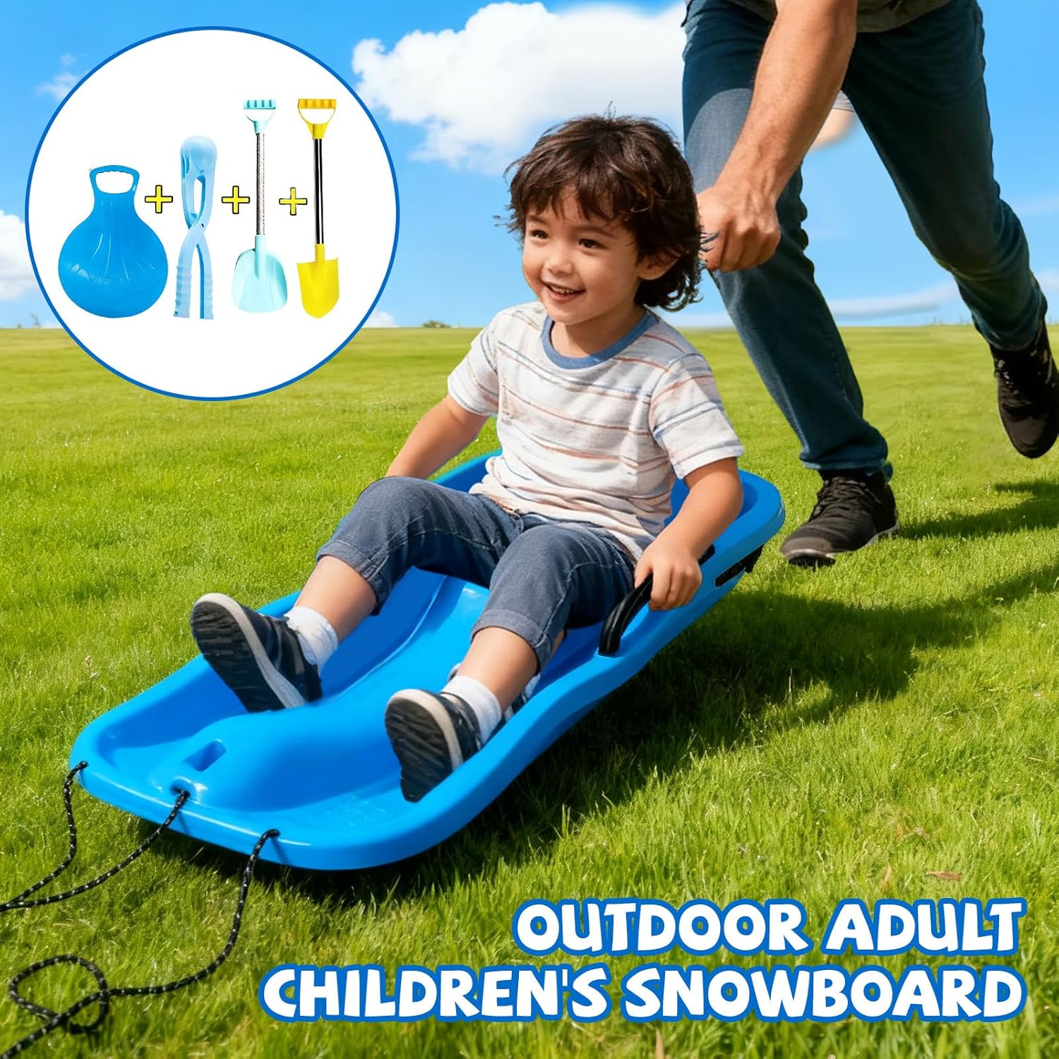 Esperienza versatile con lo slittino: lo slittino consente di scivolare dolcemente su neve, erba e sabbia, migliorando il divertimento all'aria aperta con emozionanti esperienze di velocità nei parchi o nelle spiagge, apprezzate da tutte le età e che ne evidenziano l'adattabilità e l'entusiasmo. Sicurezza e scorrevolezza migliorate: con bordi leggermente arrotondati, questa slitta con maniglia previene graffi e lesioni durante l'uso. Il fondo liscio garantisce un attrito minimo sulle superfici ghiacciate e un'esperienza di scivolamento fluida. Ciò lo rende affidabile e divertente per tutte le età in ambienti innevati e garantisce un divertimento sicuro sullo slittino. Tempo invernale in famiglia: dotate di corde durevoli e maniglie antiscivolo, le slitte da neve aumentano la sicurezza e consentono a genitori e bambini di costruire ricordi duraturi attraverso avventure invernali cooperative. Ciò rende il divertimento sulla neve un'esperienza speciale per tutta la famiglia e rafforza i legami attraverso attività condivise. Design portatile per il divertimento in famiglia: queste slitte per bambini presentano un design portatile accurato che si integra facilmente nel bagagliaio dell'auto, negli armadietti o nelle borse da campeggio in modo che le famiglie possano portarle ovunque. Il design leggero garantisce una facile maneggevolezza e arricchisce le esperienze dei viaggi invernali e dei picnic in campeggio. La combinazione di compattezza e leggerezza li rende un partner affidabile per semplici attività all'aperto. Stabilità di scivolamento migliorata: questi slittini per bambini e adulti hanno un design aerodinamico ben studiato con un bordo anteriore leggermente curvo verso l'alto, che migliora notevolmente la stabilità di scivolamento. Ciò significa che scivolano dolcemente e stabilmente lungo i pendii innevati senza ribaltarsi, rendendoli ideali per il divertimento sicuro in famiglia all'aperto durante le attività invernali sulla neve.