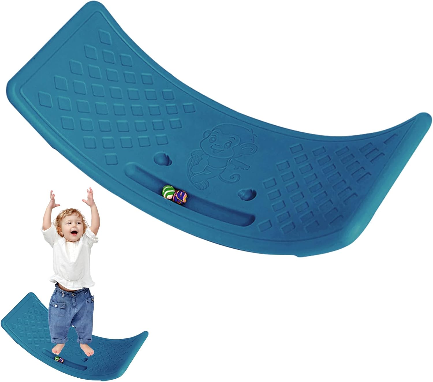 Non facile da deformare: utilizzando materiali PP di qualità affidabile, questa tavola oscillante vanta un'eccellente durata con proprietà impermeabili, inodore ed elastiche. È lavabile e resistente alla deformazione, fornisce grande stabilità per migliorare il regime di allenamento. Peso di carico elevato: guarda tuo figlio rafforzare la coordinazione e l'equilibrio con questa grande tavola di bilanciamento portante per bambini. Misura 53 x 25 cm, può supportare fino a 25 kg per la massima capacità di allenamento. Divertimento senza fine: la balance board oscillante offre un gioco coinvolgente per incoraggiare l'apprendimento di mentalità aperta e il gioco fantasioso per i bambini, migliorando al contempo le loro capacità di equilibrio e coordinazione. Uno strumento perfetto per l'apprendimento pratico e lo sviluppo di abitudini sane. Utile e funzionale: migliora il tuo allenamento di equilibrio con la nostra tavola oscillante, progettata con punti di massaggio antiscivolo per il massimo comfort durante gli esercizi. Bordi e angoli arrotondati, combinati con strisce antiscivolo, garantiscono un gioco e un allenamento sicuri per il tuo bambino. Divertimento versatile per tutti: sperimenta l'allenamento perfetto dell'equilibrio con questa versatile tavola oscillante. Perfetto per aule, case, asili, cortili o giardini, fornendo divertimento infinito e tempo di gioco per bambini e adulti.