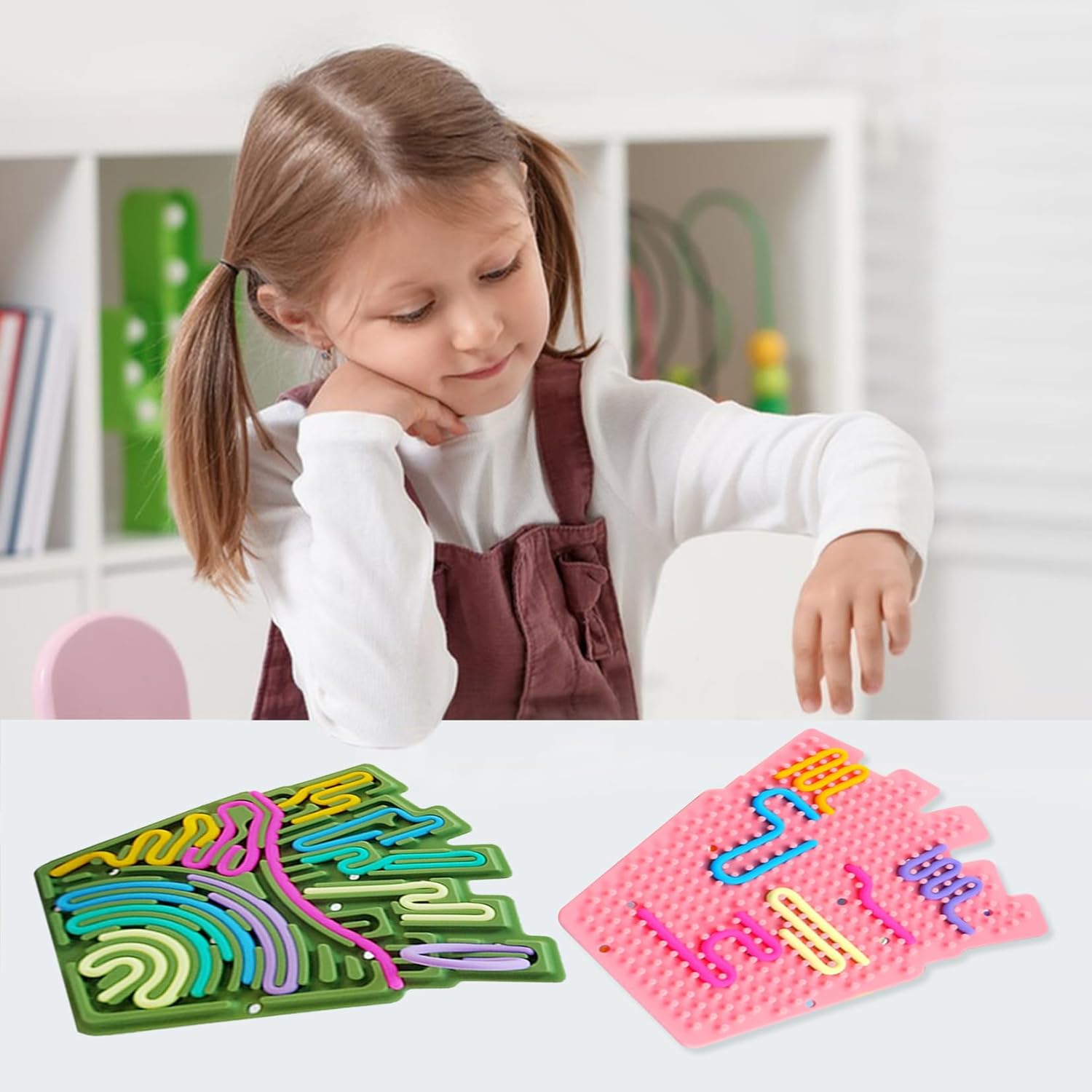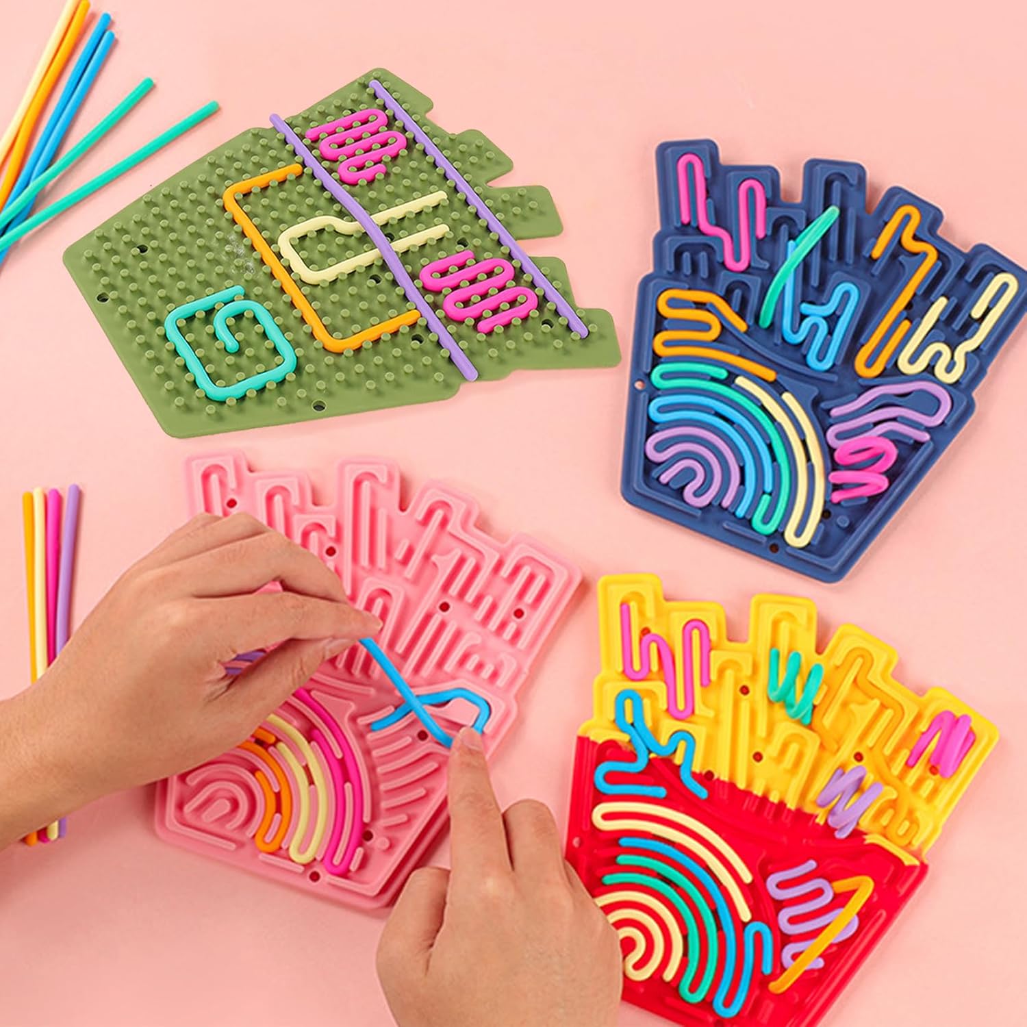 【Tavola di attività in silicone a doppia faccia】Tavola di fidget sensoriale in silicone contiene una tavola a forma di orsetto e 20 strisce di silicone. La tavola in silicone ha disegni diversi su entrambi i lati che invitano a giocare. I bordi sono lisci e senza sbavature, morbidi, resistenti e piacevoli al tatto. È anche lavabile. Le strisce di silicone sono colorate ed elastiche. La varietà di colori attira l'attenzione dei bambini. Il tocco confortevole rende i bambini incapaci di resistere 【Strumento di riduzione dello stress】Vagna per attività sensoriali è facile da montare e smontare e aiuta a ridurre lo stress e l'ansia causati dall'uso prolungato di smartphone o computer. Perfetto per i bambini che hanno bisogno di attività tranquille. Adatto anche agli adulti per rilassarsi. Adatto a tutte le età, dai bambini in età prescolare agli anziani 【Facile da usare】Gioco di attività del pannello sensoriale Push Peel offre una varietà di opzioni di gioco, come spingere, tirare, costruire ponti e annodare, stimolando l'immaginazione dei bambini, migliorando le loro abilità pratiche e promuovendo la coordinazione occhio-mano. Fornisce un eccellente allenamento per i sensi come il tatto, la vista, l'udito, l'equilibrio e la consapevolezza spaziale. I giocattoli sensoriali contribuiscono a stimolare la nostra curiosità e creatività 【Aumenta la concentrazione】La tavola per attività sensoriali in silicone con scanalature, protuberanze e rientranze fornisce una stimolazione tattile soddisfacente che può alleviare l'ansia e l'irrequietezza. Se siete ansiosi in ufficio, nervosi prima di un esame o non riuscite a dormire, provare la sensory fidget board può aiutarvi a calmare la mente e a concentrarvi sui vostri compiti, portando potenzialmente a risultati positivi 【Ampio spettro di applicazione】Tavola sensoriale può catturare l'attenzione dei bambini e farli concentrare sul gioco. La tavola sensoriale silenziosa offre un'esperienza calma e rilassante durante i viaggi, a casa o durante lo studio, sia in auto, in aereo, al ristorante, in campeggio, a scuola o in ufficio, e aiuta i bambini a rimanere calmi durante i loro viaggi. Libera le mani dei genitori che possono leggere e rilassarsi in tutta tranquillità