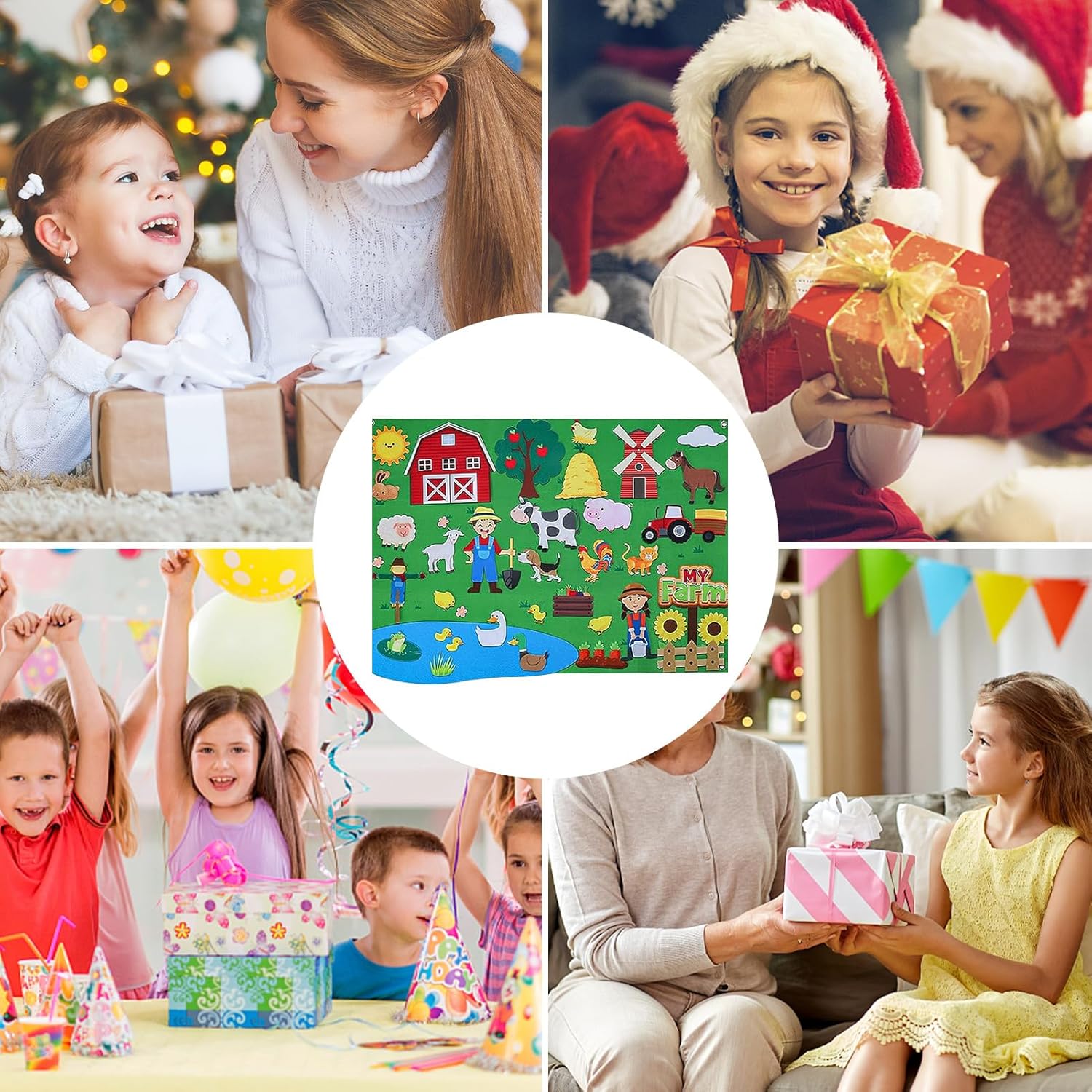 Migliora la tua narrazione ovunque: con questo set di storie in feltro realizzato in feltro di flanella di alta qualità, puoi sospenderlo come sfondo o usarlo come tappetino giocattolo sul pavimento. Il suo spessore e la struttura lo rendono adatto per incollare pezzi di feltro sul pannello adesivo della fattoria. Catalizzatore di apprendimento: consentendo ai bambini di creare le proprie storie e scene, i nostri set di storie in feltro migliorano le capacità cognitive, la pazienza e la concentrazione. Questo prodotto stimola l'immaginazione e la creatività, incoraggiando i bambini a pensare fuori dagli schemi. Migliora le capacità di apprendimento: questo set di storie in feltro è un giocattolo didattico che aiuta i bambini ad ampliare la loro conoscenza di diversi argomenti scolastici, come matematica, scienze, storia e altro ancora. È adatto per l'insegnamento in età prescolare e può essere utilizzato come fantastico gioco e didattico in classe o a casa. Narrazione per famiglie: questo set di storie in feltro promuove il familiare con più scenari per l'espressione artistica. Interagisci giocosamente mentre crei una fattoria con diversi animali e scenari. Affina la creatività dei bambini e lascia che creino storie stimolanti. Ottimo come regalo: stimola la creatività e l'immaginazione di tuo figlio con i set di storie in feltro. Un regalo commovente per i bambini in occasioni speciali come compleanni, Halloween, Natale, Capodanno o anche il Giorno del Ringraziamento. Incoraggiateli a raccontare le proprie storie e a sviluppare abilità narrative con vivaci pezzi di feltro.