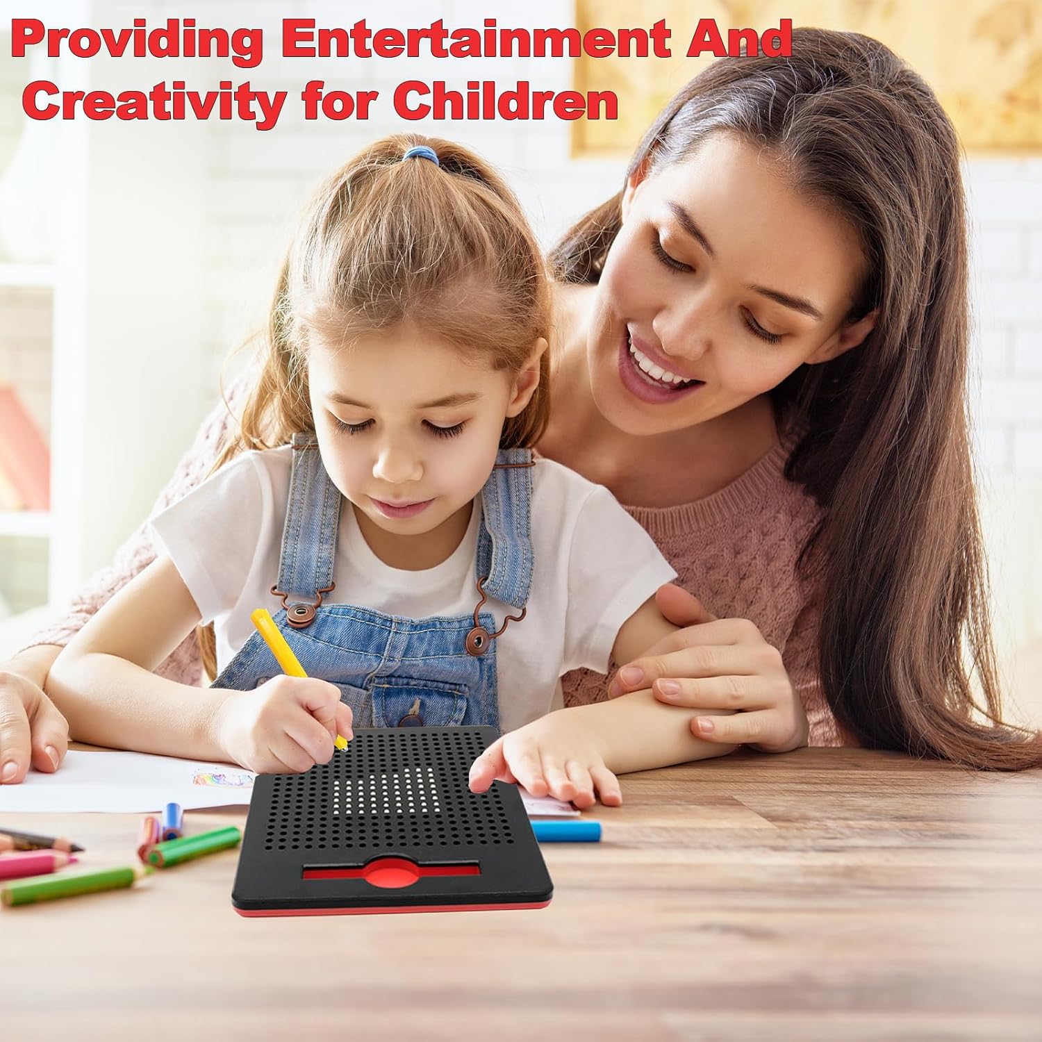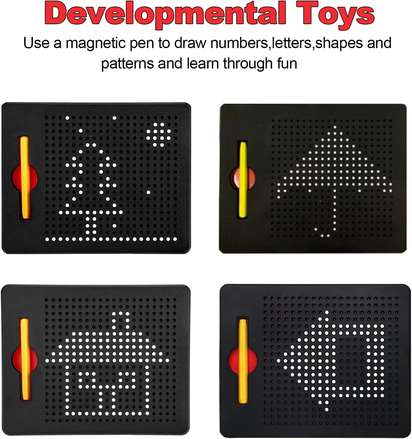 Materiale di alta qualità: la tavola da disegno magnetica per bambini realizzata in materiale ABS di alta qualità, sicuro e atossico e sfere magnetiche, che è forte, durevole e resistente all'usura, tenendo pienamente conto della sicurezza dei bambini. Le sfere magnetiche possono aderire saldamente alla lavagna magica, non cadono facilmente. Facile da usare: la punta della penna magnetica tira delicatamente la sfera magnetica per disegnare modelli, numeri e lettere a piacimento. Tirare la sfera magnetica sulla superficie con una penna e cancellarla toccando la sfera d'acciaio con la mano. Per rilasciarlo, basta premere verso il basso con il lato della penna. Gioco educativo ideale: la coordinazione delle mani e il pensiero logico, migliora la concentrazione e la pazienza dei bambini. adatto per bambini e studenti dell'asilo o in età prescolare. Sviluppare la coordinazione occhio-mano, allenare l'immaginazione e la capacità di pensiero dei bambini e migliorare la loro concentrazione e pazienza. Design unico: aiuta i bambini a sviluppare la coordinazione occhio-mano, le capacità motorie, la regolazione della forma, il riconoscimento del colore, il pensiero logico precoce e migliorare la loro concentrazione e pazienza. Guida i bambini a esplorare il loro potenziale artistico, stimola l'immaginazione e la creatività senza limiti e condivide la gioia dell'apprendimento con risate e risate. Regalo premuroso: lavagna magnetica ideale per bambini per famiglie e viaggi. Questo giocattolo magnetico è il regalo perfetto per i bambini, perfetto come giocattolo educativo per la festa dei bambini, Natale, compleanni, Ringraziamento, ecc. Lontano dagli schermi elettronici, offre ore di divertimento e allo stesso tempo incoraggia lo sviluppo.