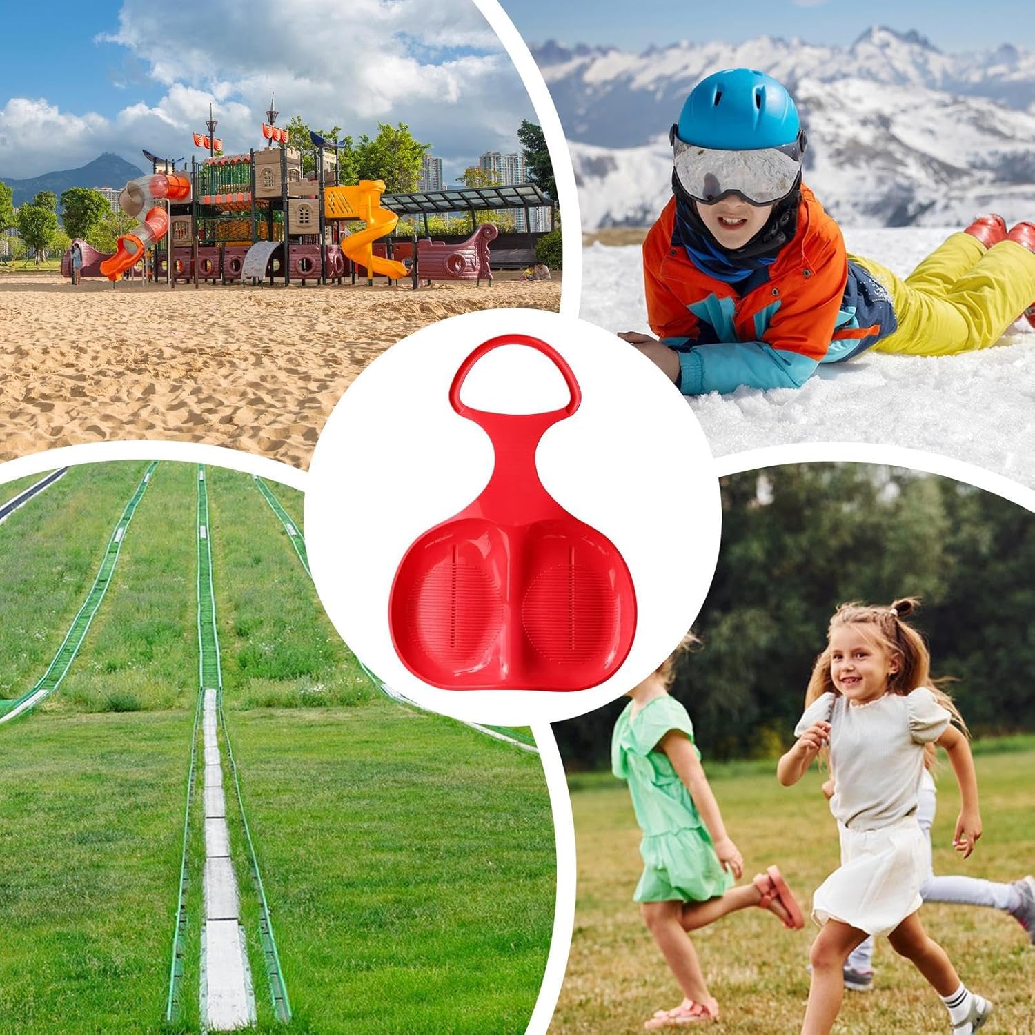 Durata resistente all'usura: realizzata con materiali robusti e ad alta resistenza, questa slitta da snowboard aumenta l'attrito e impedisce lo scivolamento per la massima stabilità e sicurezza in ogni corsa emozionante. Ampiamente utilizzata: ideale per sabbia, neve e frane, soddisfa le esigenze di intrattenimento in diverse stagioni e in diversi ambienti, garantendo maggiori possibilità di utilizzo Avventura di sicurezza: con la presa ottimale e l'impugnatura ergonomica della nostra slitta, i bambini possono guidare l'auto da corsa sulla neve con sicurezza. Le caratteristiche di sicurezza includono una maniglia integrata che fornisce una guida sicura e confortevole. Colore accattivante: ravviva le attività all'aperto dei tuoi bambini in inverno con la nostra slitta da snowboard. I colori vivaci e il design carino lo rendono facile da individuare in grandi aree coperte di bianco, attirano l'attenzione dei bambini e aumentano il divertimento. Promuovi l'unione familiare: questa slitta è adatta per emozionanti attività familiari e promuove la relazione genitore-figlio mentre tutti si godono insieme il brivido degli sport all'aria aperta