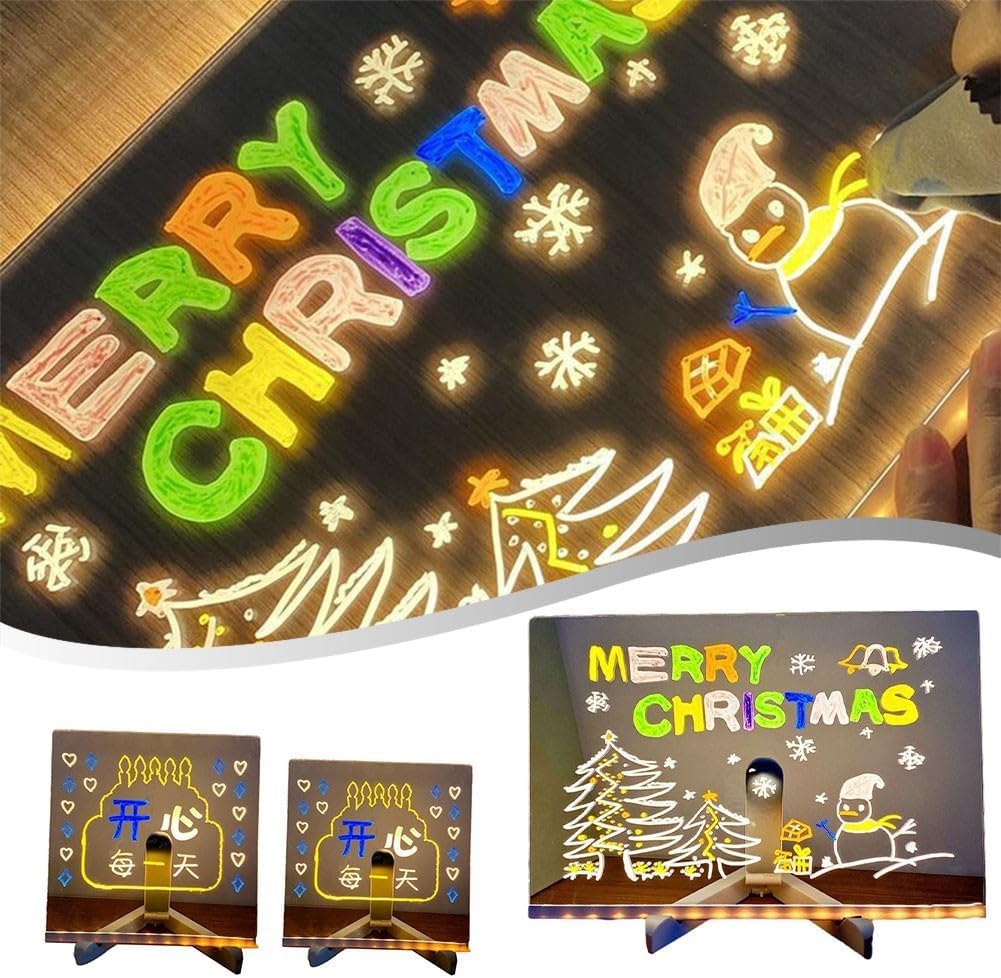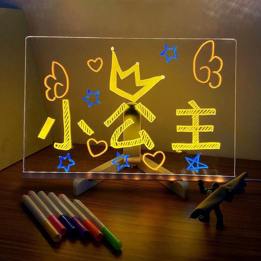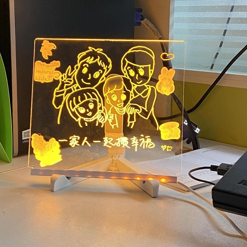 Cancellabile e luminosa: questa lavagna da scrivania è realizzata con materiali, durata e praticità. Può essere facilmente cancellato e utilizzato ripetutamente. Inoltre, è dotato di una funzione luminosa che illumina l'intero tavolo da disegno, rendendolo uno strumento perfetto per l'uso notturno. Portatile e compatta: con dimensioni di 15 x 15 cm, 20 x 20 cm e 30 x 20 cm, questa lavagna è portatile e può essere comodamente portata in giro. È leggero e compatto, il che lo rende adatto per i viaggi e l'uso in movimento. Penna e supporto inclusi: la confezione include una lavagna, 7 penne colorate e un supporto. La penna inclusa consente agli utenti di disegnare e scrivere sulla lavagna senza sforzo. Il supporto fornisce un supporto stabile per la tavola durante l'uso. Pratica e versatile: questa lavagna acrilica offre infinite possibilità di creatività. È per bambini e adulti, consentendo loro di esprimere il loro talento artistico. Che si tratti di disegnare, scrivere o scarabocchiare, questa lavagna è una scelta eccellente.