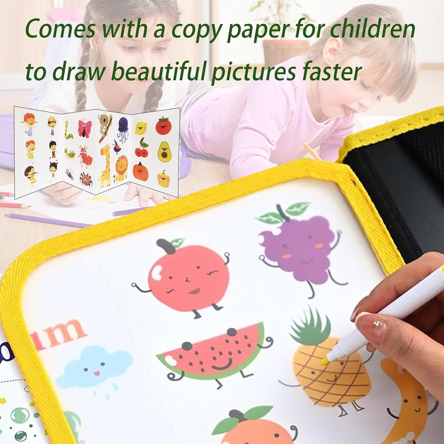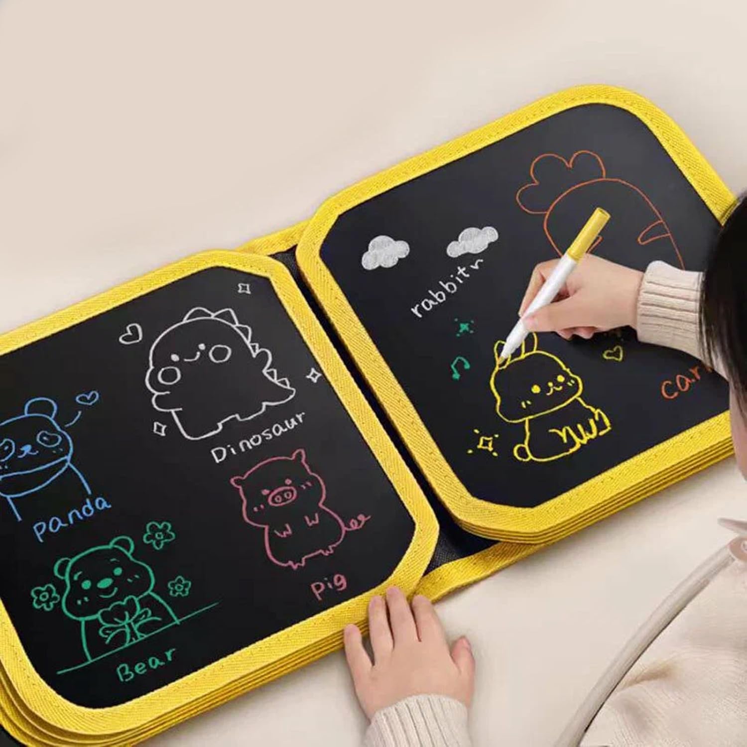 Materiali di alta qualità: questo libro da colorare cancellabile per bambini è realizzato in plastica di alta qualità. Robusto e durevole, resiste agli scarabocchi, ai disegni, alle sfogliature e ad altre manipolazioni quotidiane dei bambini e non si danneggia facilmente. Rigorosamente testato, questo quaderno con tavoletta grafica per bambini è privo di sostanze nocive. I vostri bambini potranno quindi utilizzarlo in tutta sicurezza. Riutilizzabile: questo quaderno per tablet per bambini è cancellabile e gli scarabocchi si cancellano facilmente, consentendo ai bambini di continuare a scarabocchiare, disegnare e modificare i propri lavori. Non solo risparmia carta, ma incoraggia anche i bambini a sviluppare la loro creatività e le loro idee sul quaderno da disegno per bambini. Leggero e portatile: questo quaderno da disegno per bambini è leggero e di medie dimensioni, il che lo rende facile da trasportare. A casa, in viaggio o al ristorante, i bambini possono portarlo con sé per scarabocchiare e creare. Questo libro da disegno per bambini può essere utilizzato in qualsiasi momento e in tutte le occasioni. Giocattoli educativi per bambini: questo giocattolo riutilizzabile per libri da colorare presenta un modello adorabile che incoraggia i bambini a disegnare e progettare, stimolando la loro creatività e la coordinazione mano-cervello. Questo giocattolo tablet da disegno per bambini non è solo un prodotto di intrattenimento, ma può anche sviluppare l'intelligenza e le capacità artistiche dei bambini. Un regalo ideale: questa lavagna cancellabile per bambini è un regalo ideale per i bambini. La sua estetica raffinata, i colori ricchi e le caratteristiche pratiche delizieranno i bambini. Che sia per un compleanno o per qualsiasi altra occasione speciale, regalare questo tablet giocattolo cancellabile per bambini è un regalo pratico ed educativo.