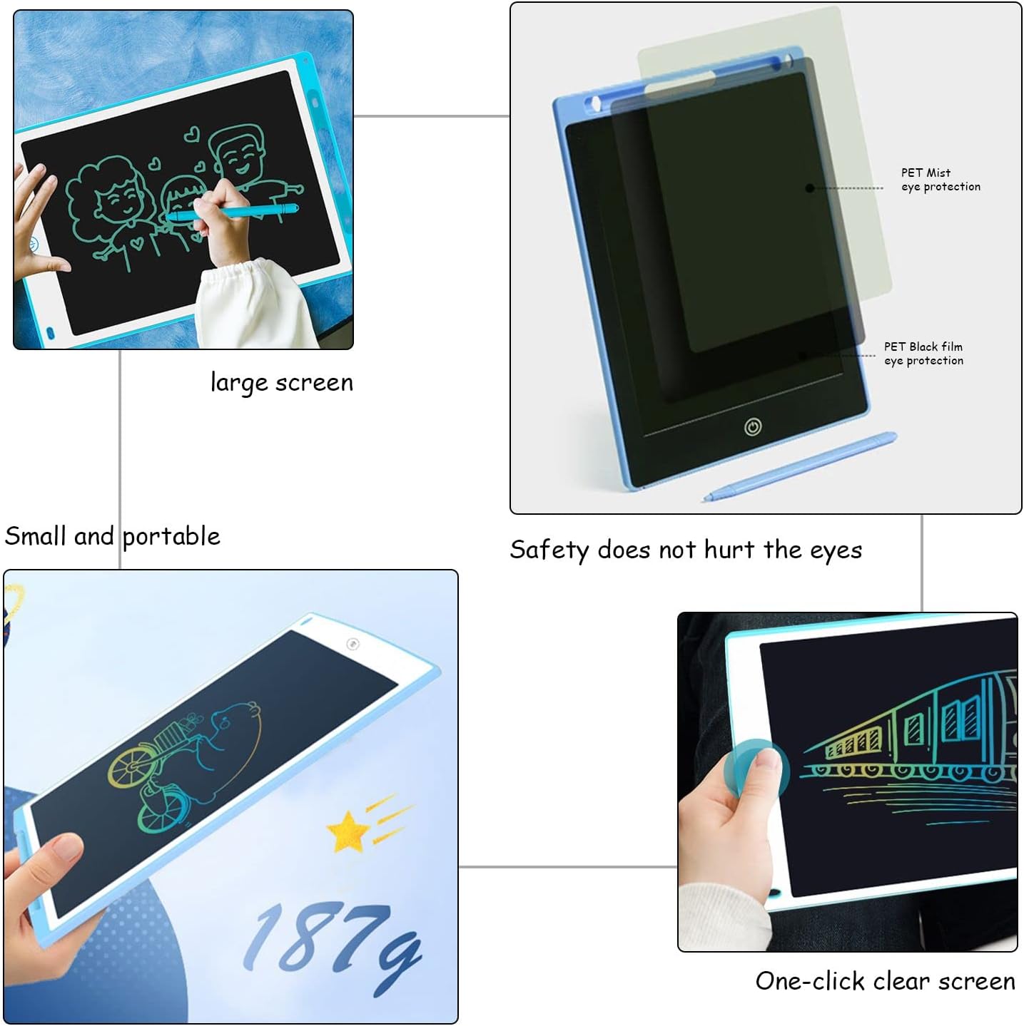 Protezione ambientale: rispetto alla tradizionale verniciatura su carta, il pannello LCD è ecologico e riutilizzabile. Evita carta straccia, contaminazione della vernice, danni chimici alla pelle, polvere di lavagna inalata nei polmoni e graffiti su nuove case e mobili. ️ 【Economico e pratico】: batteria a bottone integrata, alimentazione a lunga durata, batteria sostituibile, può essere utilizzata in modo efficiente e continuo, aiutandoti a risparmiare costi aggiuntivi. Facile da usare: utilizzando la tecnologia della pellicola a cristalli liquidi, i tratti rispondono rapidamente e la scrittura è fluida. Display sensibile alla pressione di alta qualità con spessore di scrittura variabile. Schermo grande, schermo con un clic, note chiare e chiaramente visibili. La parte posteriore è dotata di lucchetto antieffrazione, chiudibile con chiave per la custodia dei quadri. Protezione degli occhi: il tavolo da disegno LCD adotta la tecnologia sensibile alla pressione, nessuna radiazione, nessun riflesso. Lo schermo LCD flessibile a basso consumo protegge la vista, la scrittura è colorata ed è sicura e comoda da usare a lungo. Leggero e portatile: il tavolo da disegno è realizzato in materiale ABS antigoccia, impermeabile e antigoccia, leggero e facile da trasportare, facile da riporre in borse da viaggio e zaini da scuola. Ottimo giocattolo da viaggio per i più piccoli. È adatto a varie occasioni come soggiorno, auto, aereo, attività all'aperto e così via.