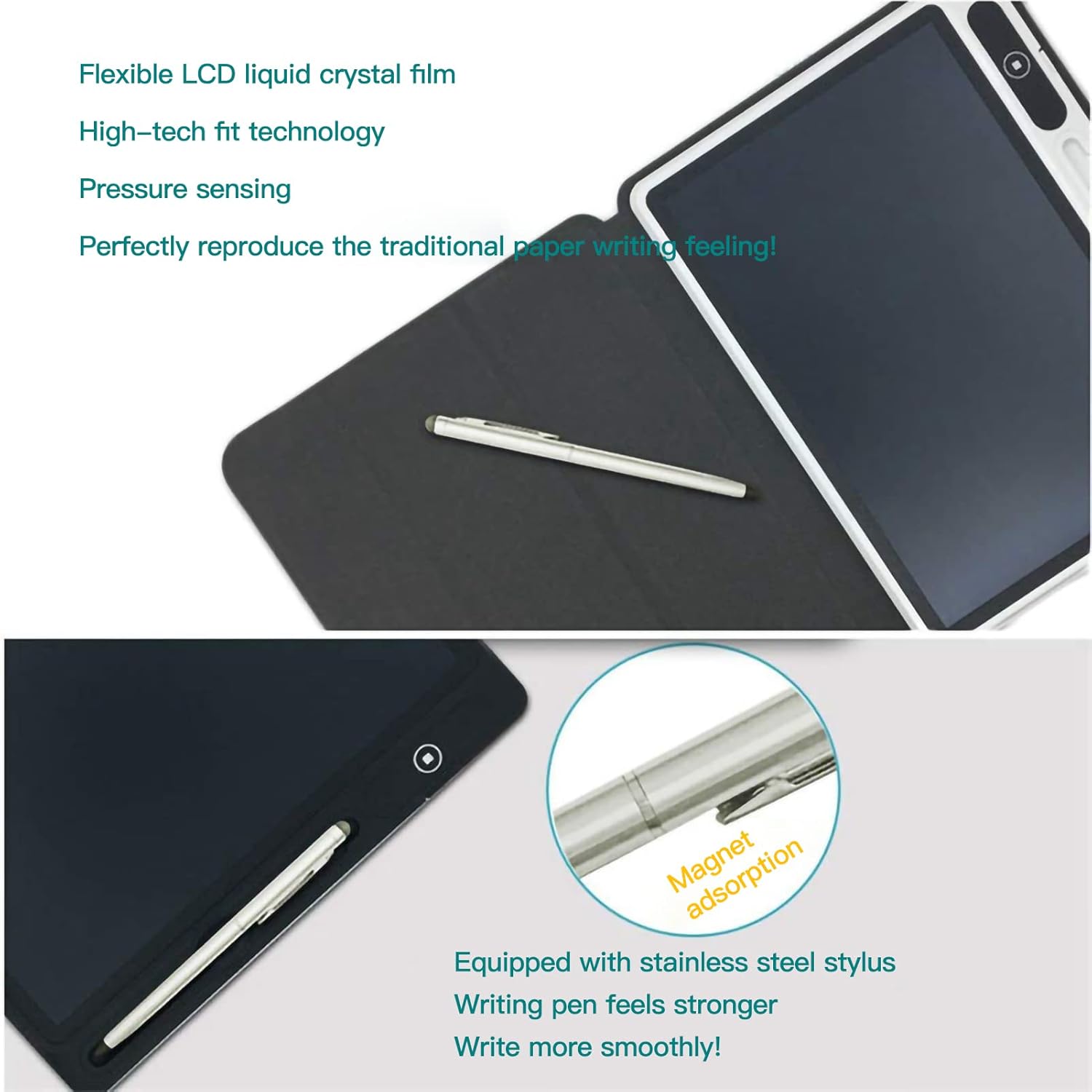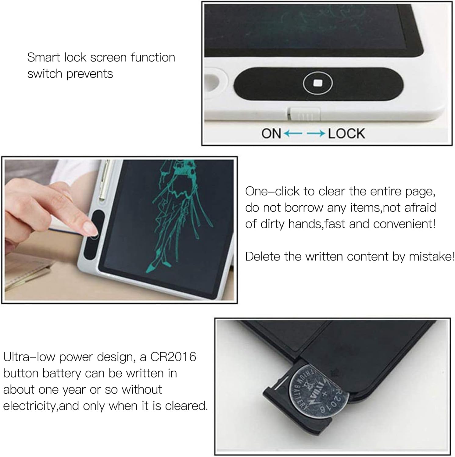 ☞Colore protetto dagli occhi: la tavoletta grafica LCD adotta la più recente tecnologia LCD sensibile alla pressione e dispone di un ampio schermo LCD da 10,1 pollici per una facile visualizzazione. Nessuna radiazione e nessun riflesso, i loro occhi sono sicuri e confortevoli. ☞ Miglior assistente aziendale: spazio di scrittura leggero ma ampio adatto agli uomini d'affari per scrivere ulteriori informazioni. Inoltre, utilizzalo con un'applicazione che può influire notevolmente sull'efficienza del tuo lavoro, riducendo l'ufficio senza carta. ☞ Ecologico e durevole: la batteria del blocco note LCD può funzionare per circa 12 mesi (batteria a bottone inclusa). E la tavoletta può essere riutilizzata 100.000 volte e la penna magnetica può essere attaccata saldamente al lato della tavoletta, senza preoccuparsi di perderla. ☞ Facile da usare: scrivere e disegnare sul tablet è come scrivere e disegnare su carta. Crea linee di diverso spessore a seconda della forza con cui spingi. Puoi cancellare tutti i personaggi e i motivi premendo il pulsante di cancellazione su questi giocattoli per ragazzi e ragazze. Puoi anche bloccare il pulsante di cancellazione e mantenere il motivo sul blocco note. Lo sblocco del pulsante di cancellazione cancella sempre il pattern. ☞ I migliori giocattoli per ragazze e ragazzi: la tavoletta LCD può essere utilizzata come tavolo da disegno, blocco note, taccuino riutilizzabile, lavagna per ufficio, tavolo da disegno, supporto grafico, lavagna per bambini, tavola per scarabocchi, ecc.