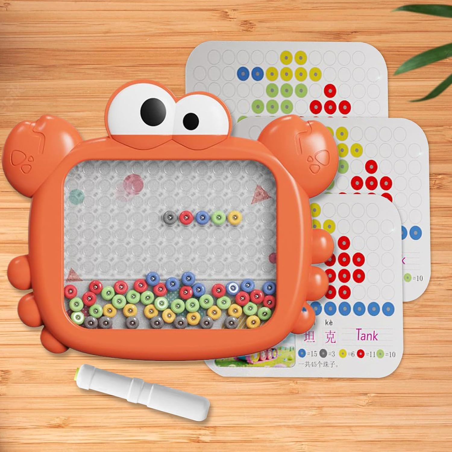 Ispirazione tema animaletti: Con un design adorabile a tema animali domestici, questa lavagna magnetica assicura una presa confortevole e bordi arrotondati lisci, promuovendo l'esplorazione creativa attraverso i vivaci colori brillanti per il gioco educativo Risorsa didattica dinamica: Stimola l'esplorazione di forme, colori e modelli, insieme ad attività di abbinamento numerico, per affinare le tecniche di ordinamento cromatico e rafforzare la coordinazione mano-cervello attraverso un gioco interattivo e coinvolgente Maggiore Libertà di Design: Grazie alle 89 caselle da disegno, questa lavagna magnetica assicura un ampio spazio creativo per gioco di immaginazione illimitato, stimolando creatività artistica per costruire disegni complessi senza sforzo e con fluidità Compartimento Integrato Innovativo: Questa lavagna magnetica include un vano di riporlo integrato che mantiene la penna magnetica al sicuro, favorisce lo sviluppo di capacità organizzative nei bambini ed evita la perdita degli durante l'utilizzo o il trasporto, garantendo ordine e praticità. Miglior controllo della mano: I magneti integrati affidabili mantengono le perline saldamente in posizione, migliorando la coordinazione manuale e consentendo esplorazione creativa ininterrotta per ore di divertimento avvincente