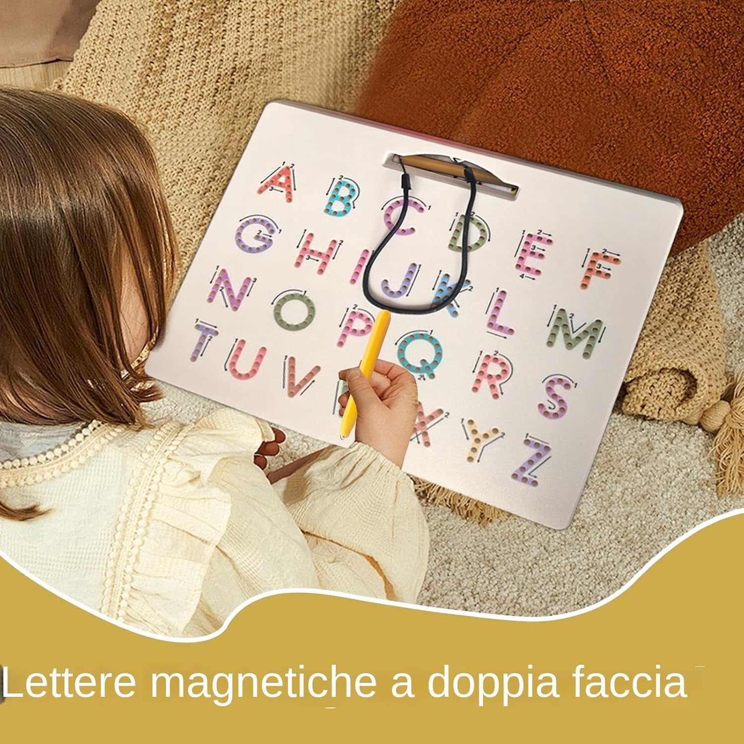 Divertimento con Tracciati Magnetici: Fonde magneti e esercizi di tracciamento per favorire l'esplorazione attiva, rendendo piacevole l'apprendimento e trasformando momenti educativi in attività ricreative. Apprendimento Progressivo: Design a doppia faccia che migliora la pratica di scrittura insegnando la corretta formazione delle lettere. La penna magnetica aiuta a sviluppare naturalmente la memoria muscolare, favorendo risultati di apprendimento ottimizzati nel . Strumento Modernizzato: La penna magnetica si attacca comodamente alla lavagna, stimola la pratica della scrittura, offre accesso rapido e organizzazione senza sforzo quando serve. Regalo Stimolante:Pensato per le tappe di apprendimento, fonde divertimento e utilità supportando lo sviluppo cognitivo tramite interazioni giocose con la lavagna alfabetica. Sicurezza Ottimale: Bordi arrotondati e materiali resilienti proteggono le mani dei bambini, mantenendo la forma perfetta della lavagna magnetica nonostante l'uso continuativo nel .