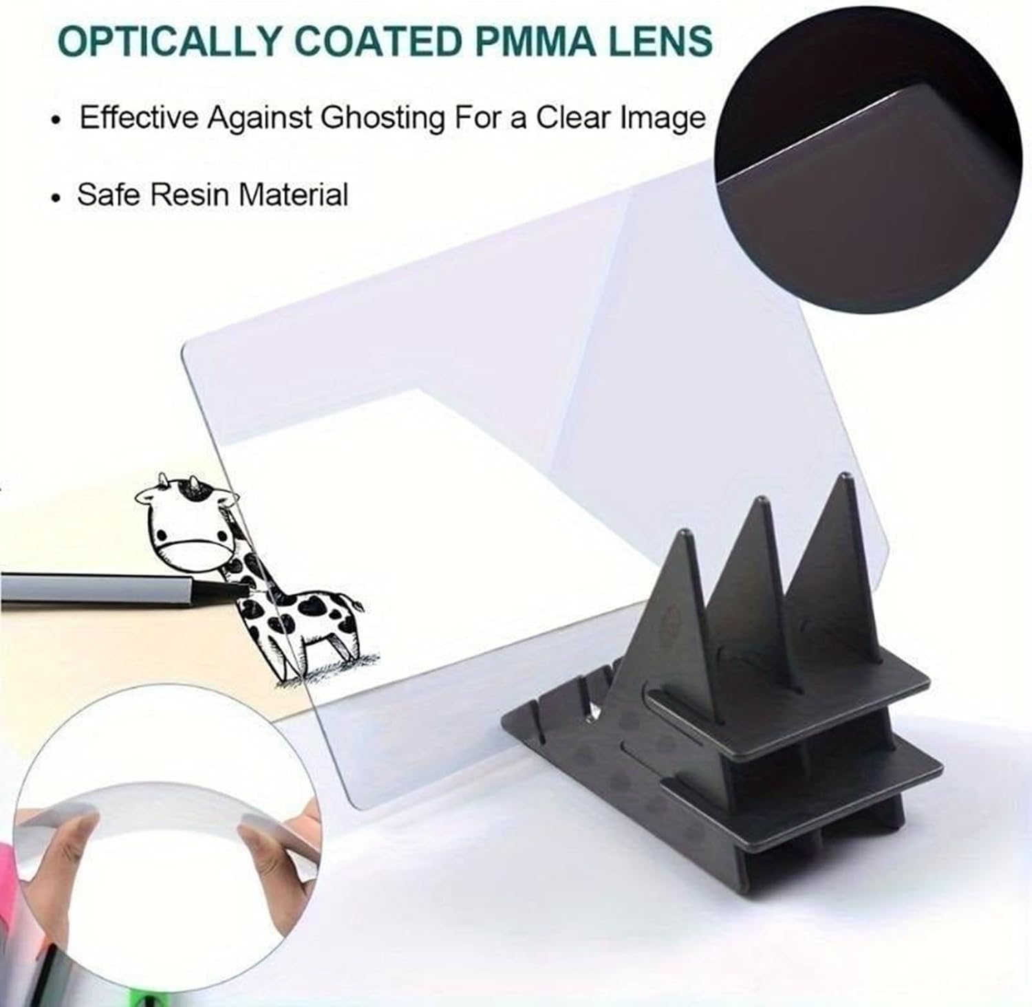 Soluzione Ottimizzata: Proiezione diretta e senza distorsioni grazie al di rifrazione ottica, supporto preciso per il ricalco che semplifica la creatività eliminando procedure di calibrazione. Adattabilità Totale: Supporto innovativo pieghevole con doppia modalità e angoli personalizzabili assicura il fissaggio stabile di telefoni e tablet supportando sia l'orientamento orizzontale che verticale per una esperienza utente flessibile Soluzione Immagini Adattabile: Tecnologia di riflessione adatta a principianti ed esperti, converte immagini digitali in contorni nitidi che aumentano precisione di ricalco e migliorano naturalmente la riproduzione artistica per ogni abilità. Struttura Resiliente: Grazie al pannello in PVC che conserva la forma evitando deformazioni e alla robusta cornice in ABS , assicura stabilità duratura durante l'uso regolare. Configurazione immediata: Nessuna installazione di app richiesta, funzionamento plug-and-play intuitivo per ogni fascia d'età, creatività senza limiti con setup in pochi secondi.