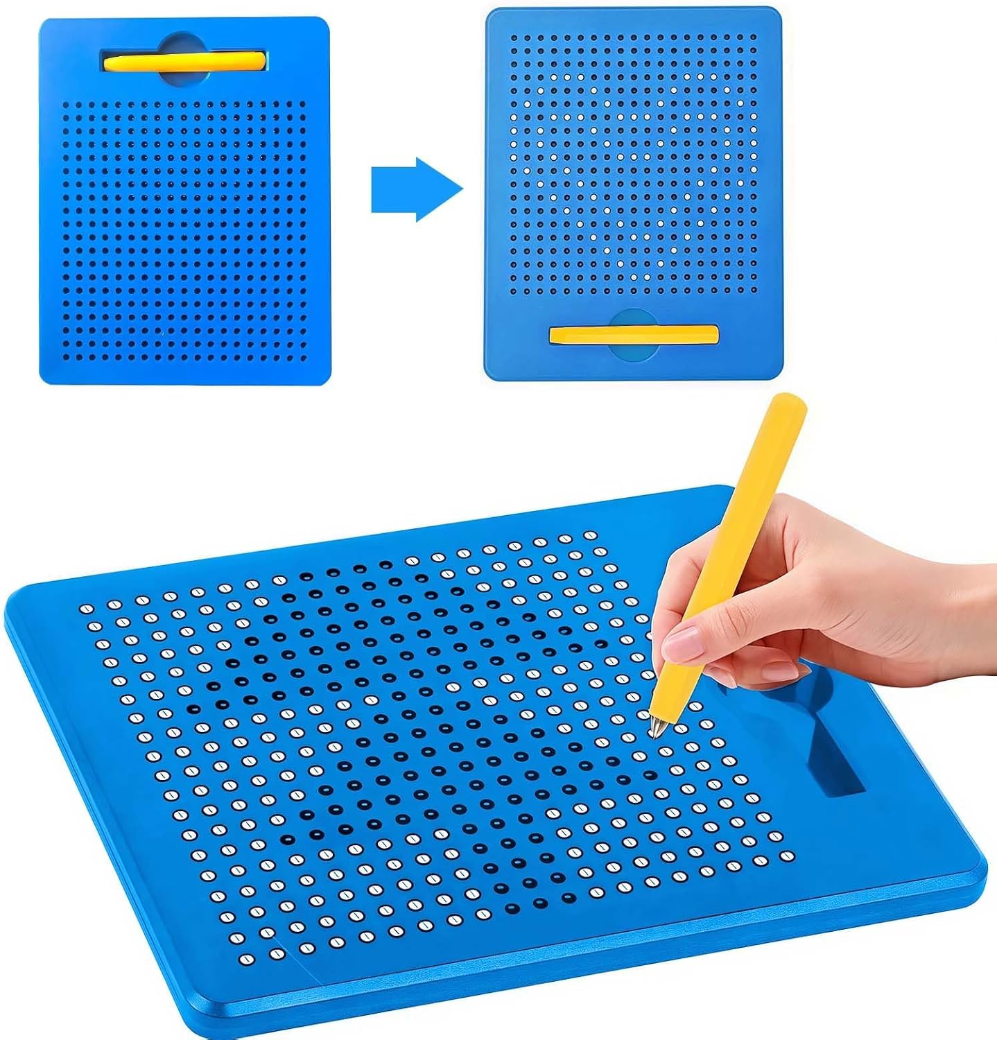 【Giocattolo educativo educativo per menti creative】 Questo innovativo tavolo da disegno magnetico è più di un semplice gioco. Come giocattolo educativo interattivo, promuove specificamente le capacità motorie e la coordinazione occhio-mano del tuo bambino. Ideale per imparare lettere, numeri e schemi in modo divertente e per sviluppare la creatività. 【Design sicuro e robusto】La sicurezza prima di tutto! Questo gioco magnetico per bambini è realizzato in plastica ABS atossica di alta qualità. Ogni sfera magnetica in acciaio è resistente e sigillata saldamente nell'alloggiamento, quindi non c'è rischio di ingestione. La costruzione duratura resiste anche ai giochi pesanti. 【Creatività senza fine】 Questa tavola da pittura per bambini è completamente risolvibile e riutilizzabile all'infinito. Basta premere le palline con il dito o con il lato della penna e ricominciare. La tavola da pittura magnetica consente di risparmiare carta e penne e garantisce un divertimento pulito e senza sporco. 【Ideale per i viaggi】 Grazie alla sua struttura compatta e leggera, questo gioco magnetico è il compagno di viaggio perfetto. In macchina, in aereo o al ristorante, offre ore di intrattenimento legato senza schermo e protegge così gli occhi del tuo bambino. Non mi annoio mai più mentre viaggio! 【Il regalo perfetto per i bambini】 Hai trovato un regalo speciale? La targa magnetica per bambini è la scelta ideale per compleanni, Natale o come souvenir. Unisce il divertimento al valore educativo e promuove l'interazione genitore-figlio. Un regalo che garantisce occhi luminosi.