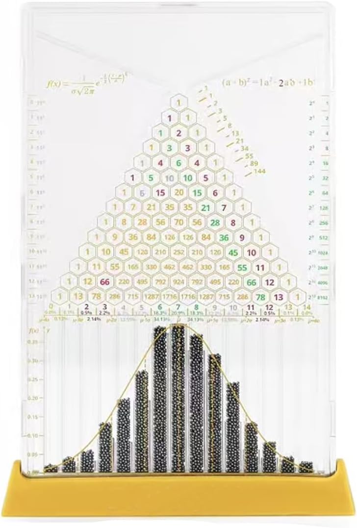 [Materiali di alta qualità] La piastra di Galton è realizzata con materiali di alta qualità, offrendo elevata stabilità e ripetibilità a lungo termine per l'uso in contesti educativi o personali. [Vantaggi] Facile da usare, non richiede alcuna configurazione. Ideale per dimostrazioni in classe e presentazioni didattiche, spiega concetti fisici complessi, stimola la curiosità e migliora i risultati di apprendimento. Rende i concetti statistici complessi accessibili e coinvolgenti. [Decorazione raffinata] Il design compatto ed elegante si adatta perfettamente a una scrivania o a piccoli spazi, rendendolo la scelta ideale per aule, uffici o ambienti di apprendimento domestico. È un regalo unico per gli appassionati di fisica, che unisce valore educativo e fascino estetico. [Come usare] Questo dispositivo dimostra in modo intuitivo il concetto statistico di distribuzione normale. Mentre la piastra di Galton ruota lungo il suo asse, le sfere d'acciaio rimbalzano a sinistra e a destra con la stessa probabilità. Osserva in tempo reale che formano una distribuzione normale. Questo esperimento pratico dimostra la casualità, le leggi della probabilità e il moto delle molecole di gas. [Modello sperimentale] Questo versatile dispositivo didattico combina l'insegnamento teorico con esperimenti pratici. Oltre all'apprendimento sui libri di testo, consente agli studenti di sperimentare in prima persona i fenomeni di probabilità attraverso attività sperimentali.