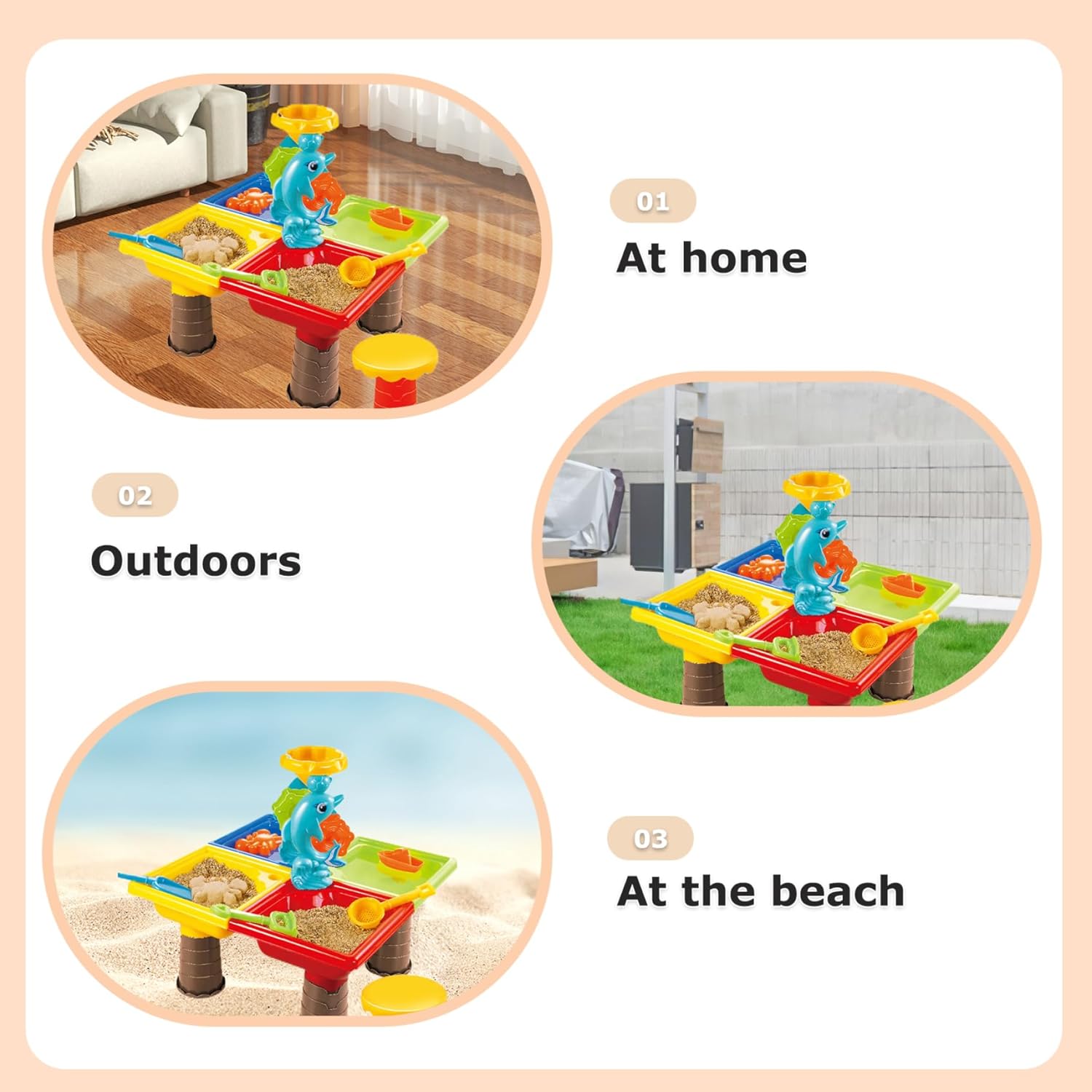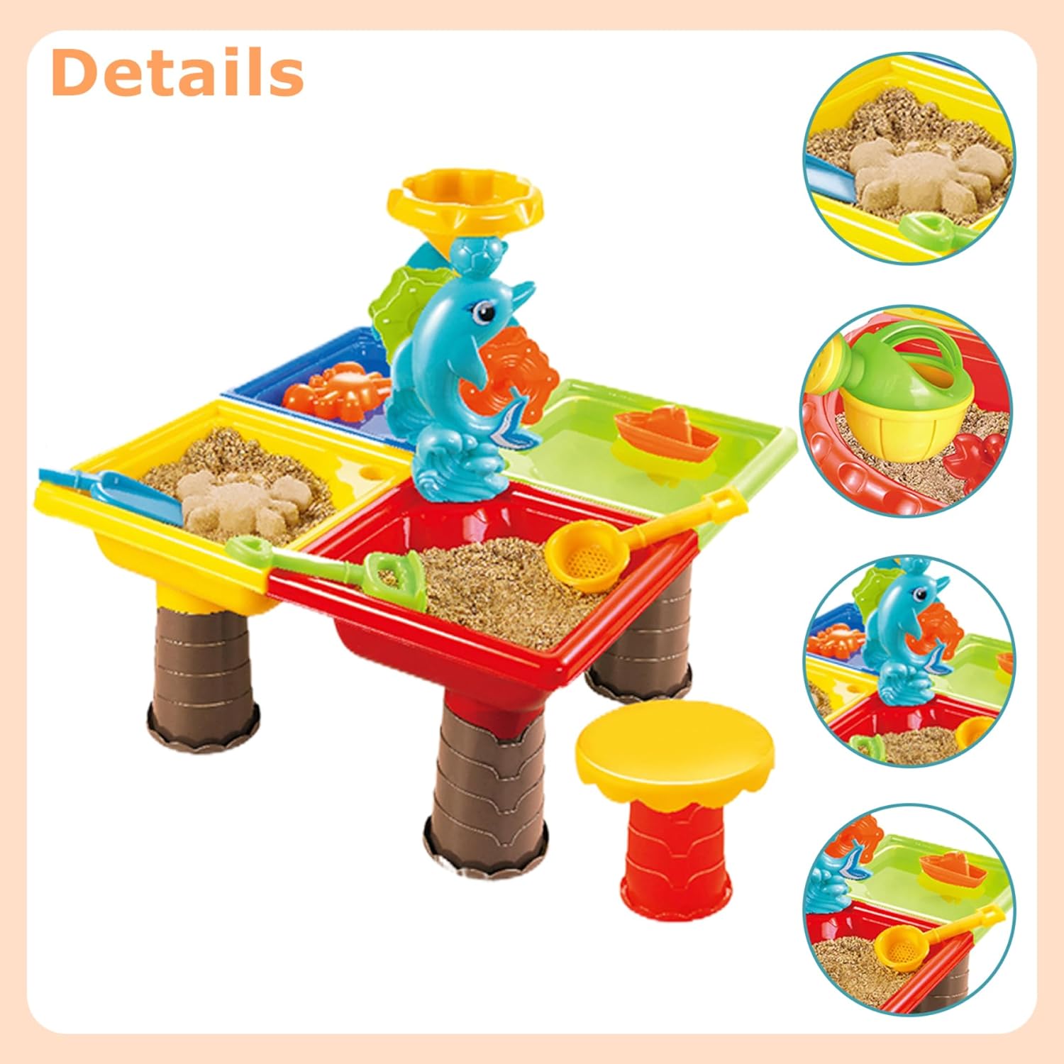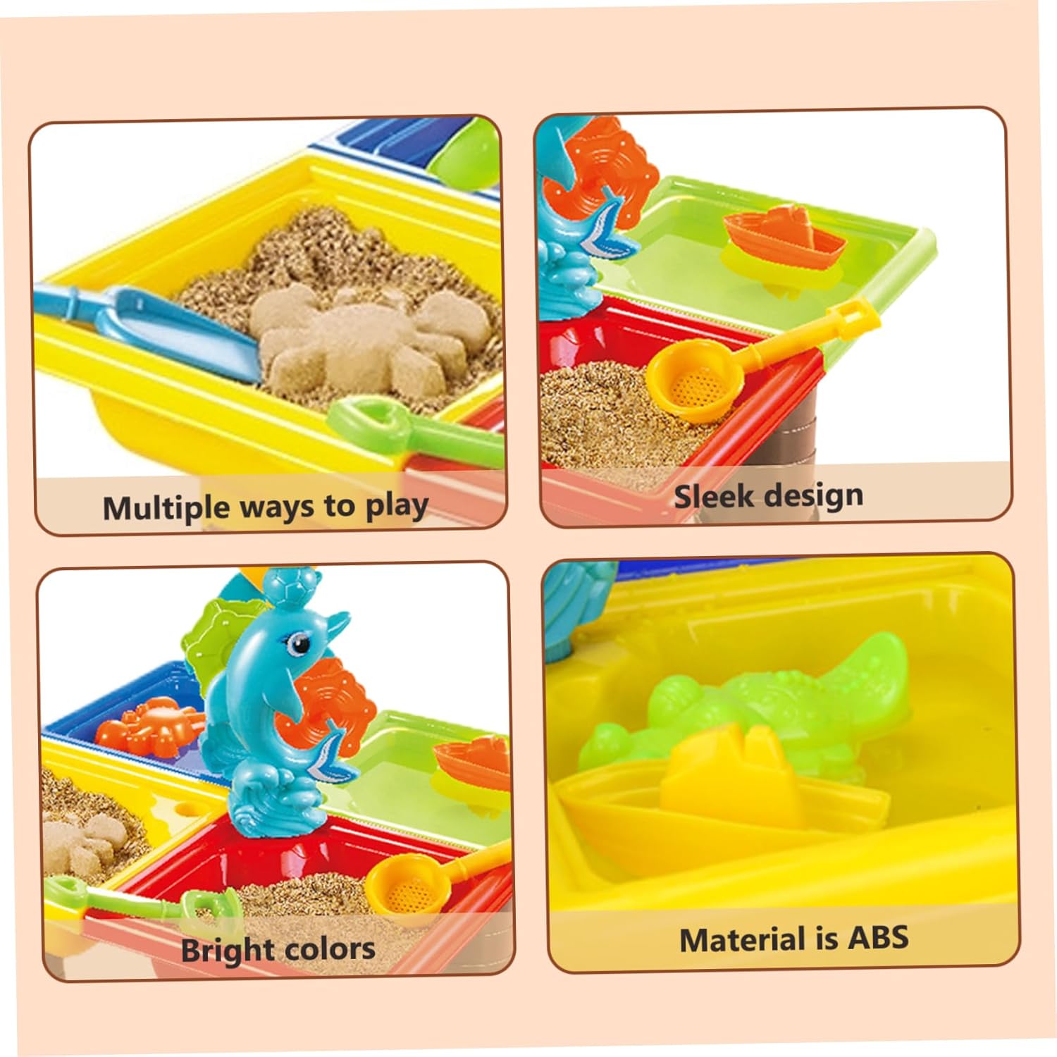 Sicurezza e comodità: la nostra falda freatica è progettata pensando alla sicurezza e alla comodità dei bambini. È realizzato in materiale ABS per garantire praticità e robustezza. La superficie è liscia e priva di sbavature per garantire che i bambini possano giocare senza danni o disagio. Confezione carina e grande: questo set da tavolo per l'acqua per bambini presenta disegni luminosi e colorati con adorabili personaggi dei cartoni animati. Viene fornito in un pacchetto grande che include vari accessori giocattolo come piccole sedie, stampi, palette, spruzzatori, secchi e mascelle a clessidra. Con una varietà di accessori, offre diversi modi di giocare per garantire un'elevata giocabilità e un divertimento senza fine per i più piccoli. Tavolo per l'acqua per bambini Design multiscomparto: il tavolo per l'acqua è dotato di più scomparti progettati, consentendo varie opzioni di gioco. giocare, giocare sulla sabbia e persino giocare sulla neve allo stesso tempo in inverno, offrendo un'esperienza di gioco più divertente e diversificata. Regalo ideale per tavolo con sabbia a specchio d'acqua: questo set di tavolo con acqua è un regalo eccellente per i bambini in occasioni speciali come compleanni o festa dei bambini. È adatto a vari ambienti di gioco, tra cui spiaggia, casa e aree esterne. Fornendo una gamma di opzioni di gioco, arricchisce il tempo libero dei bambini e riduce la loro dipendenza dai dispositivi elettronici. Tavolo con sabbia Tavolo con acqua e sabbia interattivo e genitore-figlio: questo tavolo con sabbia serve come un eccellente giocattolo interattivo e genitore-figlio, che consente ai bambini di giocare e rilassarsi felicemente con amici o genitori. Le diverse opzioni di gioco supportano l'immaginazione, migliorano le capacità motorie, la coordinazione occhio-mano e la concentrazione nei bambini. Tavolo sensoriale dell'acqua e tavolo della sabbia