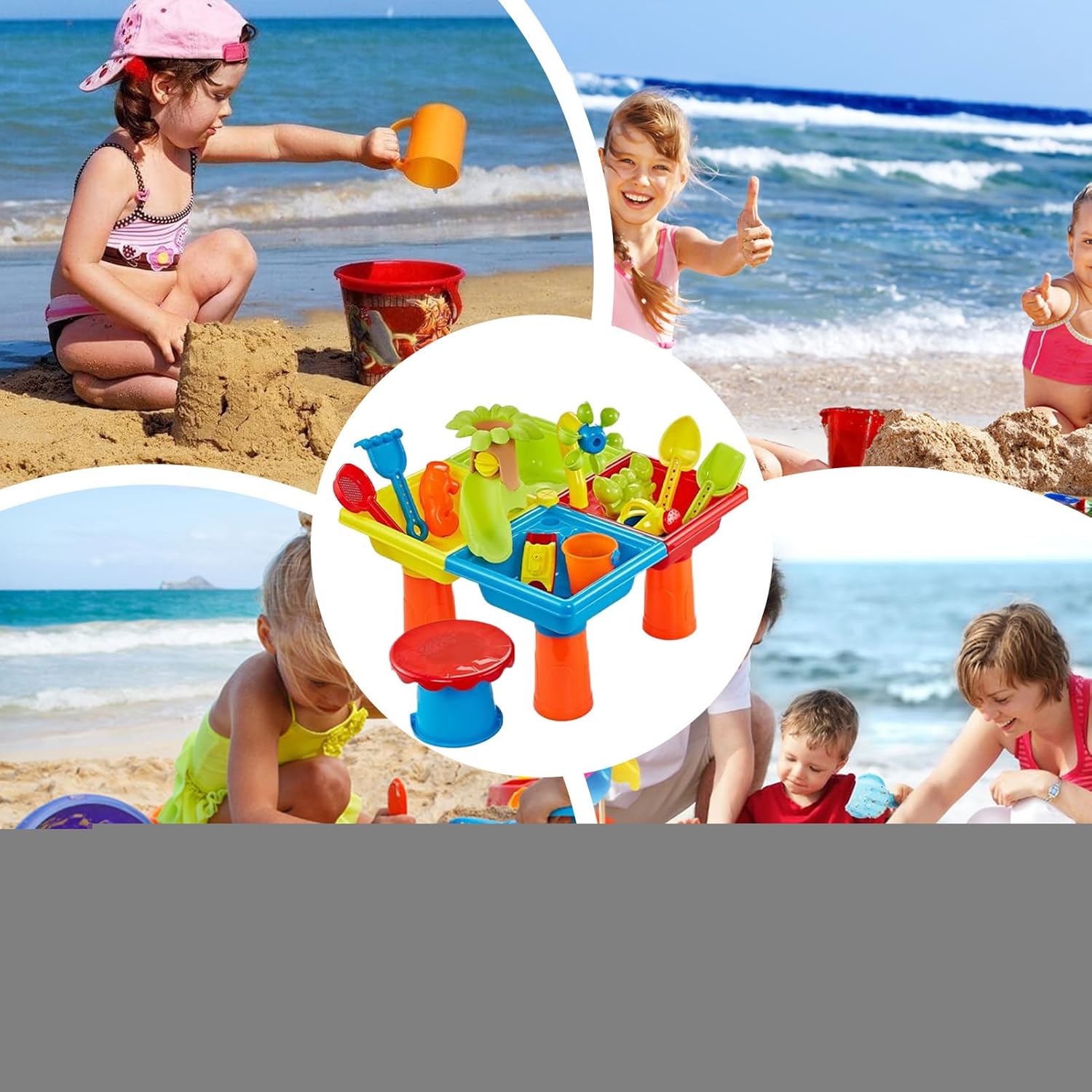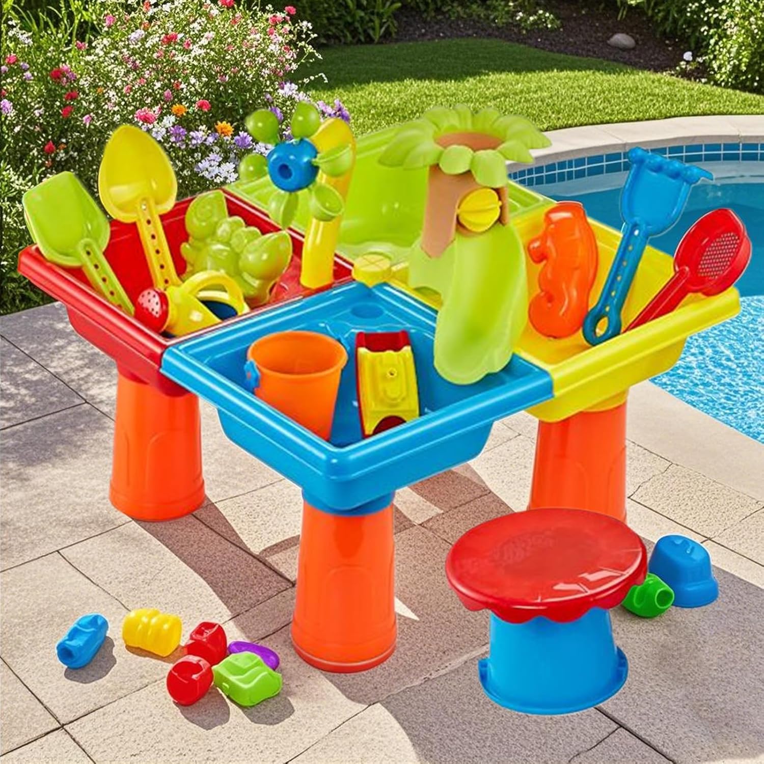 Design intelligente: concetto a 4 scomparti con vassoi indipendenti a tenuta stagna per impedire la miscelazione. Supporta lo sviluppo delle capacità di smistamento attraverso attività organizzate con sabbia, acqua o terra su questo tavolo di apprendimento multifunzionale. Multifunzione sabbia-acqua: kit da 24 pezzi che sviluppa la creatività attraverso il modellismo e l'esplorazione acquatica. Accessori inclusi: stampi per forme, ruote idrauliche e barchette per l'apprendimento sensoriale all'aperto. Design sicuro e salvaspazio: tavolo con bordi arrotondati e progettato per la sicurezza dei bambini, ideale per giocare all'interno o all'esterno. Ottimizza l'utilizzo anche in spazi ristretti. Forza e mobilità: polipropilene durevole e resistente agli urti con facilità di montaggio, questo tavolo per sabbia e acqua garantisce una qualità costante. La sua comoda maneggevolezza e facilità di trasporto soddisfano le esigenze delle famiglie. Esplorazione pratica: componenti come ruote girevoli e scivoli stimolano l'apprendimento interattivo, incoraggiando l'osservazione e migliorando la coordinazione occhio-mano durante le divertenti attività su sabbia e acqua.