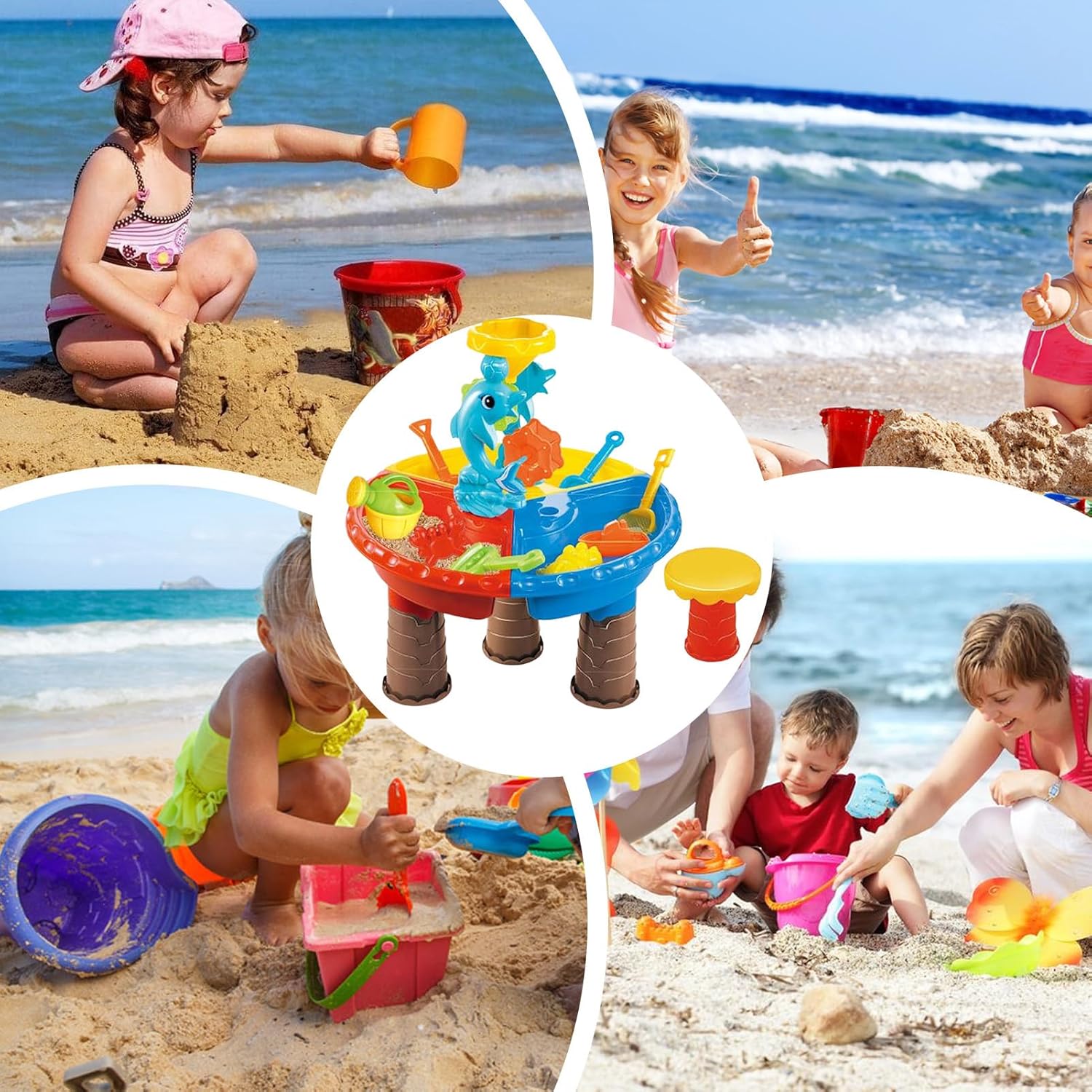 Stabilità Sicura: Tavolo gioco sabbia e acqua con base antiscivolo e struttura anti-ribaltamento, bordi arrotondati per totale sicurezza dei bambini. Progettato per garantire stabilità durante il gioco attivo, permette esperienze creative senza rischio di cadute Zone di gioco separate: Aree dedicate permettono esperienze distinte tra modellazione della sabbia ed esperimenti con l'acqua, incentivando l'esplorazione tattile attraverso texture differenziate per lo sviluppo sensoriale Interattivi: Set completo con utensili multifunzione per giochi di ruolo creativi, ideale per attività sensoriali ed esperienze tattili. Progetta scenari didattici che incoraggiano la collaborazione genitore-bambino attraverso sessioni di gioco istruttivo in ambiente controllato e divertente Utilizzo versatile interno/esterno: Include componenti removibili per manutenzione senza sforzo, offrendo funzionalità duale, drenaggio efficiente e stoccaggio accessibile. Strumento ideale per apprendimento attivo e giochi immaginativi grazie alla progettazione intuitiva che facilita transizioni tra spazi. Sviluppo Logico-Cognitivo: Stimola il pensiero logico e lo sviluppo cognitivo tramite giochi pratici con sabbia e acqua, potenziando il riconoscimento di colori e forme attraverso attività manipolative ed esperienze sensoriali interattive