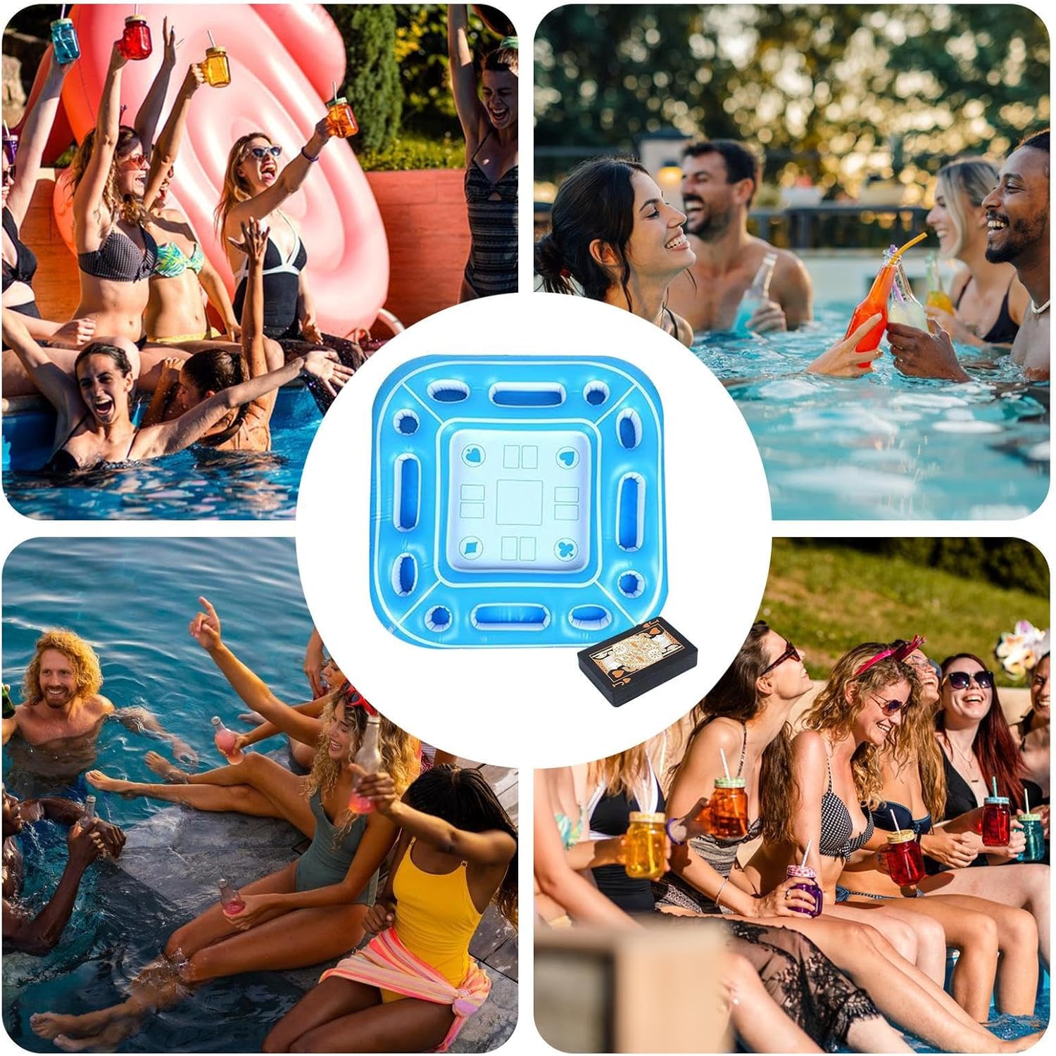 Multiuso: Fornisce un buon supporto per carte e giochi, emergendo come il fulcro delle attività acquatiche durante le feste in piscina, garantendo un divertimento familiare multifunzionale e coinvolgente. Dimensioni portatili: Fornisce una buona funzionalità grazie a un sistema di gonfiaggio e sgonfiaggio rapido e una capacità di stoccaggio compatta, che lo rende molto portatile per le attività in piscina all'aperto. Design antiscivolo e stabile: Progettato con galleggiabilità bilanciata e fondo antiscivolo, per mantenere il tavolo galleggiante saldamente in posizione anche durante i giochi in piscina, senza compromettere la sicurezza. Costruito per durare: Fornisce resistenza per gli ambienti esterni, grazie a una struttura robusta resistente all'esposizione all'acqua a lungo termine, incorporando resistenza agli agenti atmosferici e all'usura, nonché tessuto rinforzato resistente ai raggi UV, per una qualità di lunga durata Scena applicabile: migliora il relax in riva al mare con un tavolo galleggiante progettato per piscine domestiche e ville, mantiene bevande e oggetti al sicuro garantendo al tempo stesso la comune compatibilità con l'acqua per un uso versatile