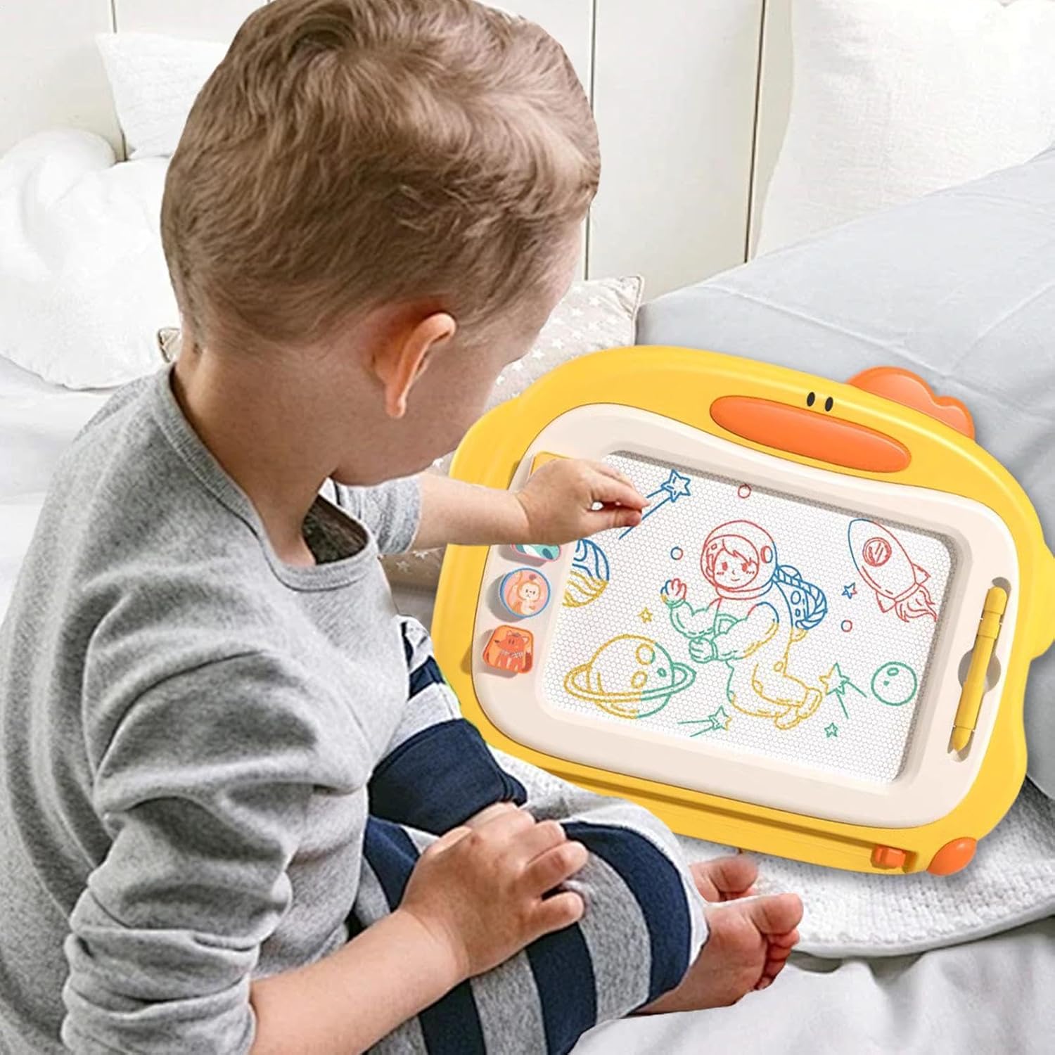 Educazione attraverso il divertimento: dai a tuo figlio una solida base in alfabetizzazione e matematica trasformando il tempo di gioco in un'avventura di apprendimento con il nostro tavolo da disegno magnetico Promuove le abilità: il nostro tavolo da disegno magnetico stimola la percezione visiva, il riconoscimento del colore e la coordinazione occhio-mano, aprendo infinite possibilità di gioco fantasioso ed espressione creativa. Design utile del supporto: il tavolo da disegno magnetico è dotato di un supporto per maggiore stabilità e facilità d'uso, adattandosi comodamente al tuo piccolo artista mentre lavora, e la sua configurazione flessibile assicura che si adatti mentre cresce. ABS sicuro: realizzato con materiale ABS di alta qualità e angoli arrotondati per prevenire incidenti, il nostro giocattolo da tavolo da disegno magnetico garantisce un tempo di gioco sicuro per i bambini Facile da usare: adoreranno il modo in cui il pulsante per cancellare dolcemente scorrevole su questo tavolo da disegno magnetico consente loro di cancellare senza sforzo le loro creazioni in pochi secondi, garantendo loro una tela fresca e pulita per i nuovi colori.